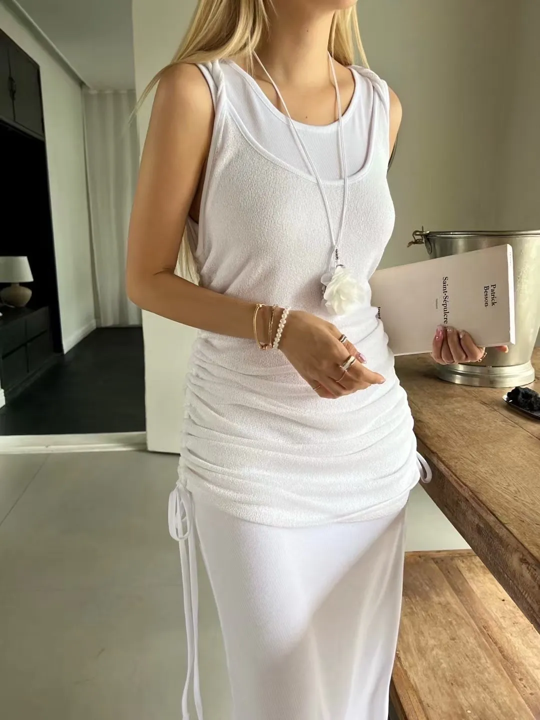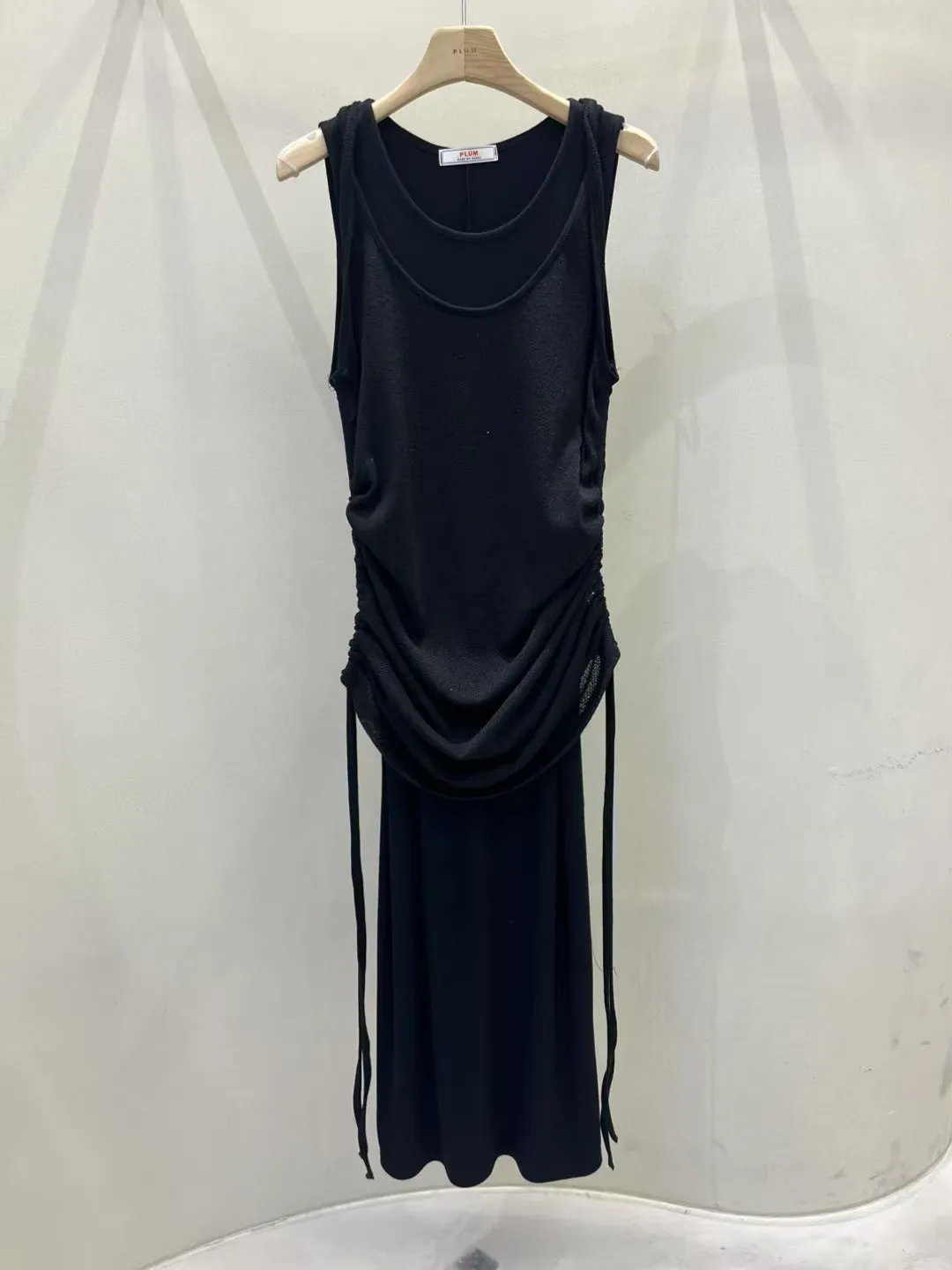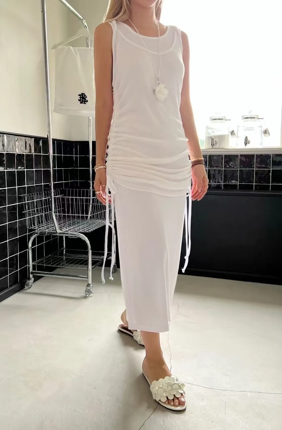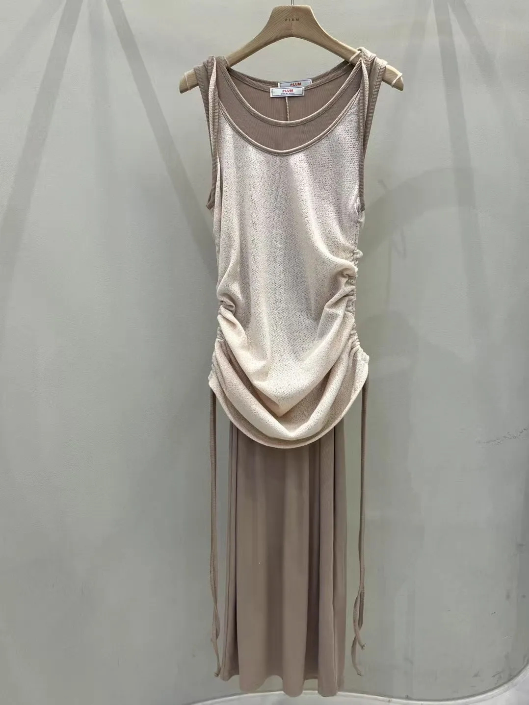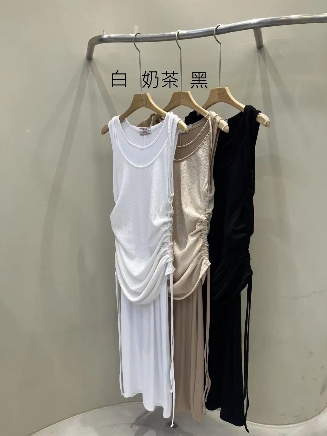 棉+聚酯+彈力 洋裝舒適彈性好 外罩衫側腰綁帶 扭結肩帶 裙後開叉
