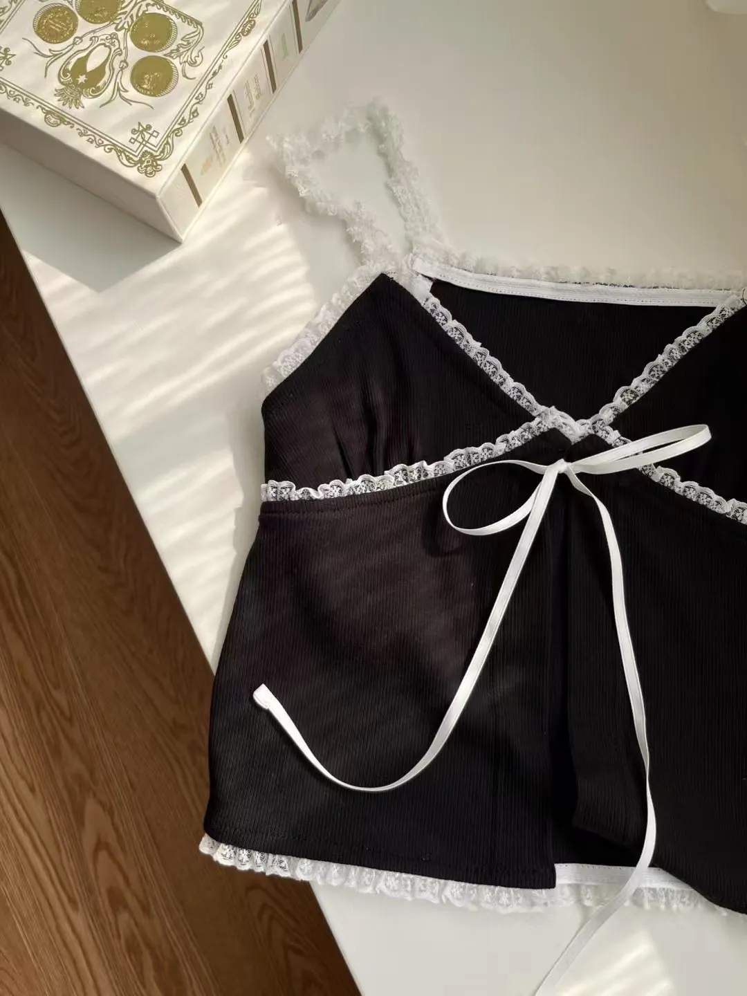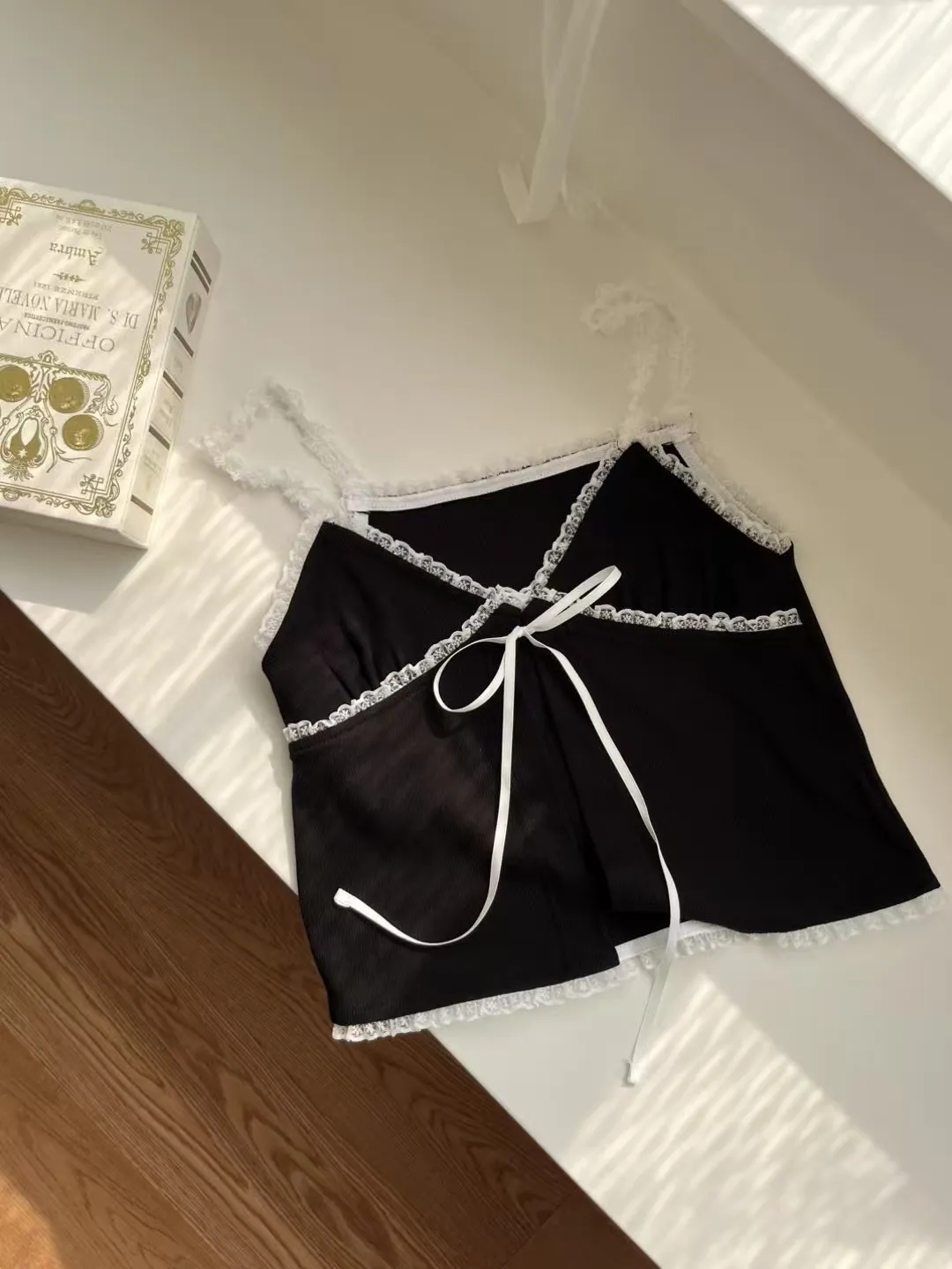 棉 性感綁帶 蕾絲肩帶 可單穿可當罩衫 穿到M號