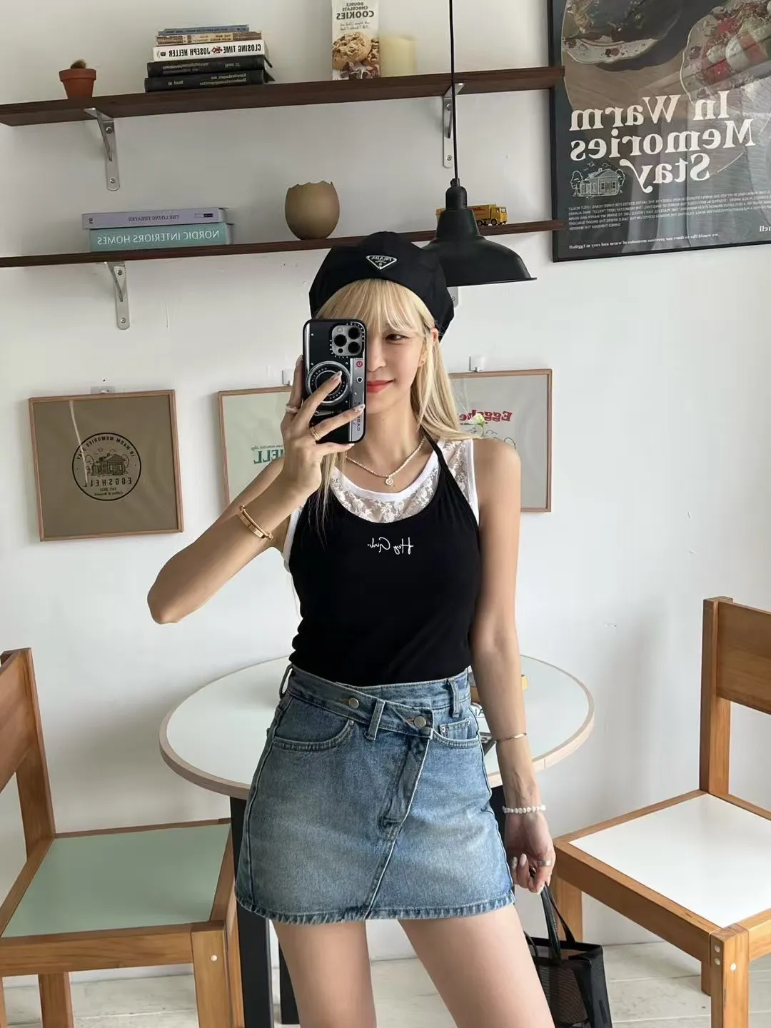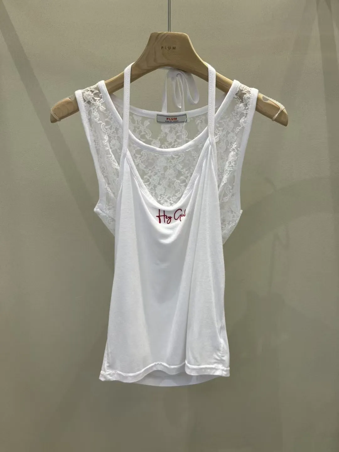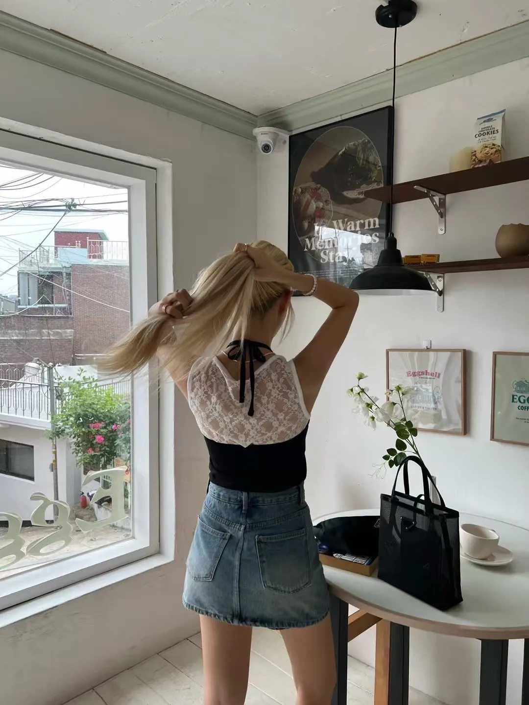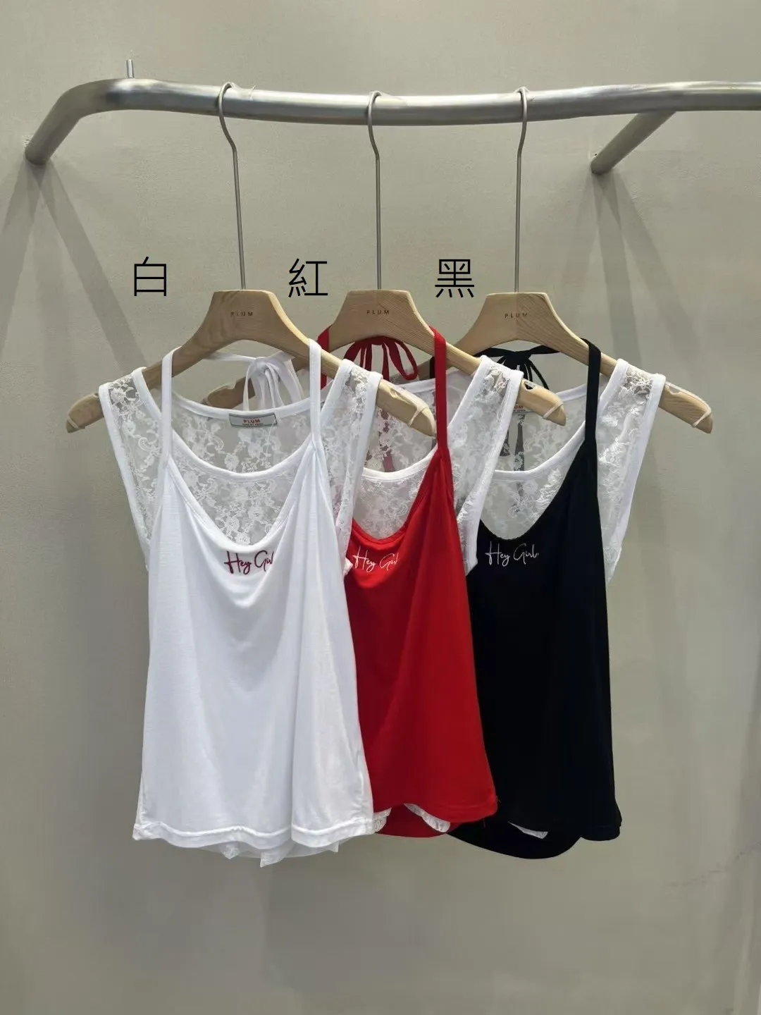 棉+蕾絲 柔軟親膚的蕾絲 細緻蕾絲背心 外層頸綁帶上衣