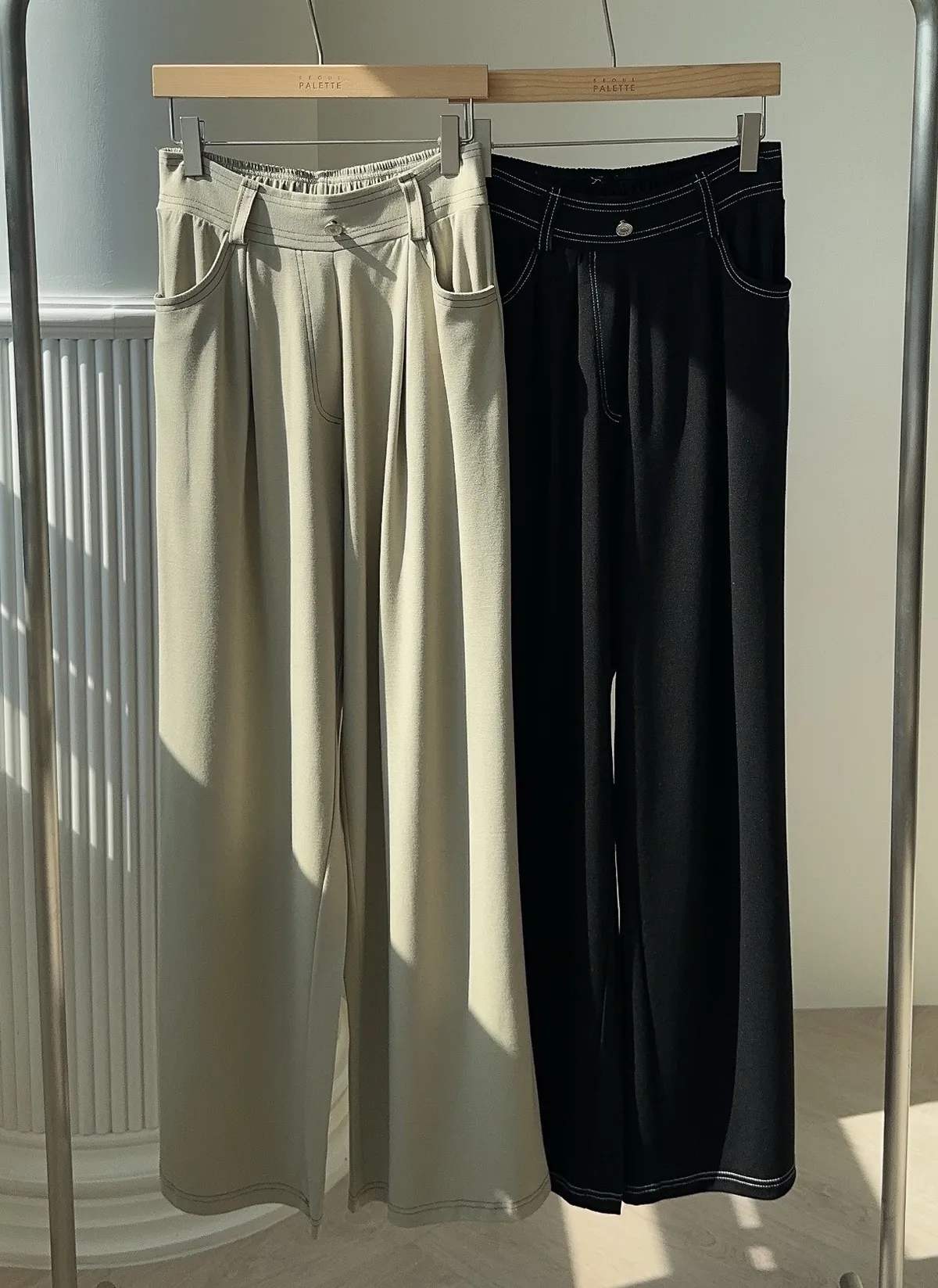 縲縈+尼龍+彈力 超大腰寬 順身寬褲管 有口袋