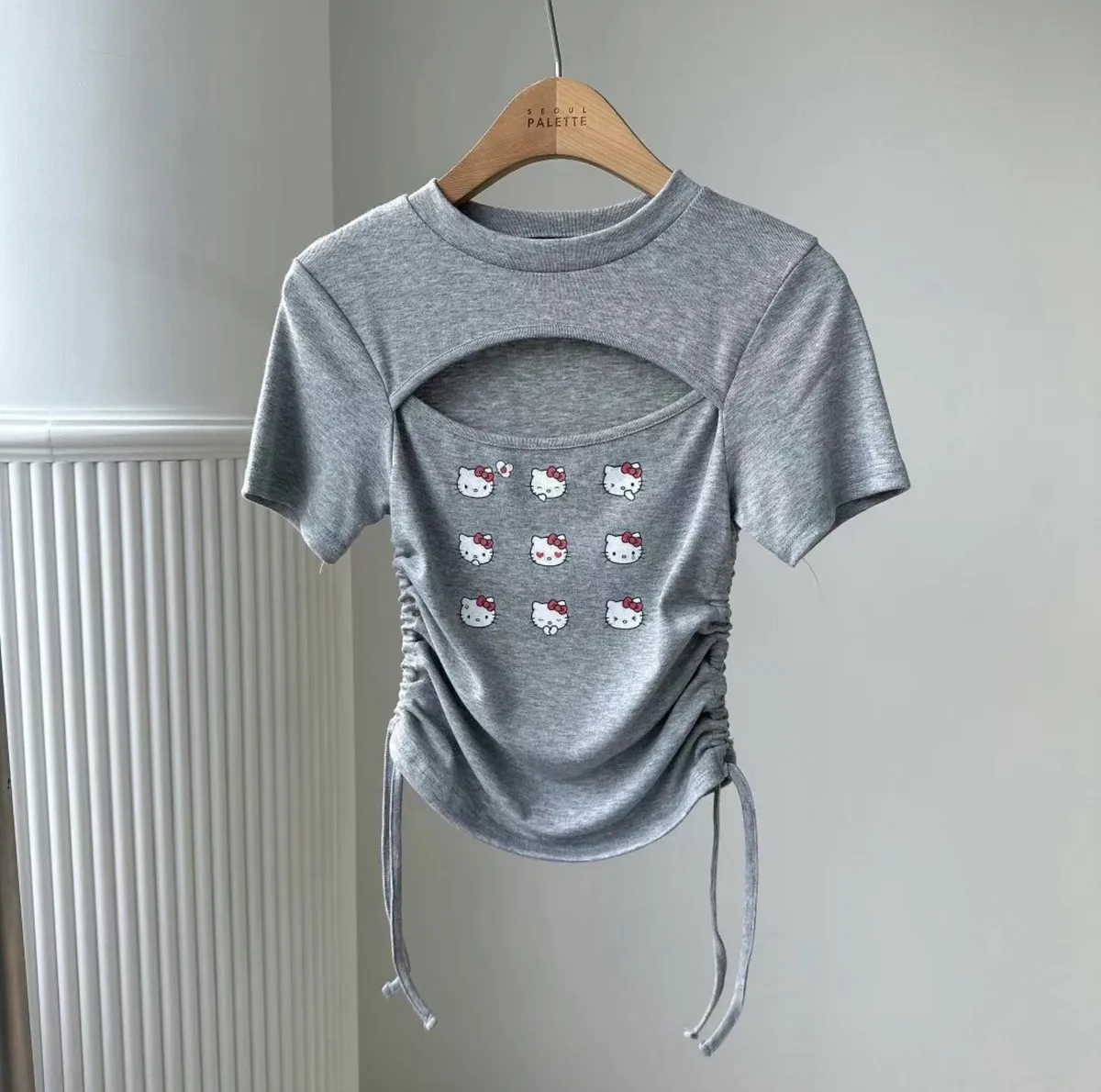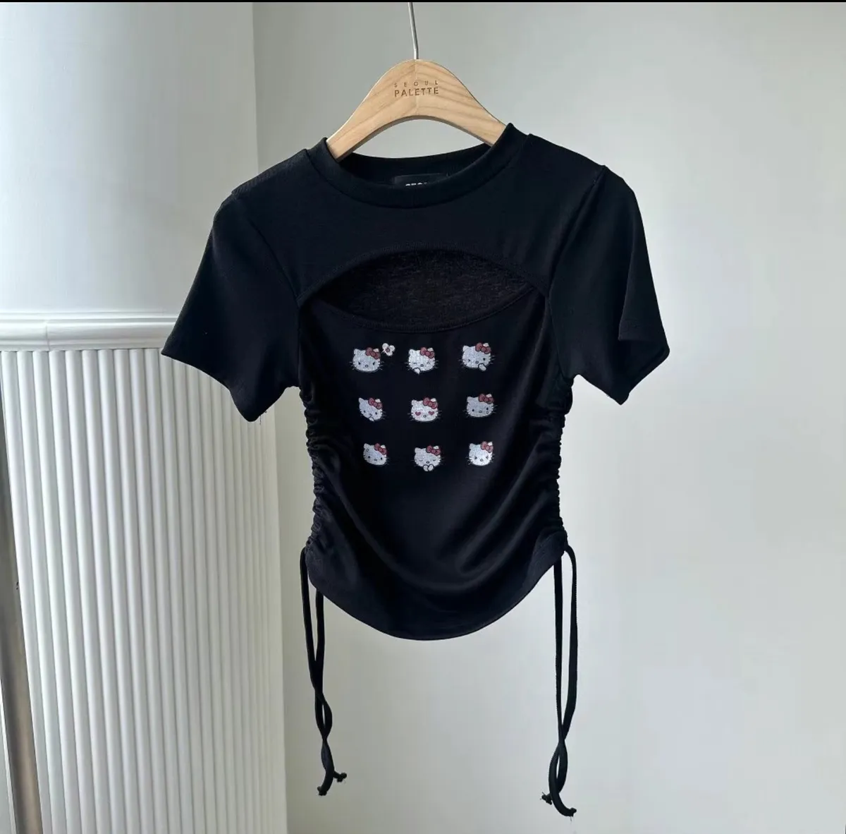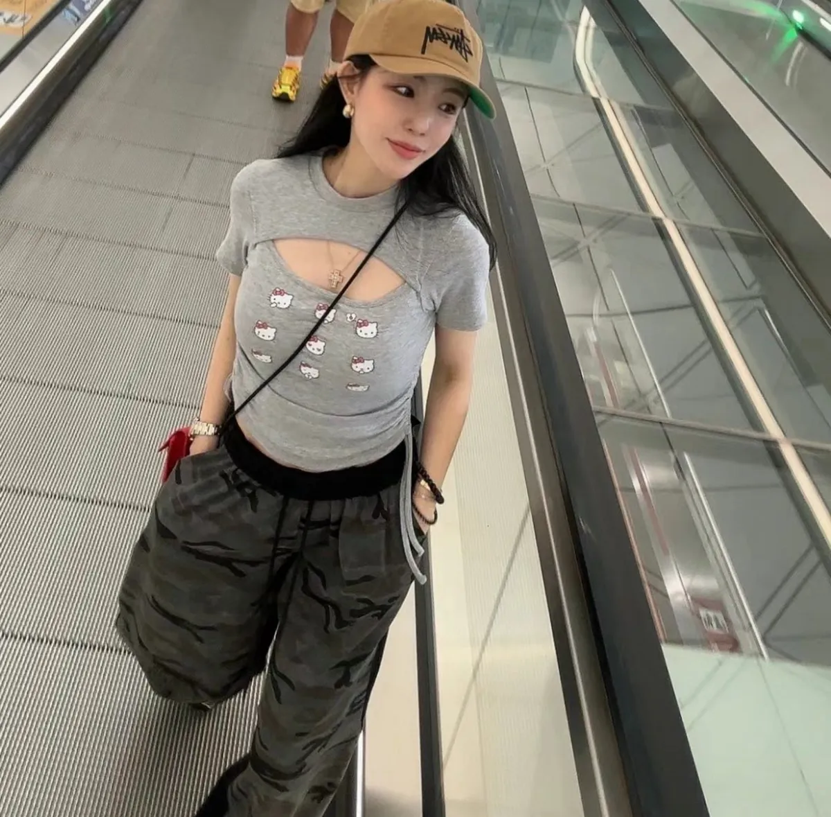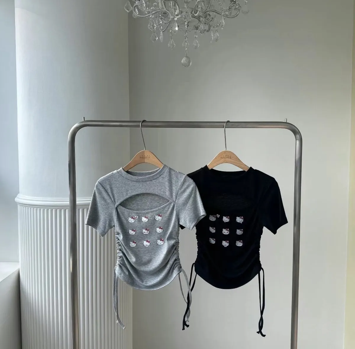 聚酯+縲縈+彈力 舒適親膚 胸前簍空 雙側細腰抽繩 復古斑駁圖案