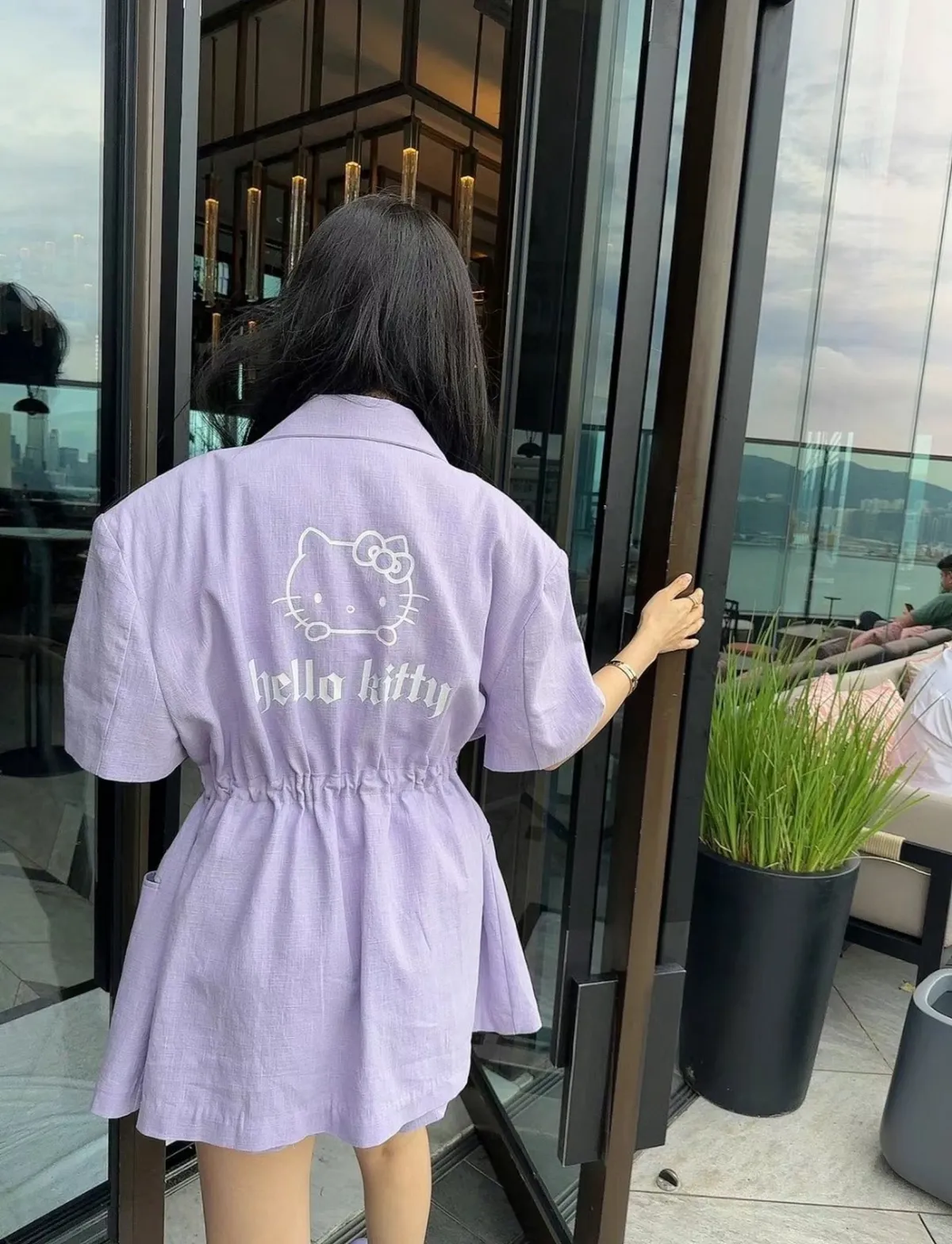 亞麻+棉,腰身造型 背後kitty 布包釦 有口袋 無內裡