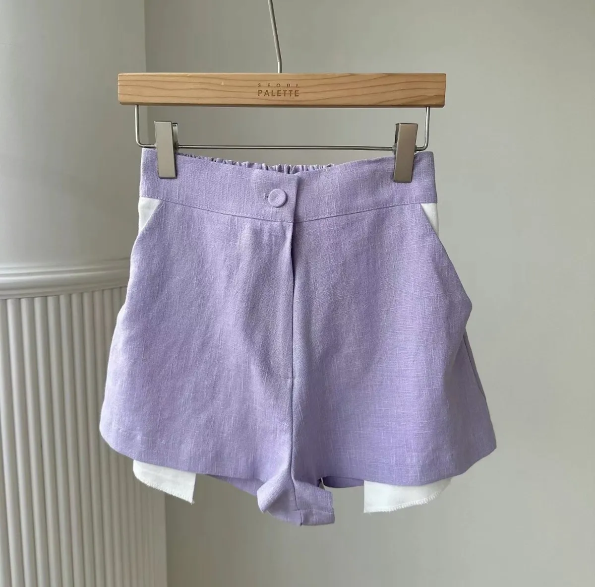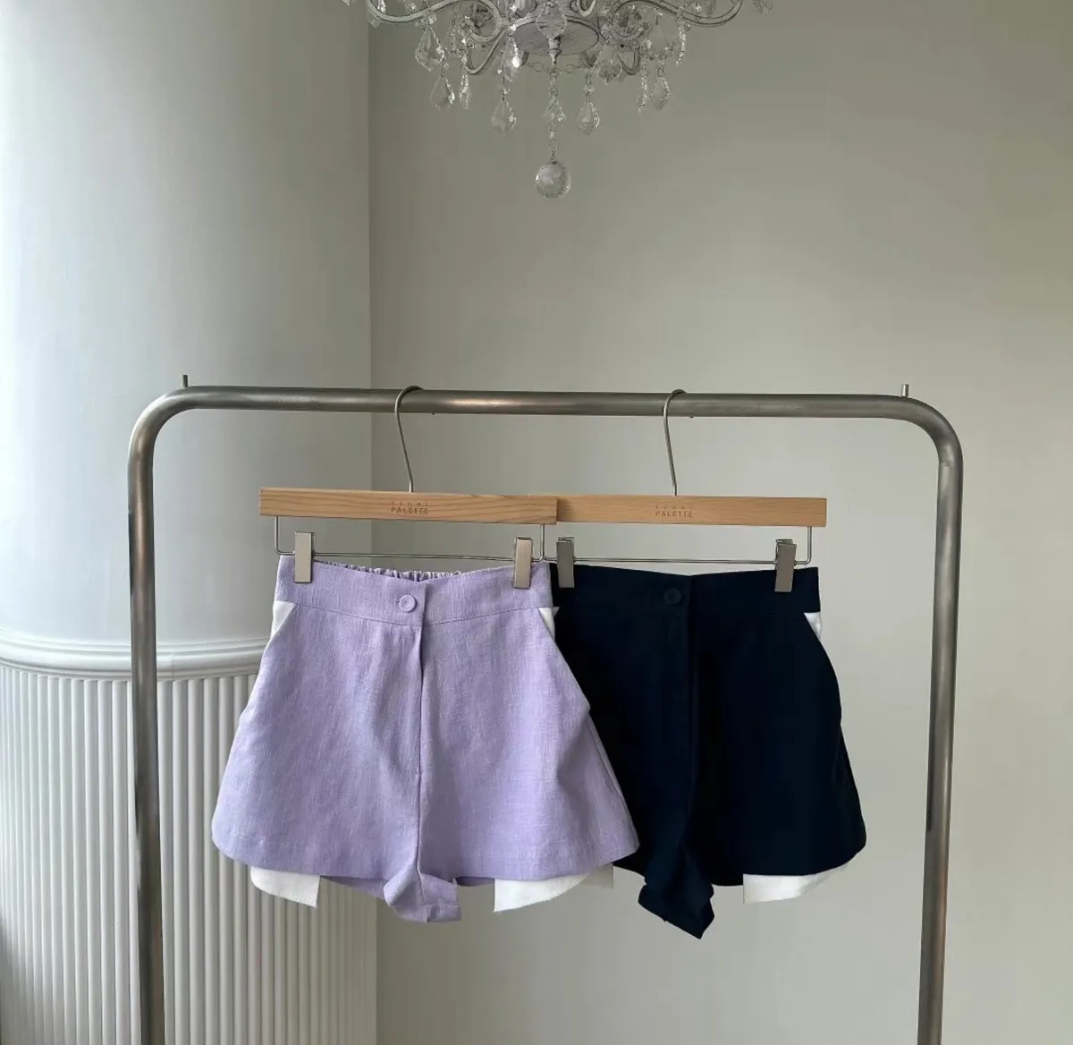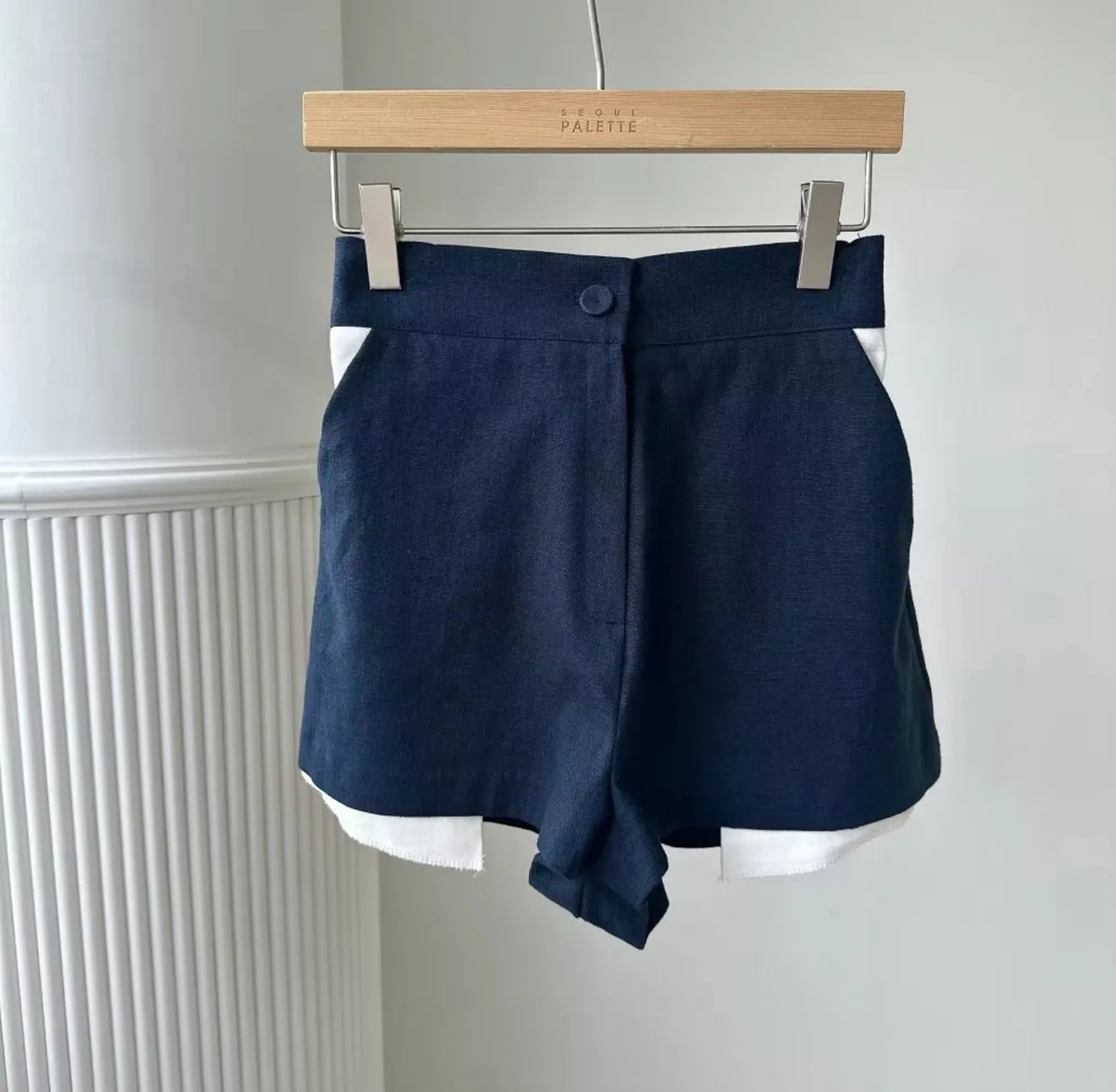 亞麻+棉 釦鍊穿脫 撞色白色拼接面料 內襯口袋時髦露出設計
