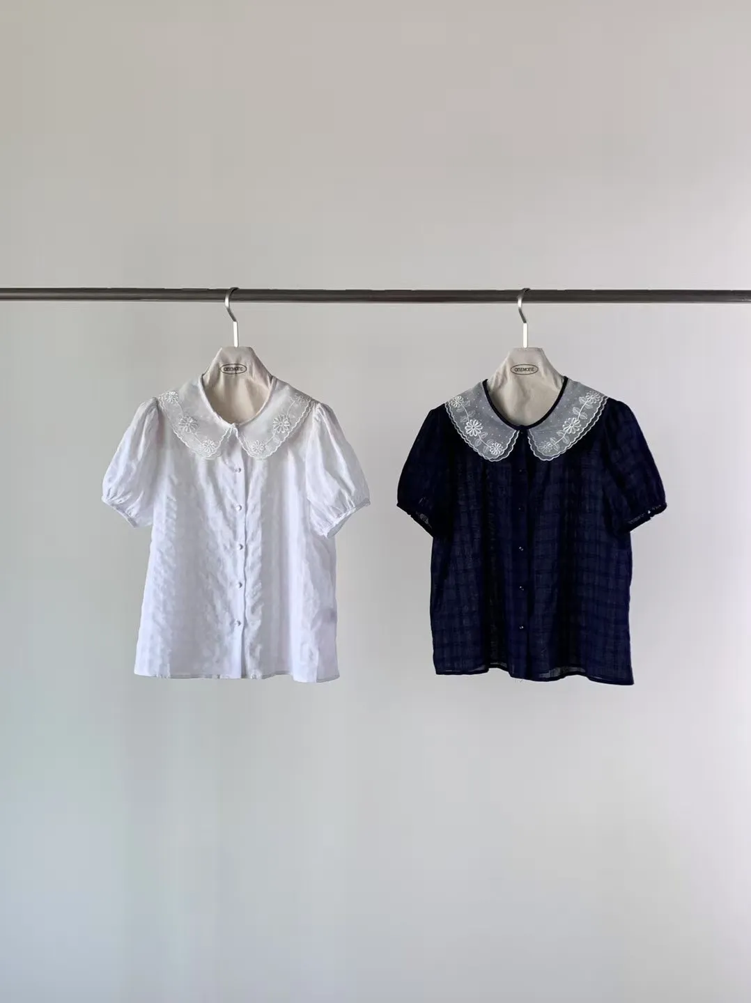 棉+歐根紗 薄款透氣 歐根紗刺繡美領 排釦穿脫 袖口有釦
