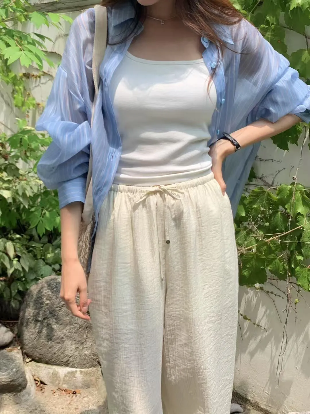 縲縈 微光澤 薄款視覺透光 柔軟舒適 涼感適合夏天 側腰細釦設計