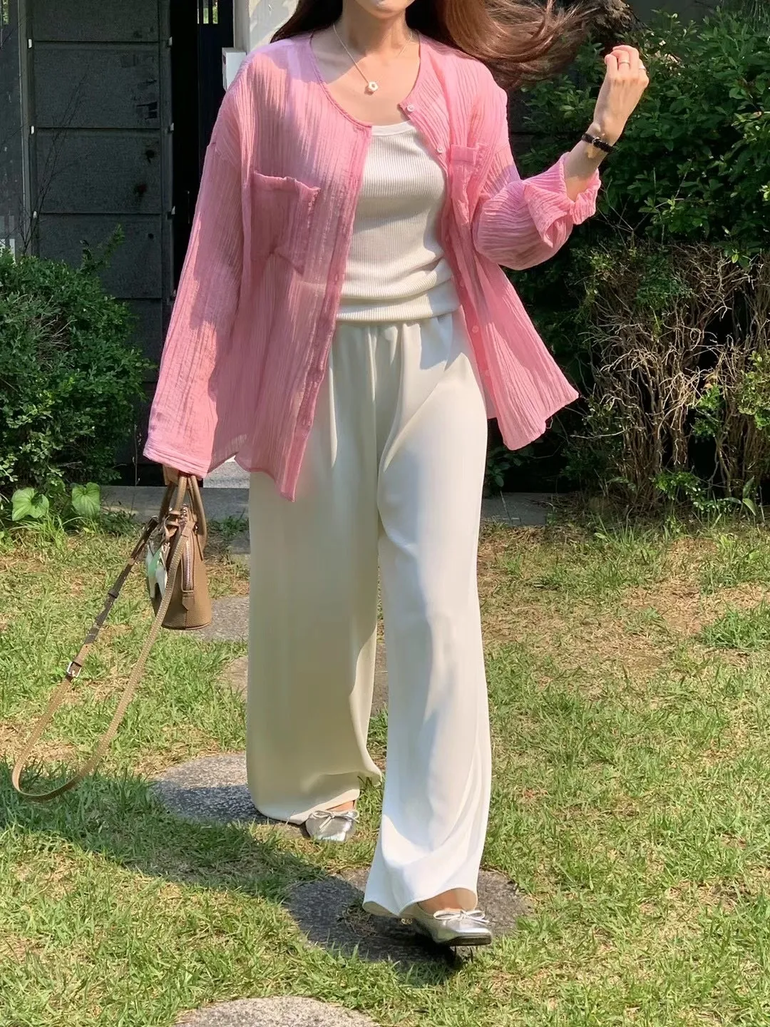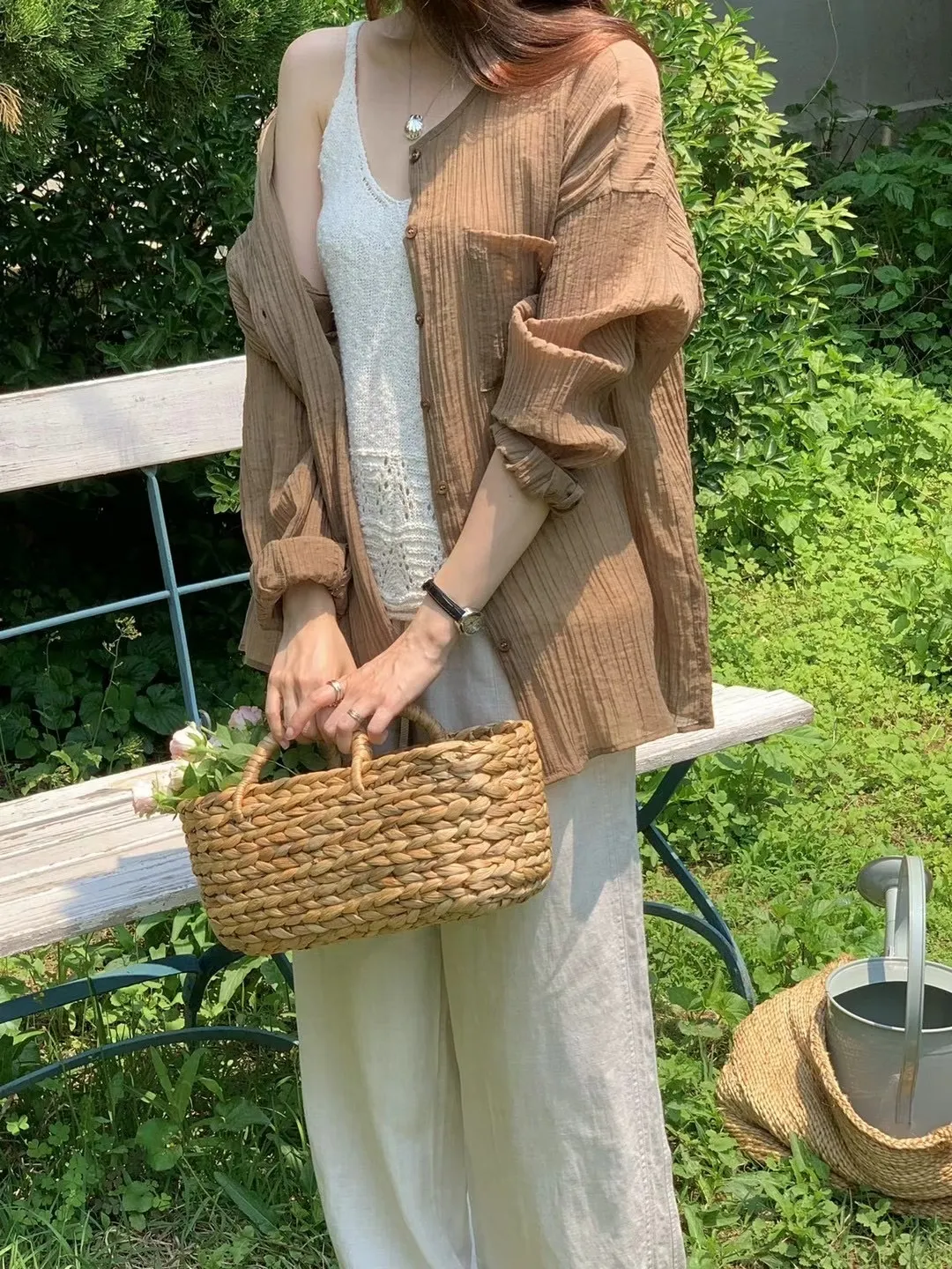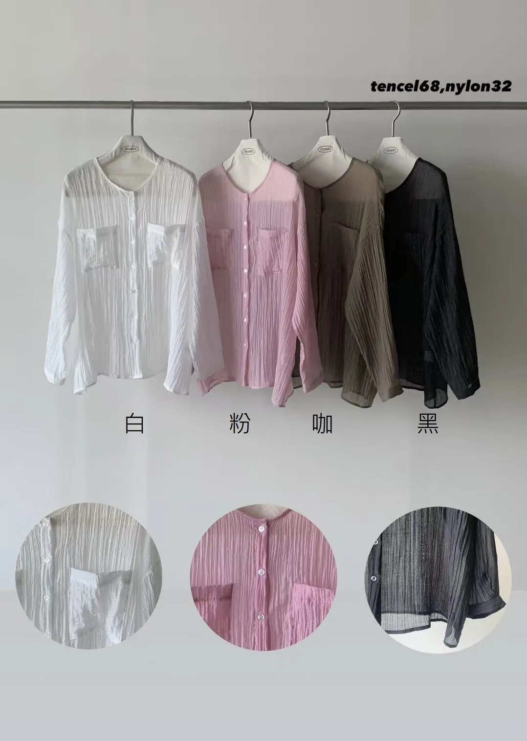 天絲68%+尼龍 薄款透氣 輕盈適合夏天 圓領舒適 雙口袋 不易皺