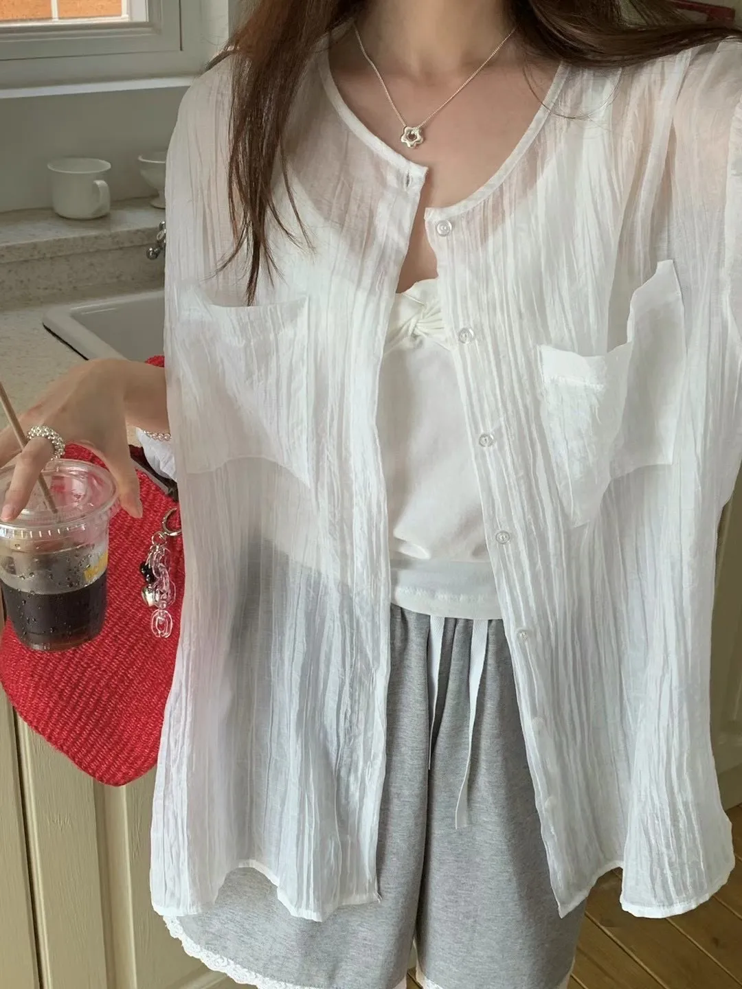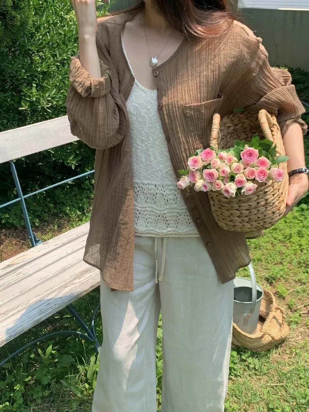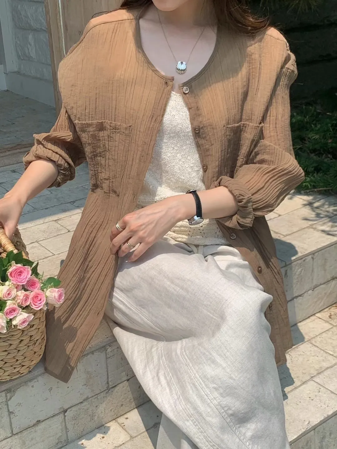 天絲68%+尼龍 薄款透氣 輕盈適合夏天 圓領舒適 雙口袋 不易皺