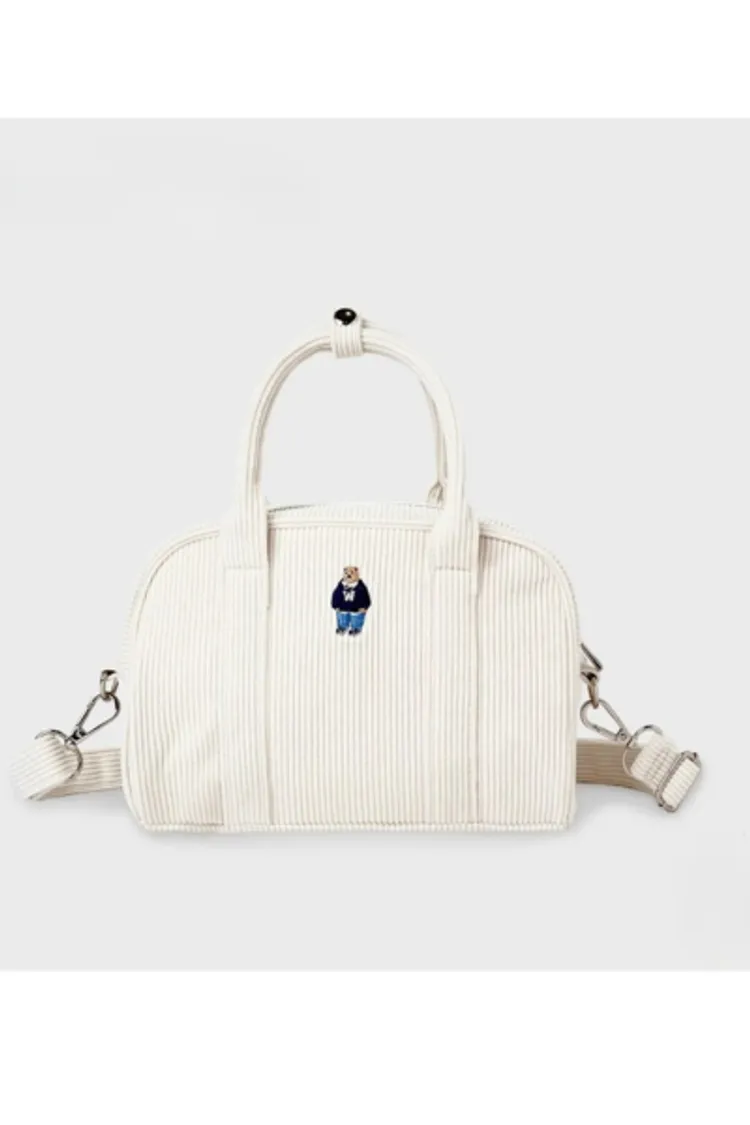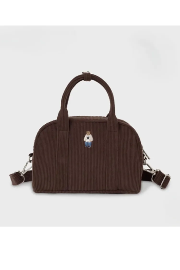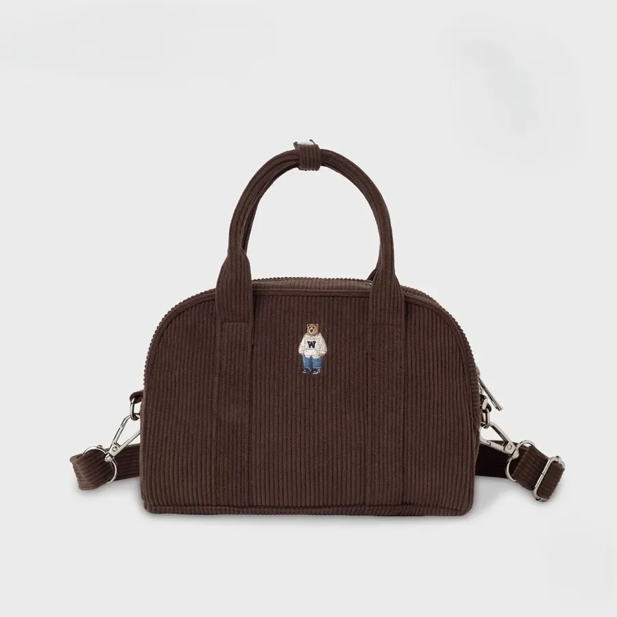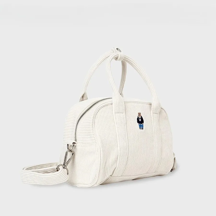 燈心絨 雙頭拉鍊閉合 可手提 可肩背 內層尼龍 空間足夠