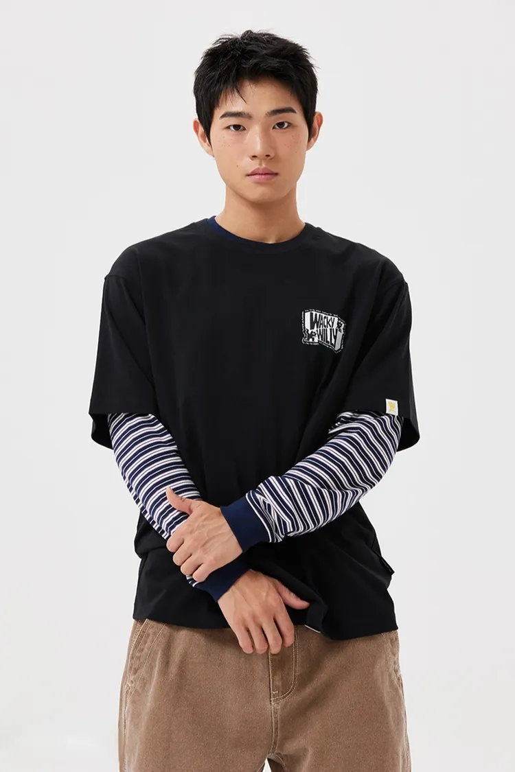 100%棉 推薦款 可愛搬磚logo火柴人 袖口小標