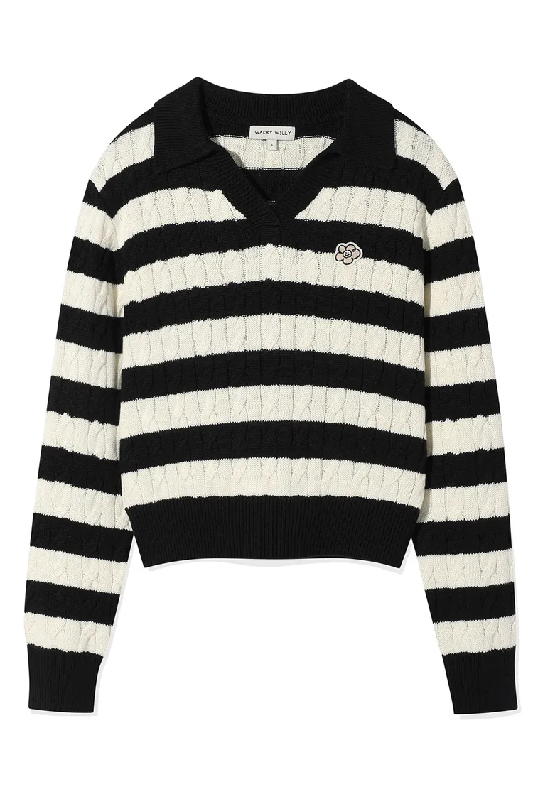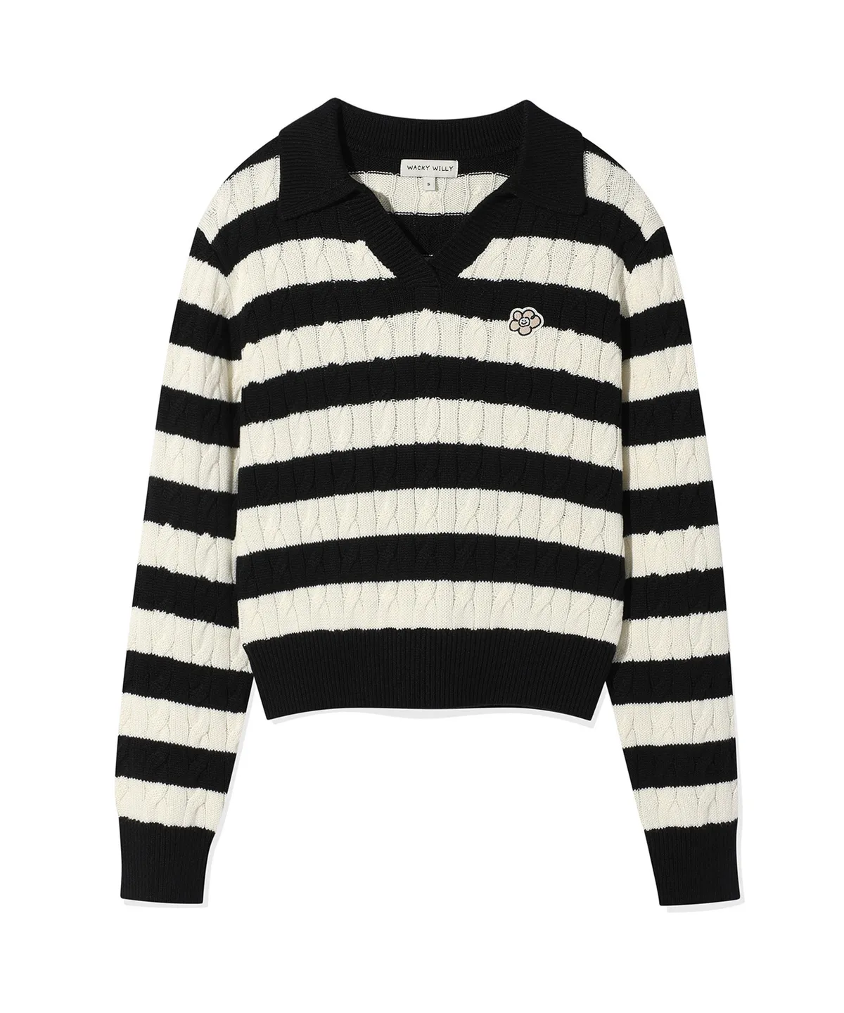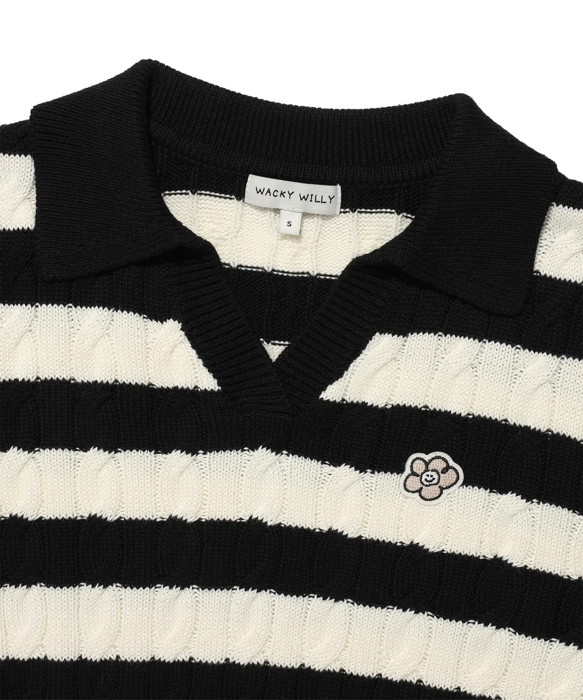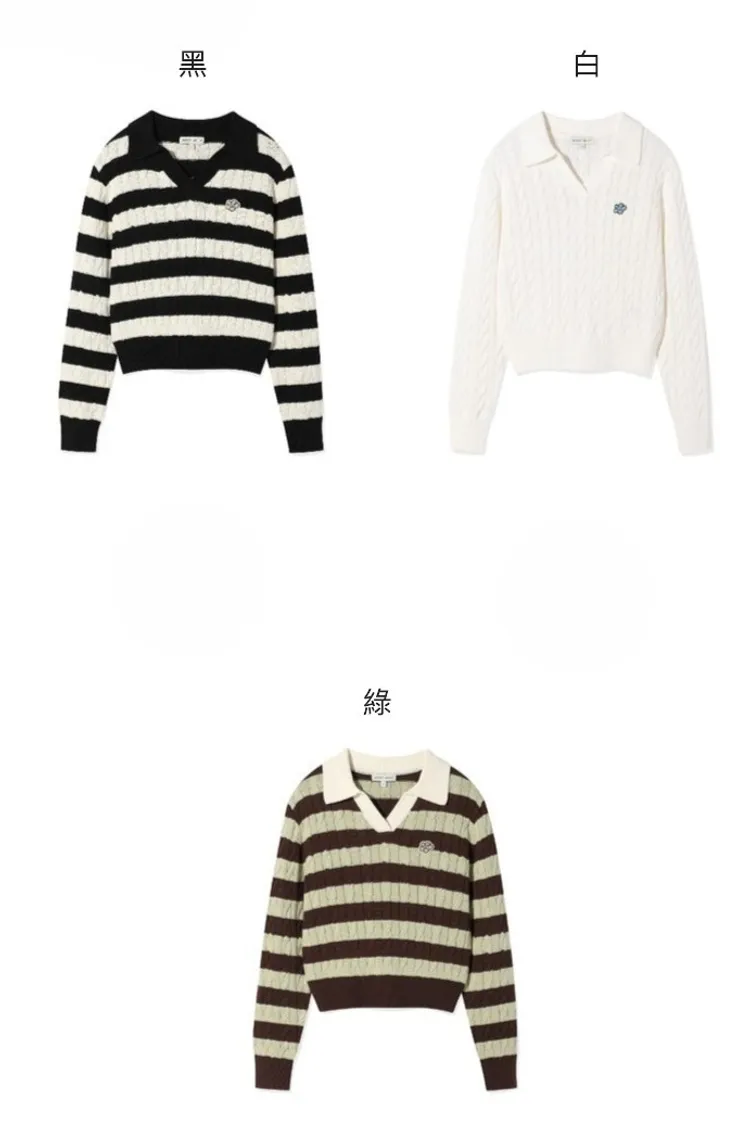 DN113明星款小花條紋短版開襟針織衫 白 黑 綠 S M 官網價$1680 線上價$1650