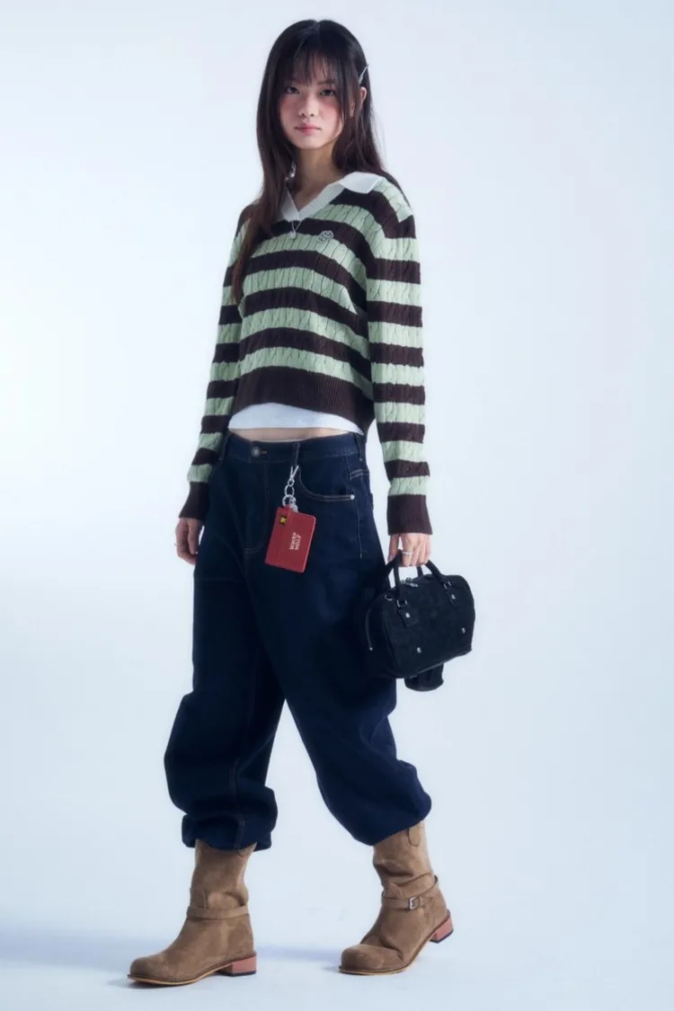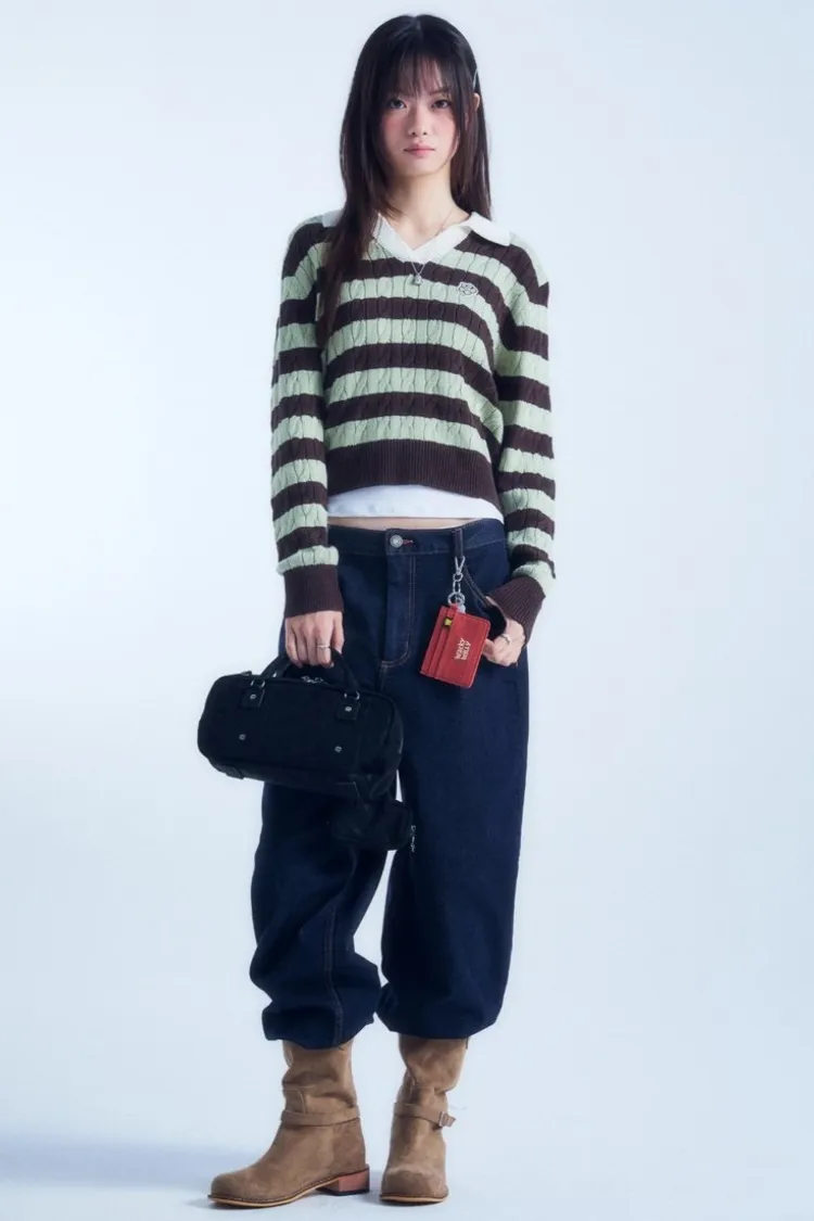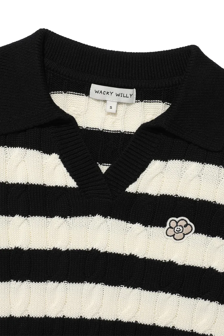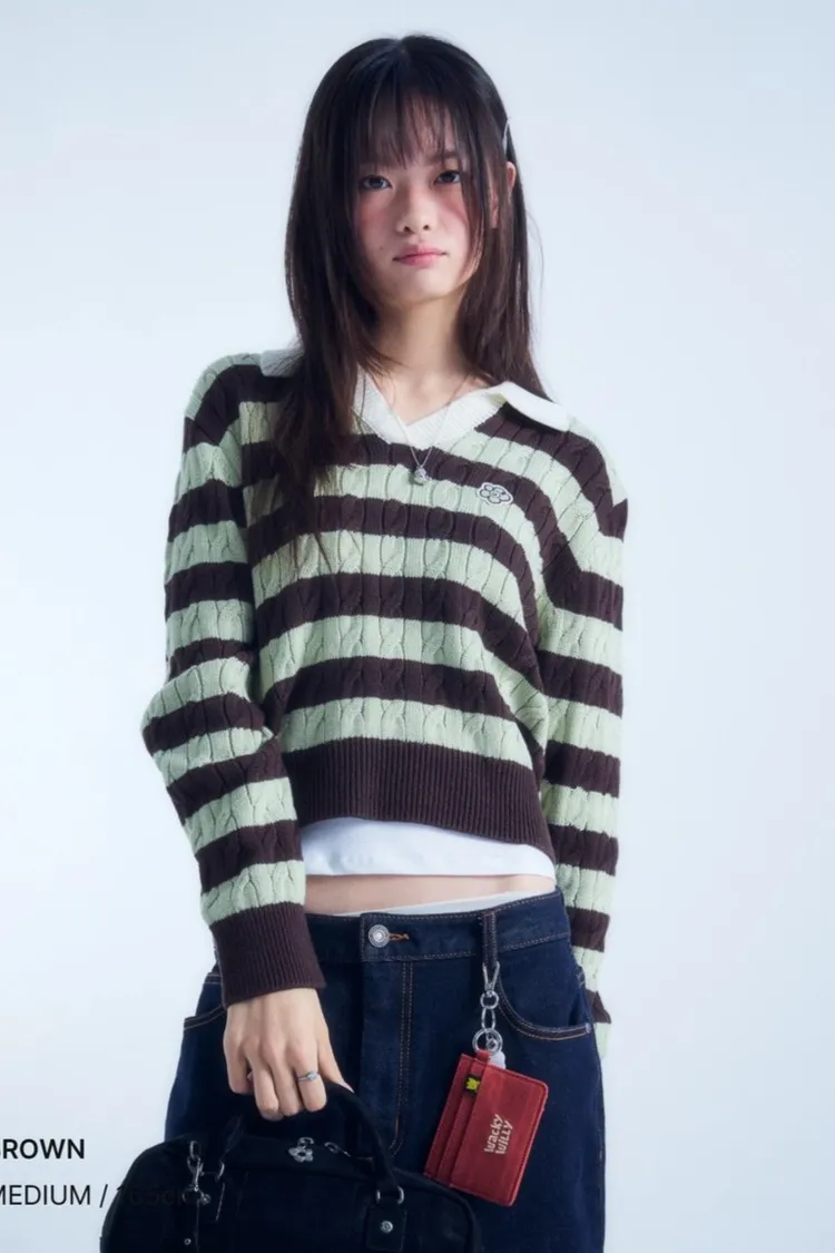 DN113明星款小花條紋短版開襟針織衫 白 黑 綠 S M 官網價$1680 線上價$1650