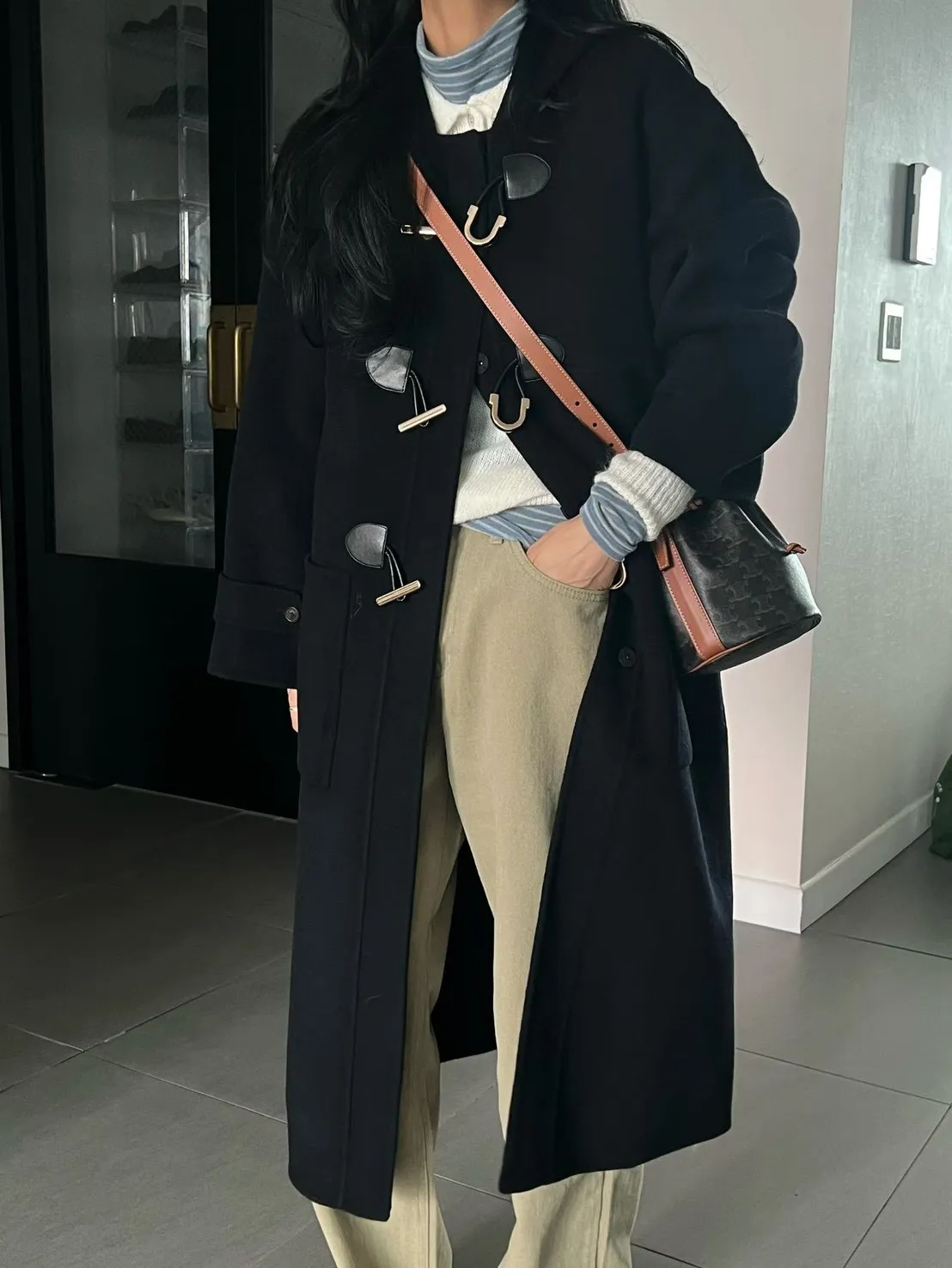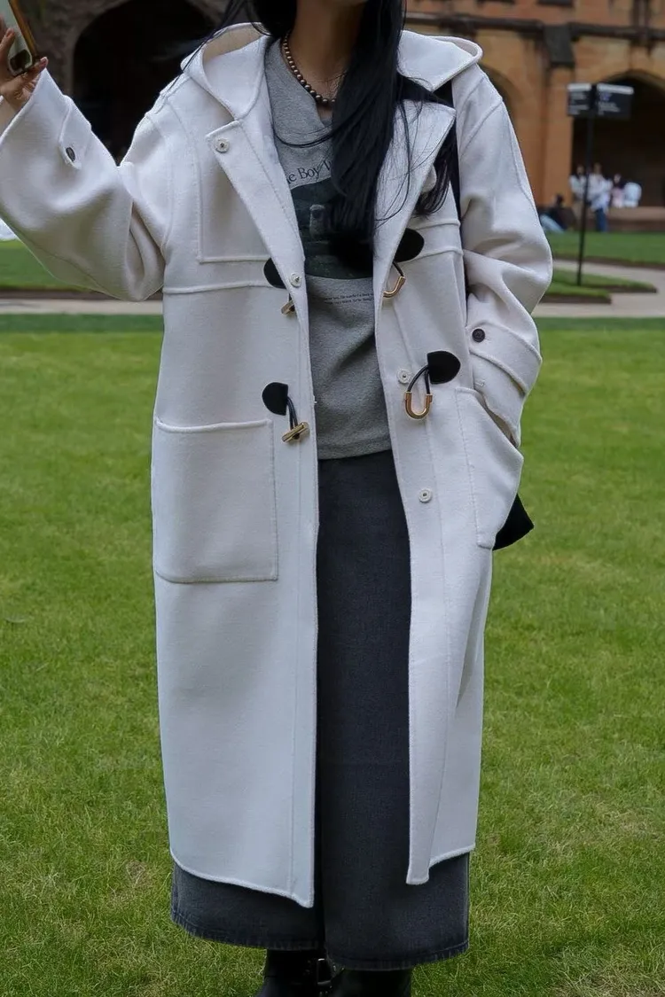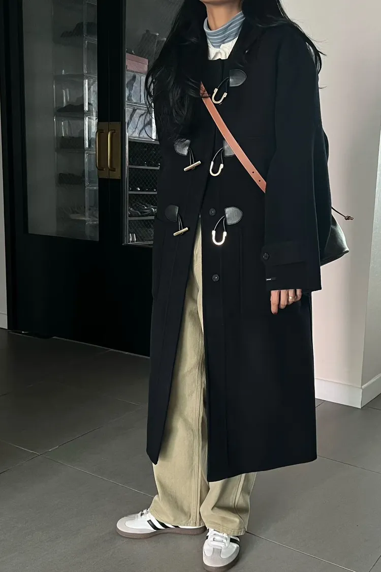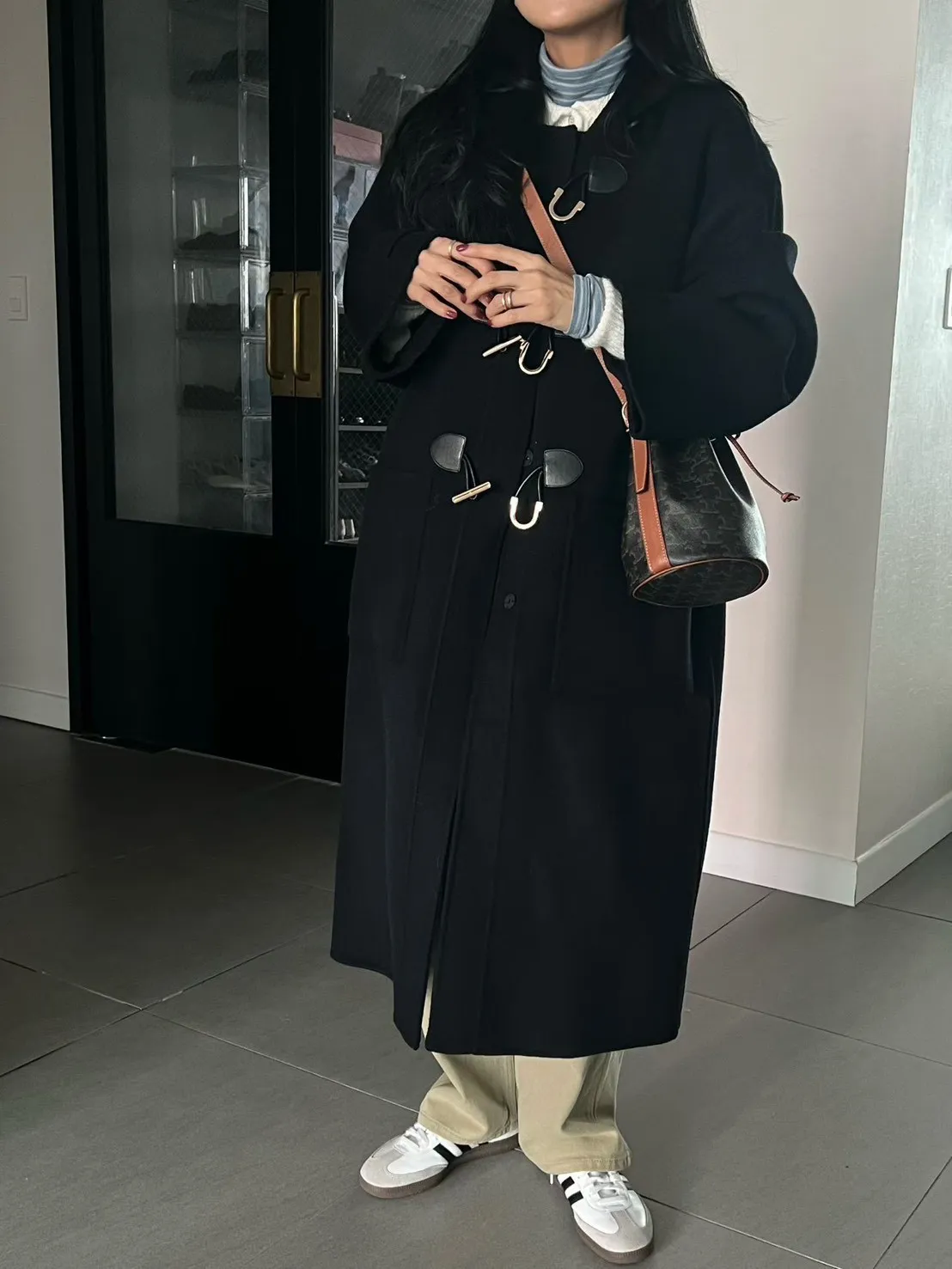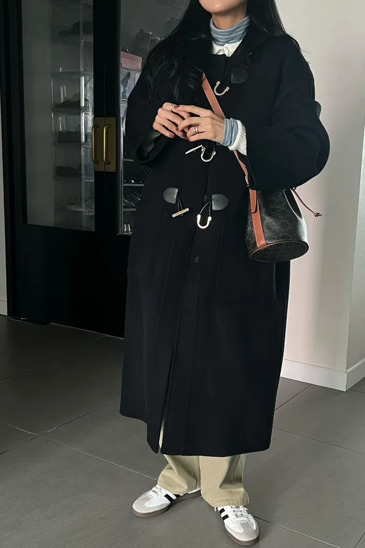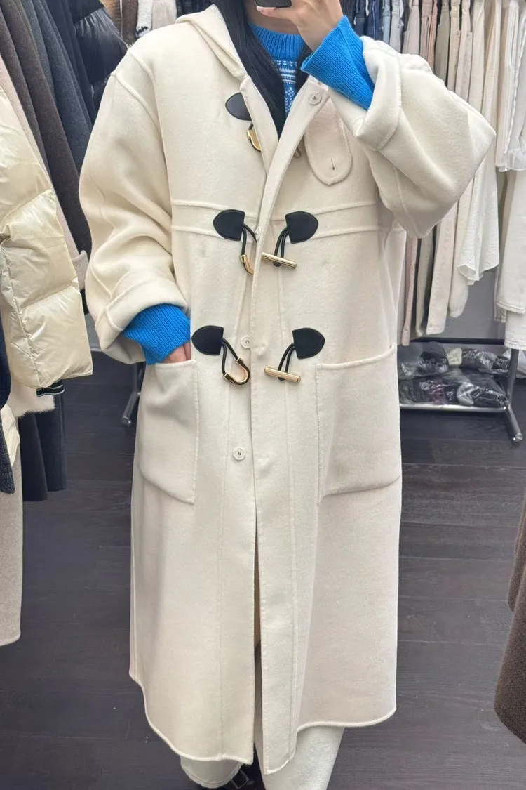 超級羊毛90%+蠶絲內裡 超高級質感 雙口袋 壓釦穿脫