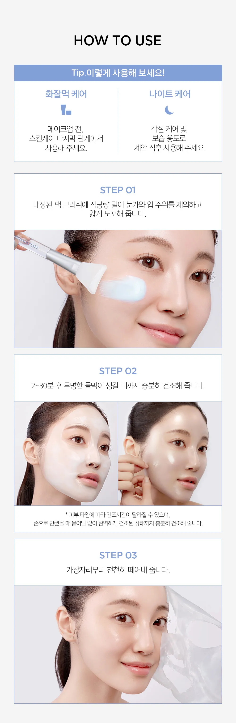 使用 : 塗在臉上,乾掉後直接撕掉,不用沖洗
