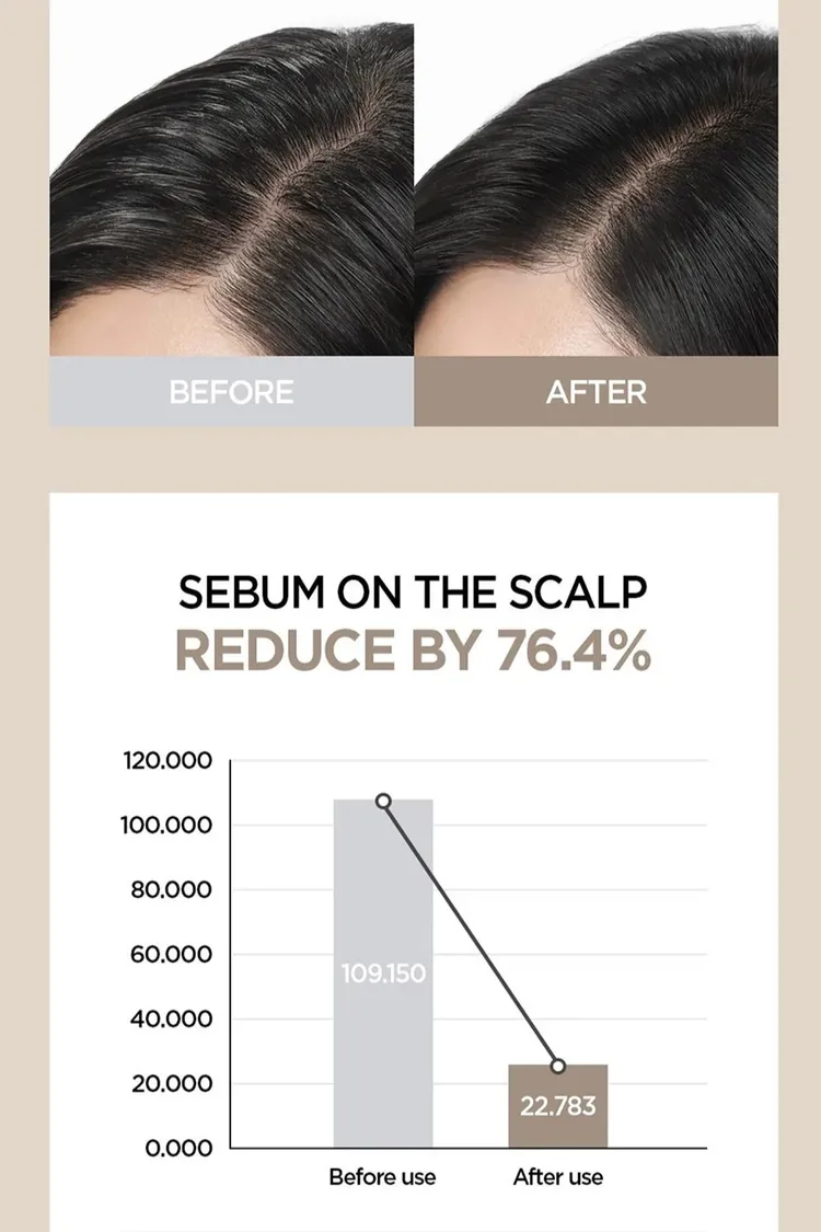 減少頭皮的皮脂76.4% 減少毛躁,固定髮根 不易掉落