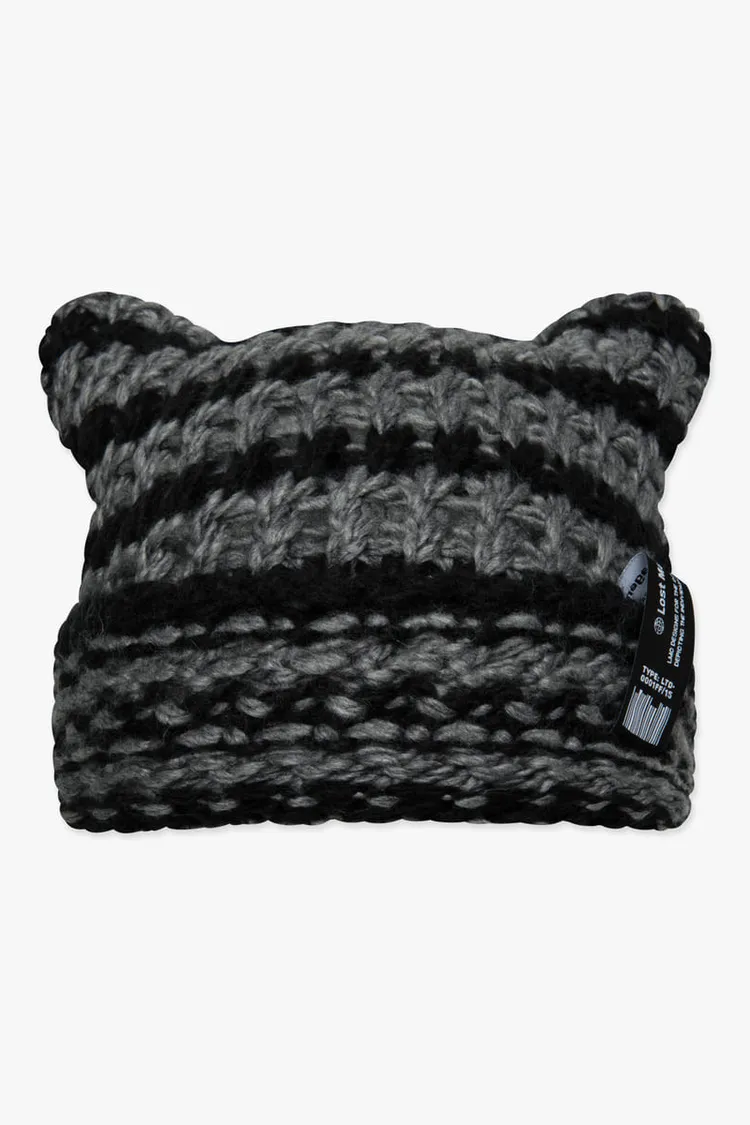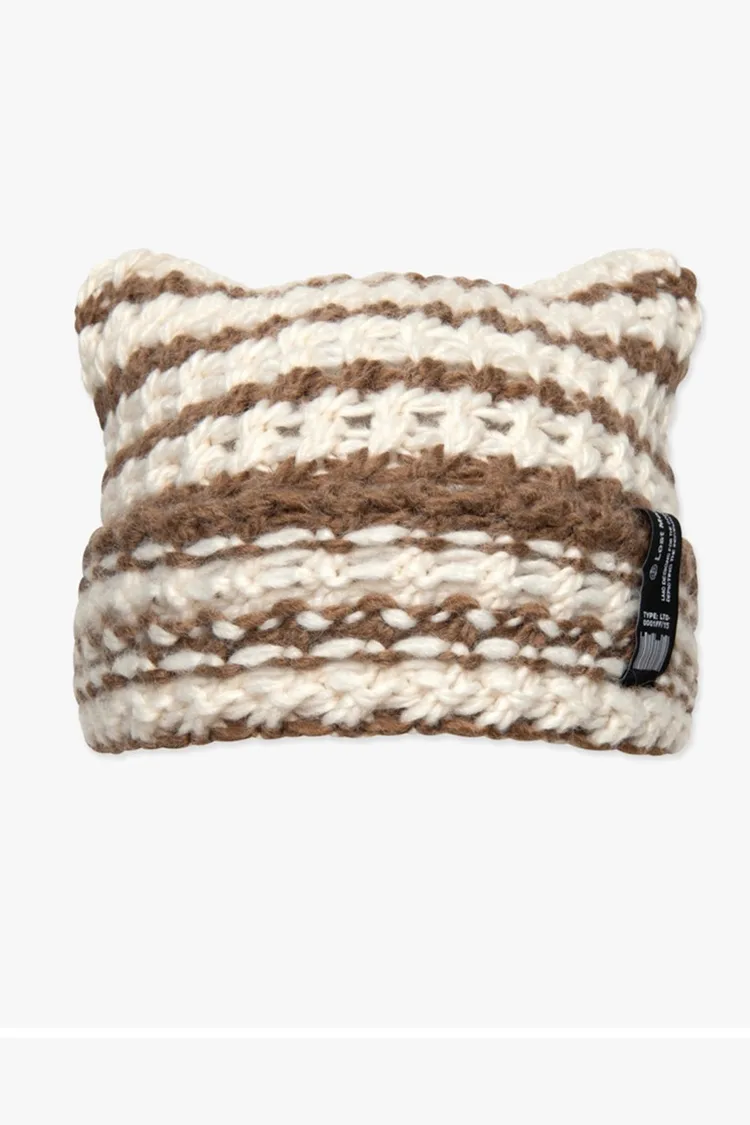 DN395時尚粗針織毛帽 條紋咖 條紋灰 全白 全黑 韓國原價$1350 永恆甜甜價$990