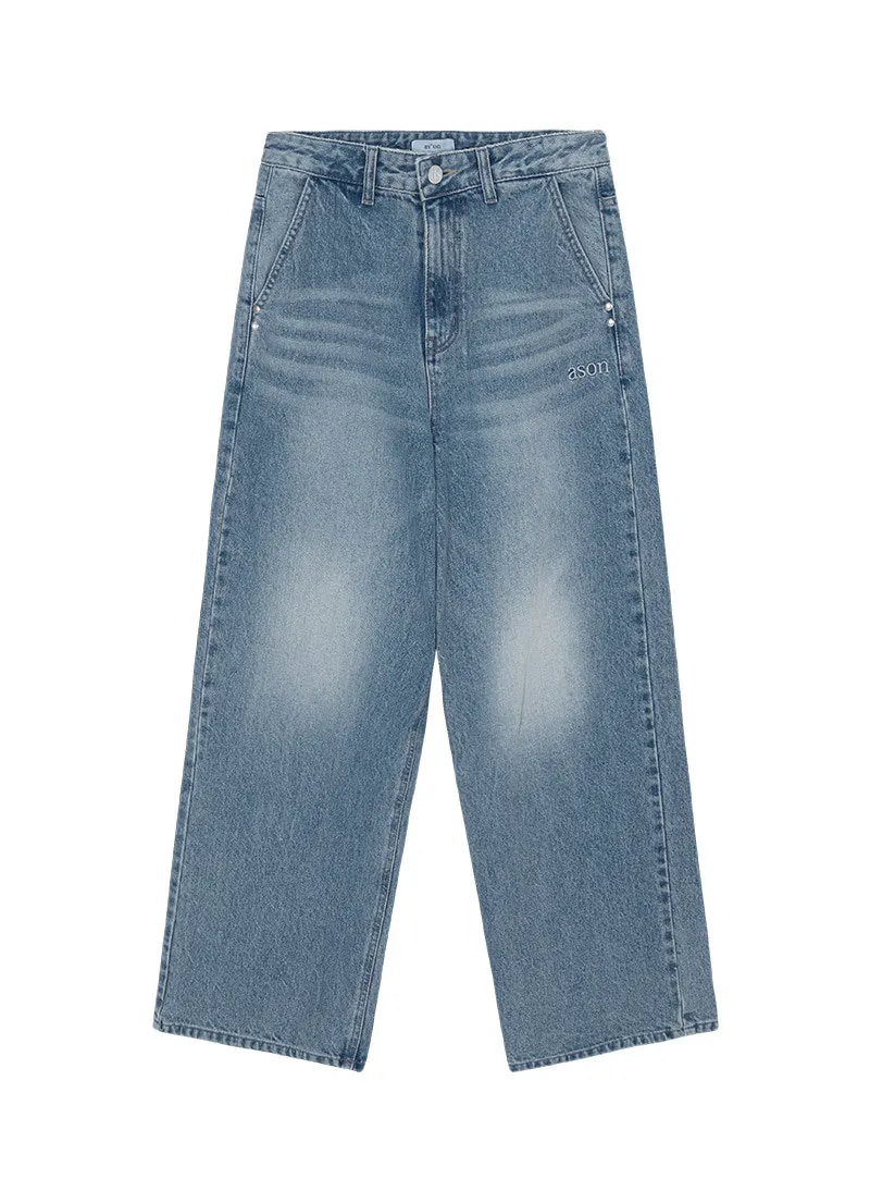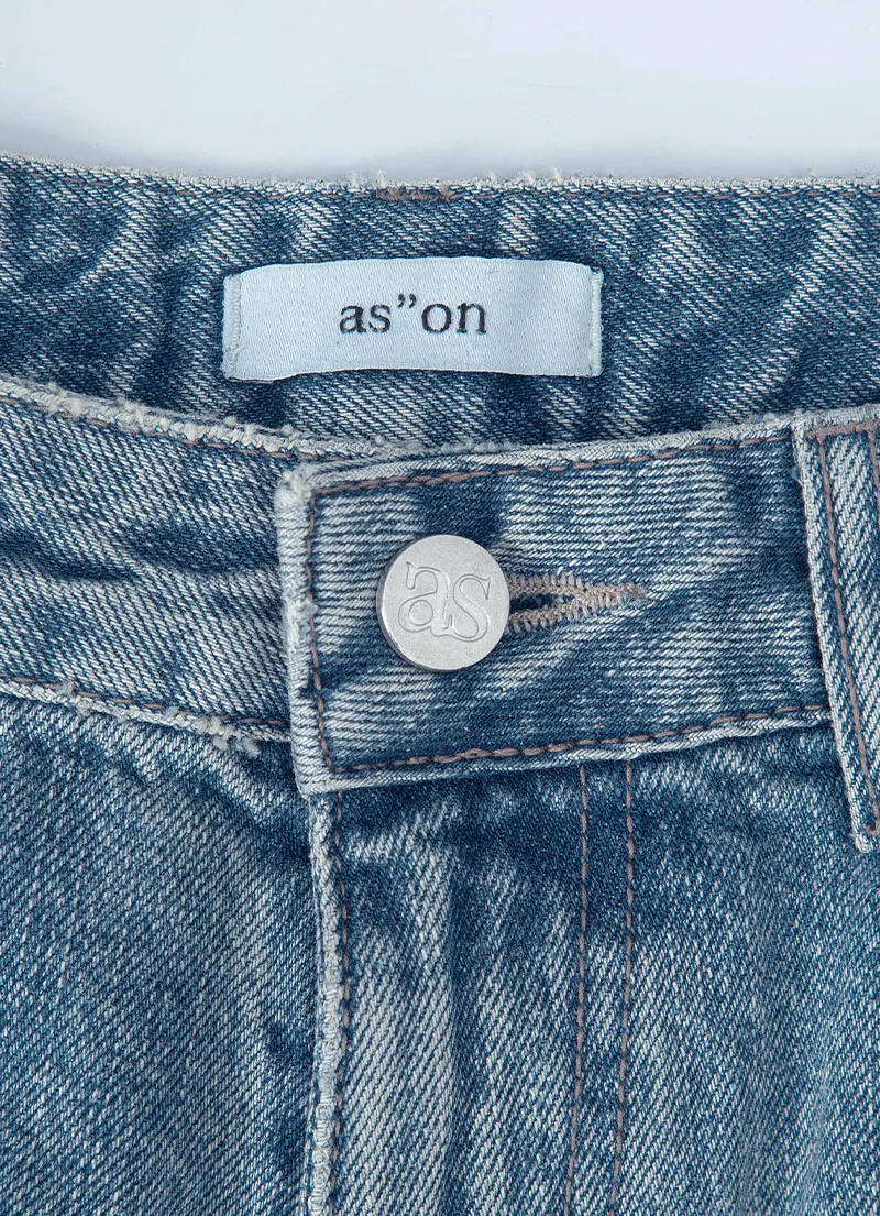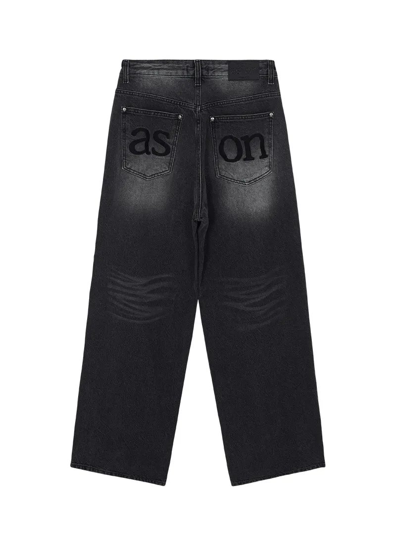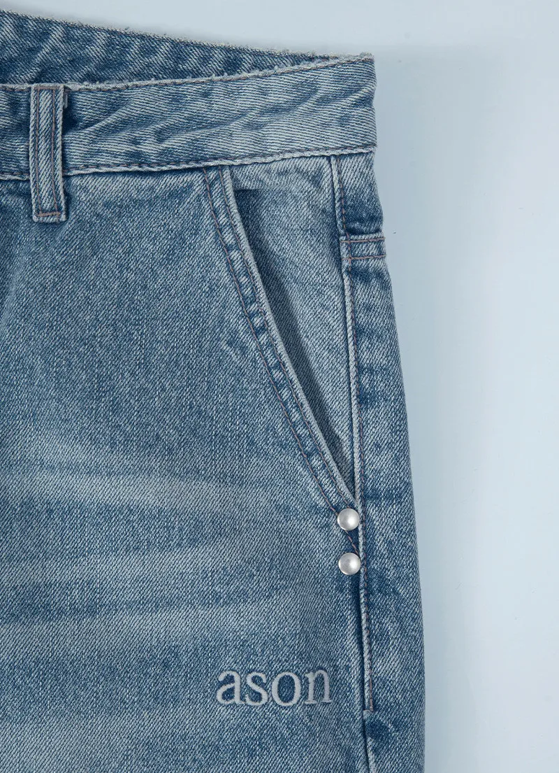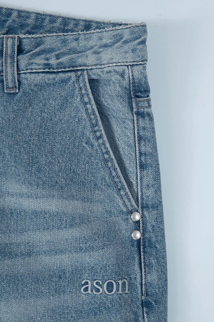 棉 屁屁有品牌logo 經典水洗刷色 釦鍊穿脫 有口袋 無刷毛 微寬直筒