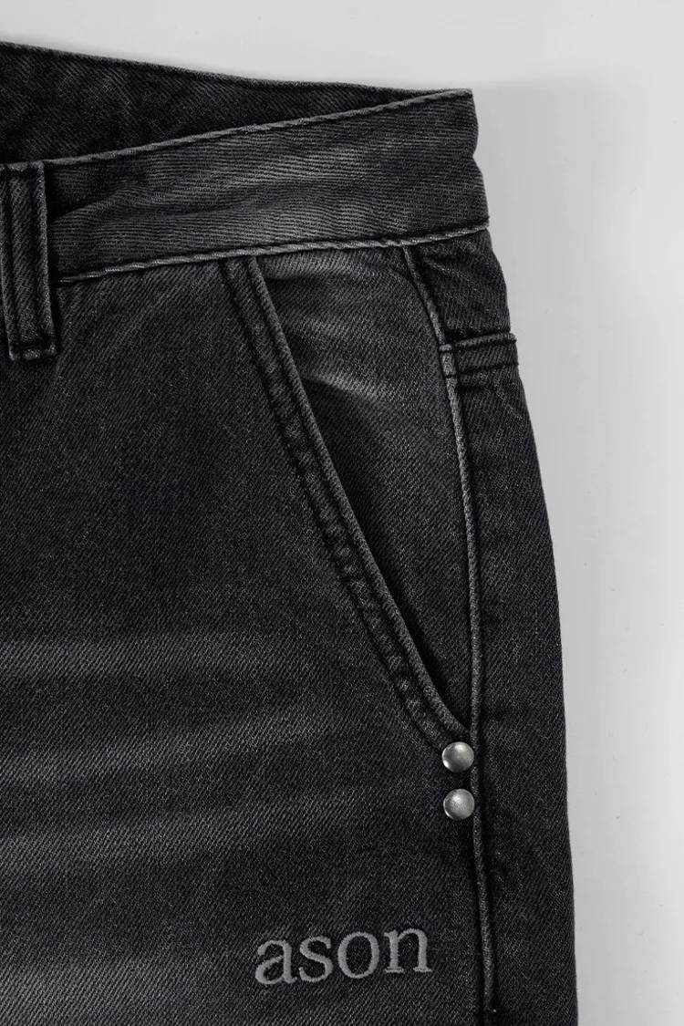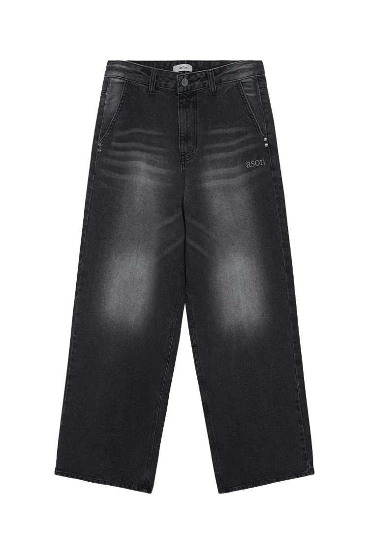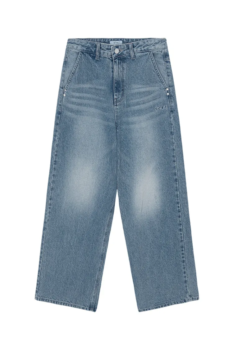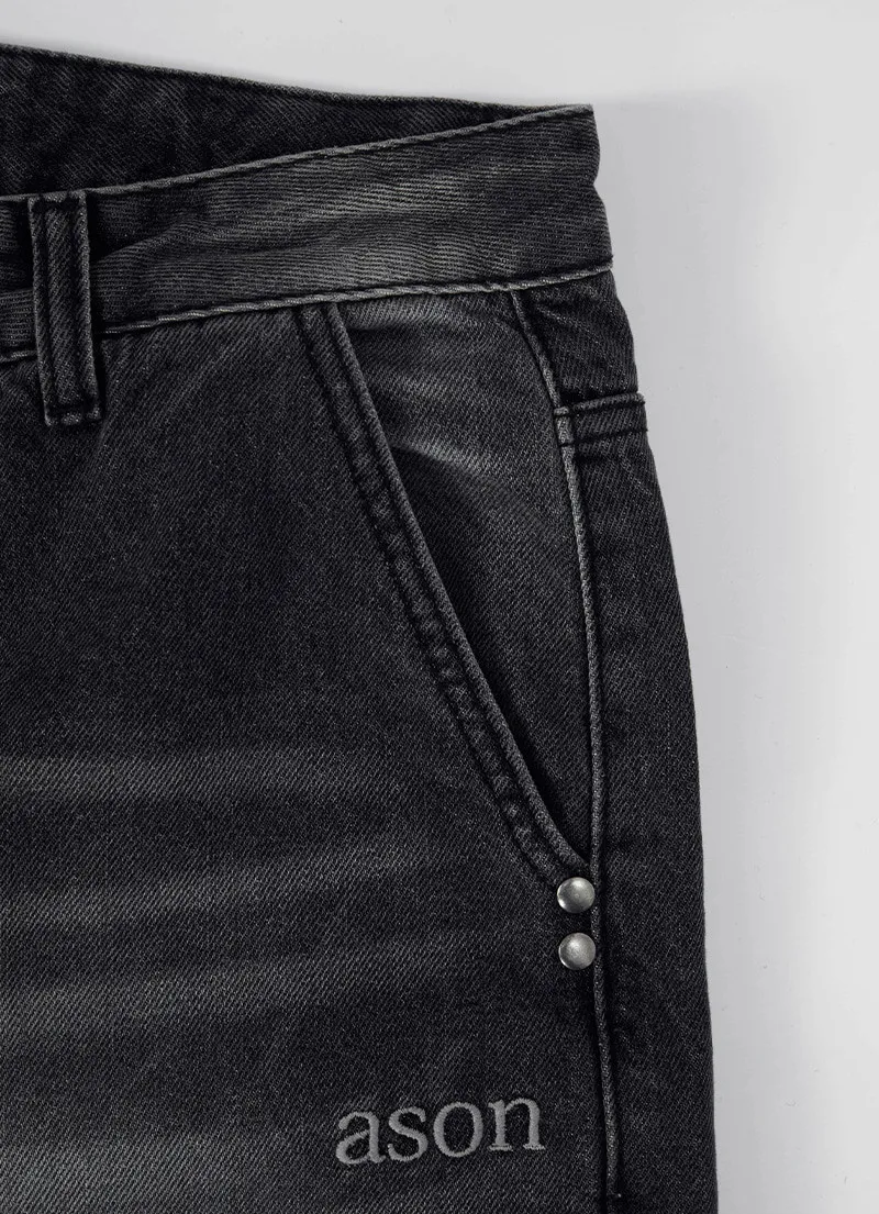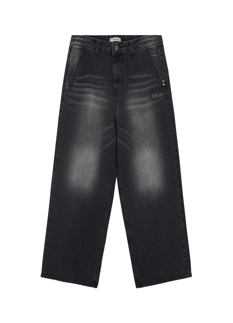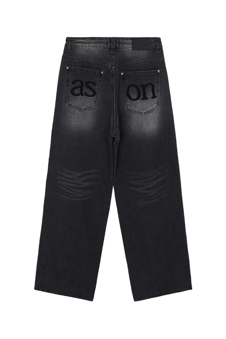 棉 屁屁有品牌logo 經典水洗刷色 釦鍊穿脫 有口袋 無刷毛 微寬直筒