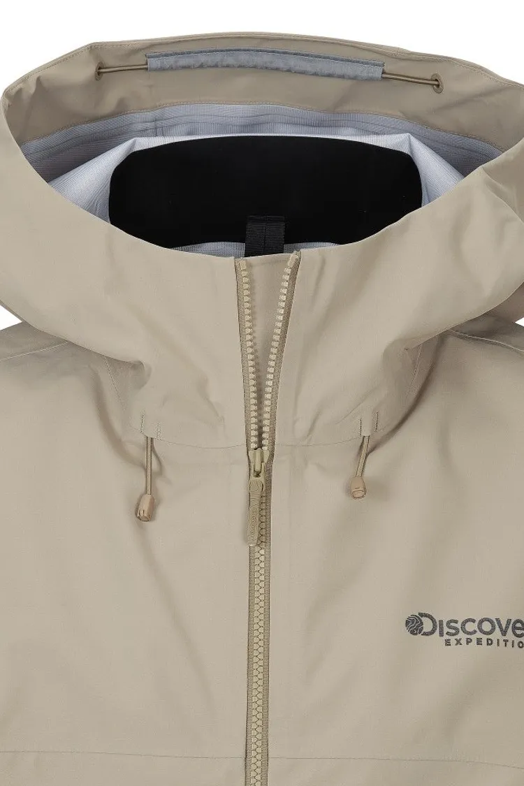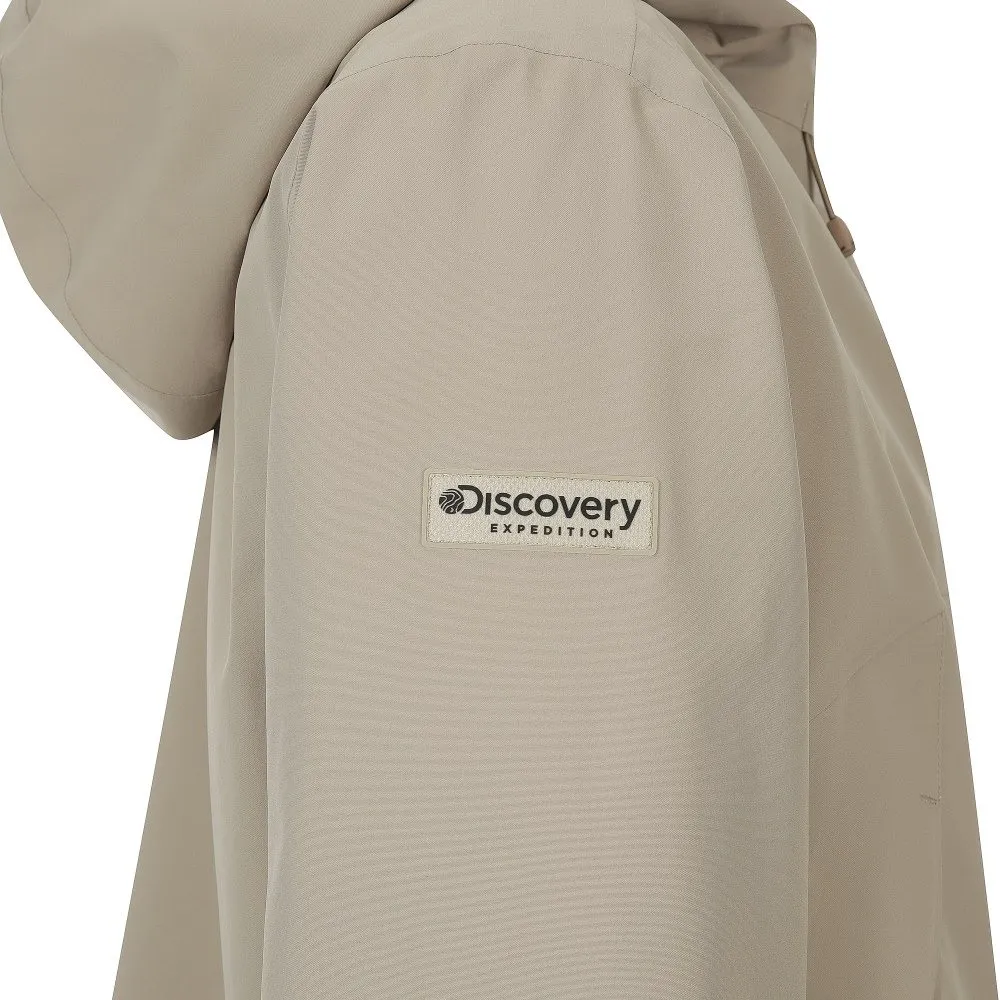3L三層防水透濕結構,有效抵擋雨水滲透,防潑水表層加工,提升日常防護力,胸前 Discovery Expedition 品牌刺繡,展現戶外風格質感,可調節立體帽型與下擺,提升穿著穩定度,防滲膠條接縫設計,增強防水密封性。