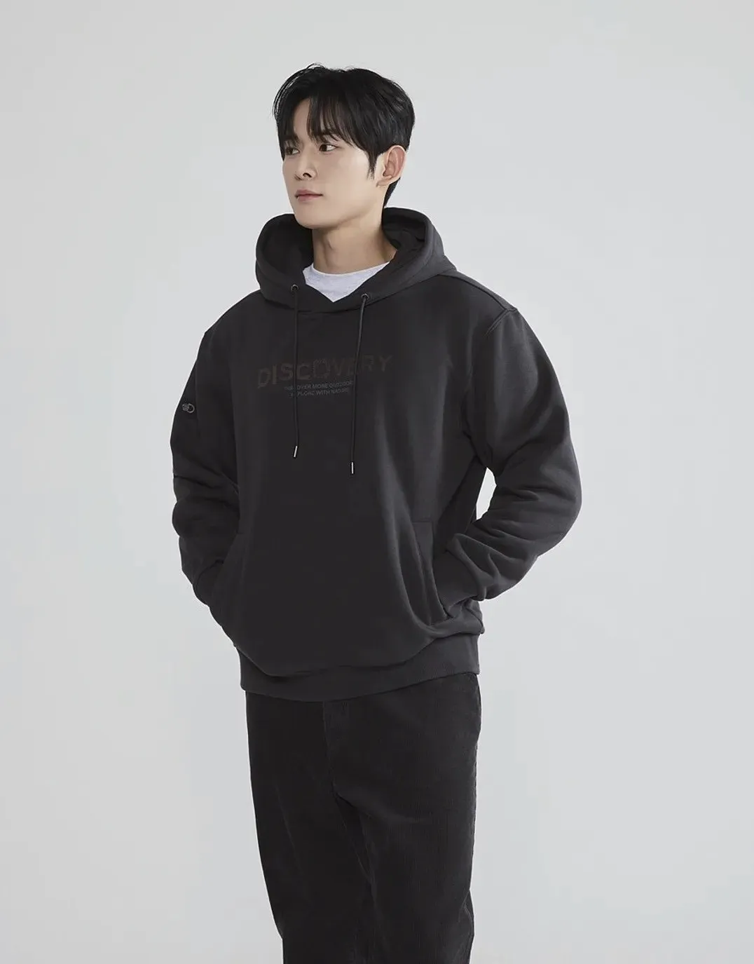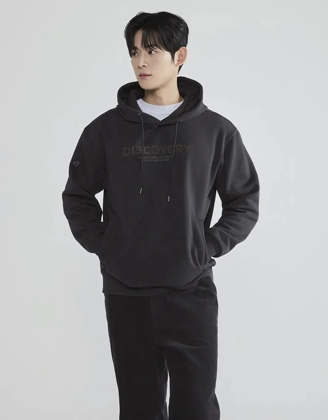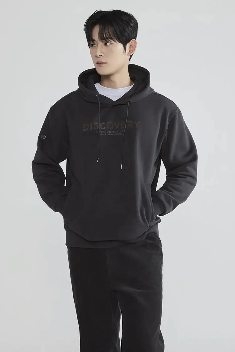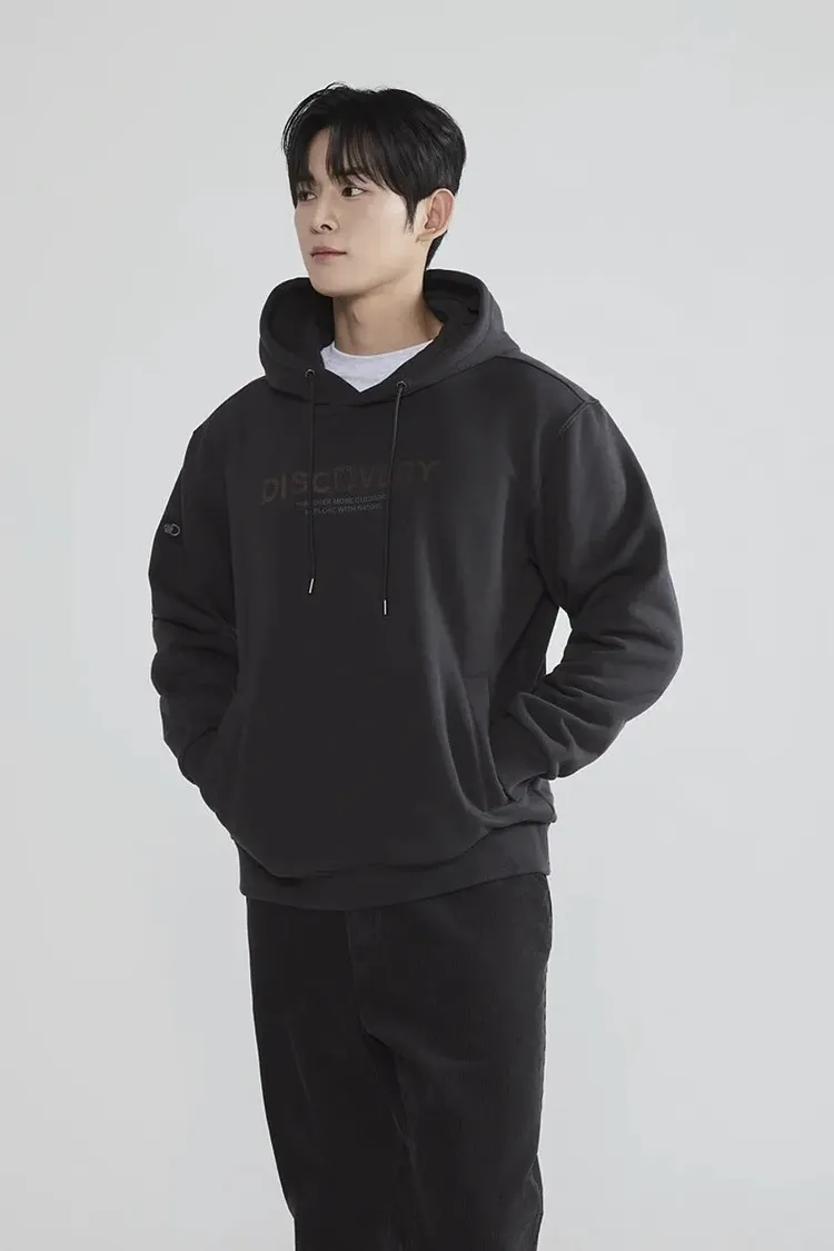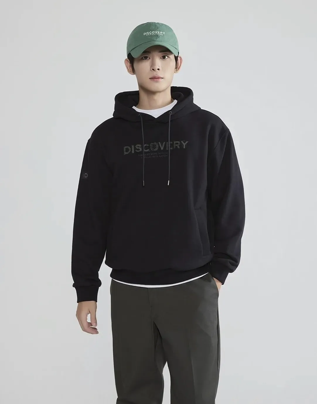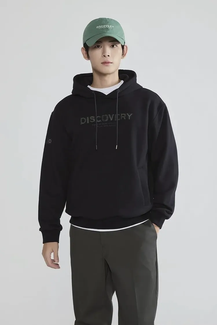 有刷毛正面印有Discovery標誌圖案。 外側口袋的設計既增添了休閒氣息,也兼具收納功能。透過在柔軟的抓絨布料中添加保暖功能性紗線,增強了布料的保暖性。