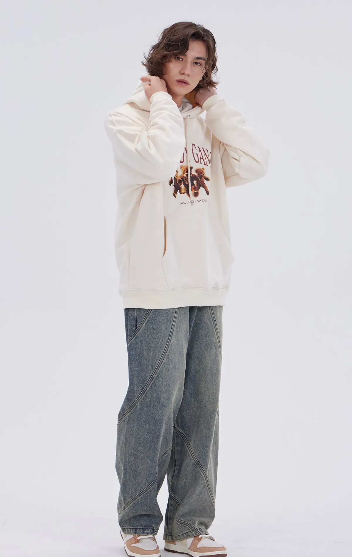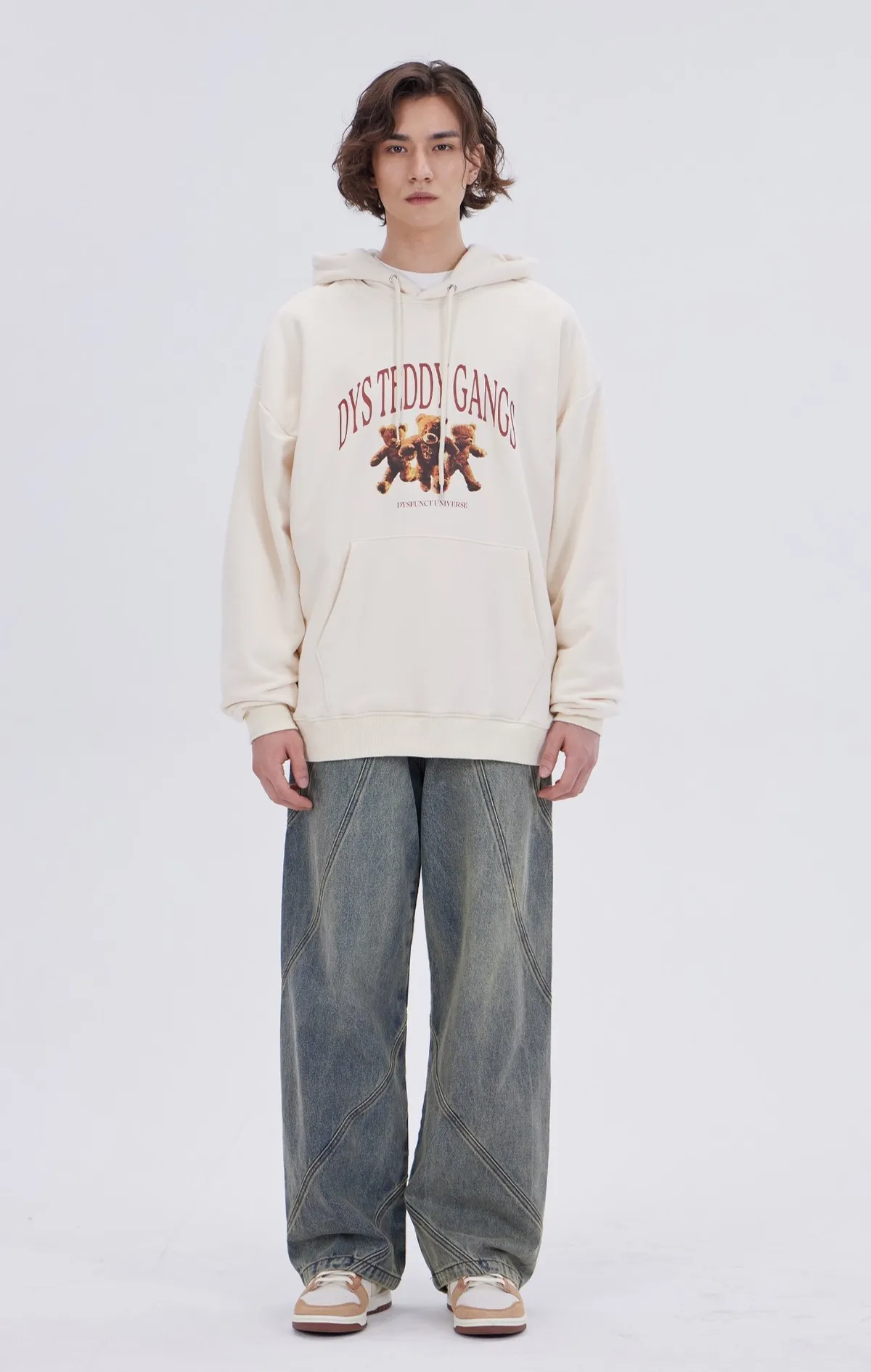 DYSFUNCT040可愛三隻泰迪熊熊帽T(原LV364) 米 藍 S M L 官網價$ 950 線上價$920