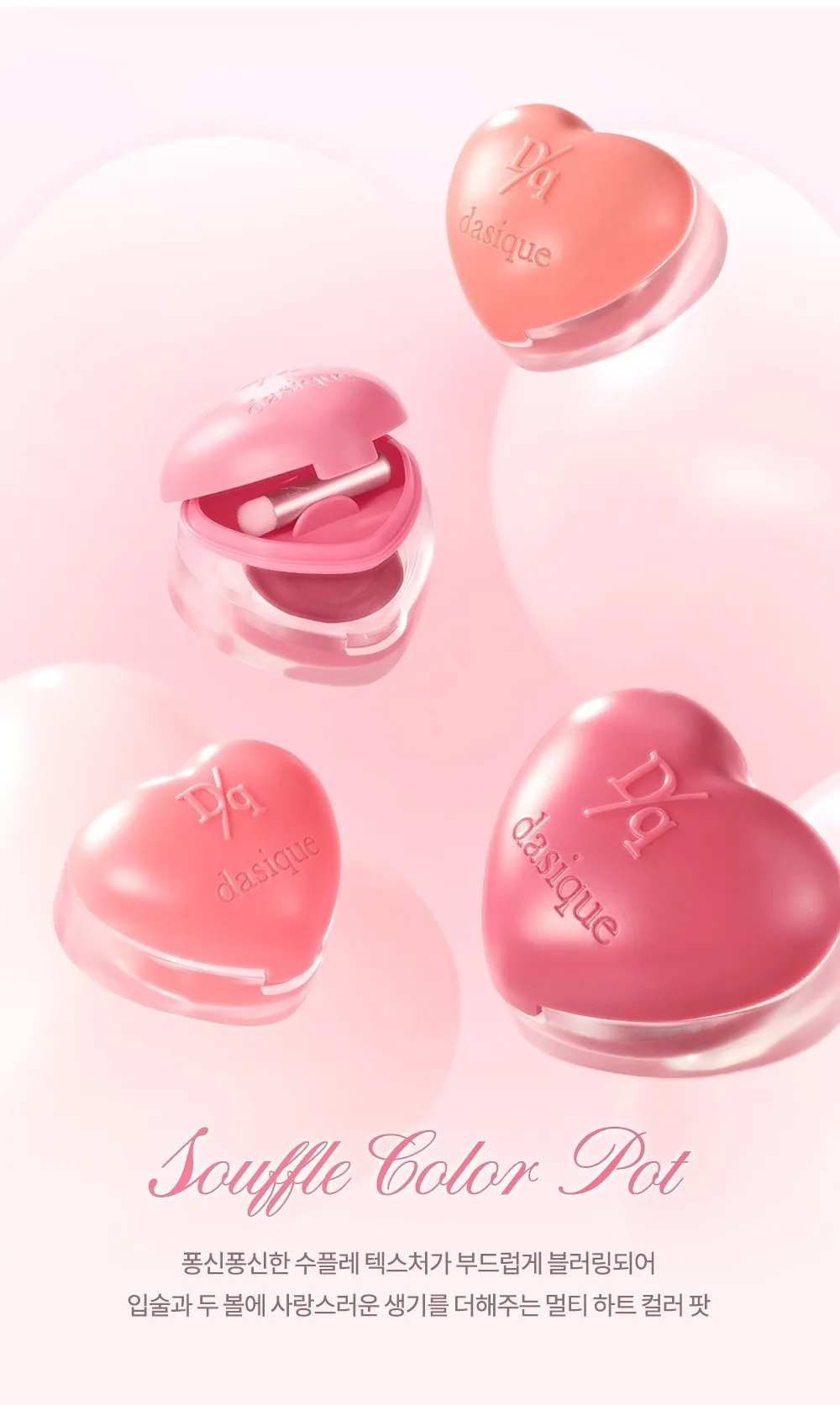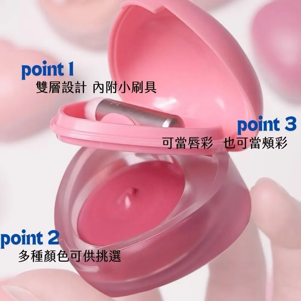 Dasique009愛心舒芙蕾唇頰兩用霜 01~25 官網價$499可愛的愛心外型 內有雙層設計 唇泥搭配迷你唇刷舒芙蕾的質地 蓬鬆軟棉有彈性 使用時要少量使用唷