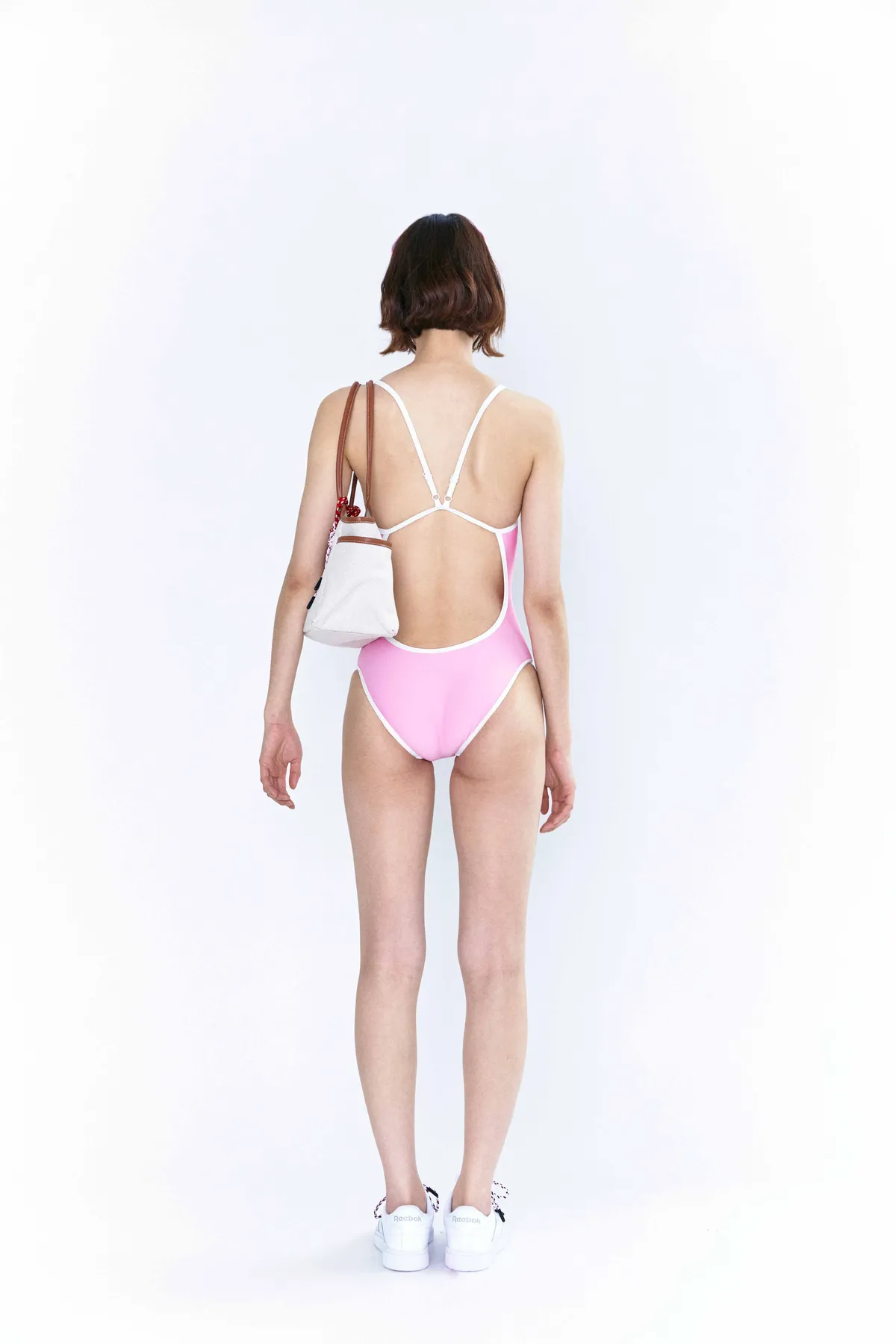 EMIS041肩帶V泳衣 白 粉 紅 黑 售價$2720