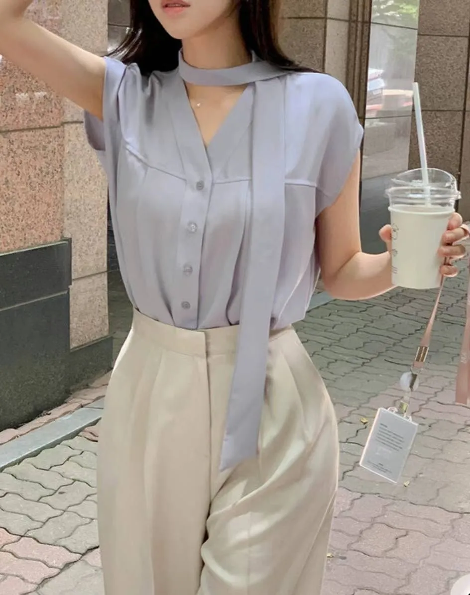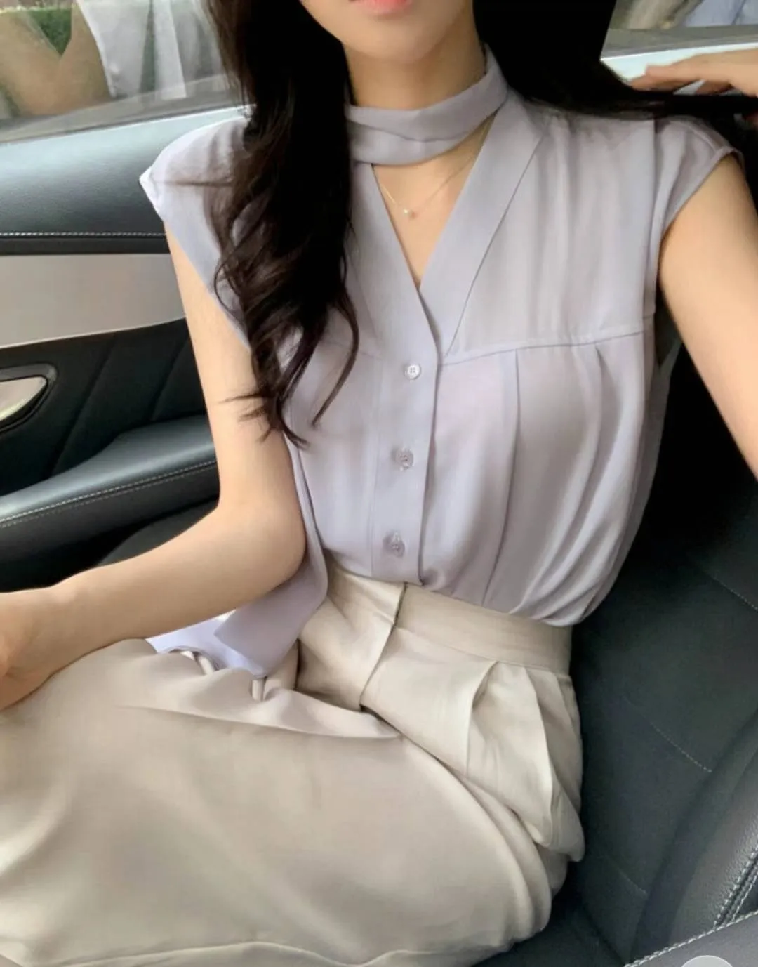 雪紡 薄款透光 排釦穿脫 附頸綁帶 空間寬鬆舒適 L號友善