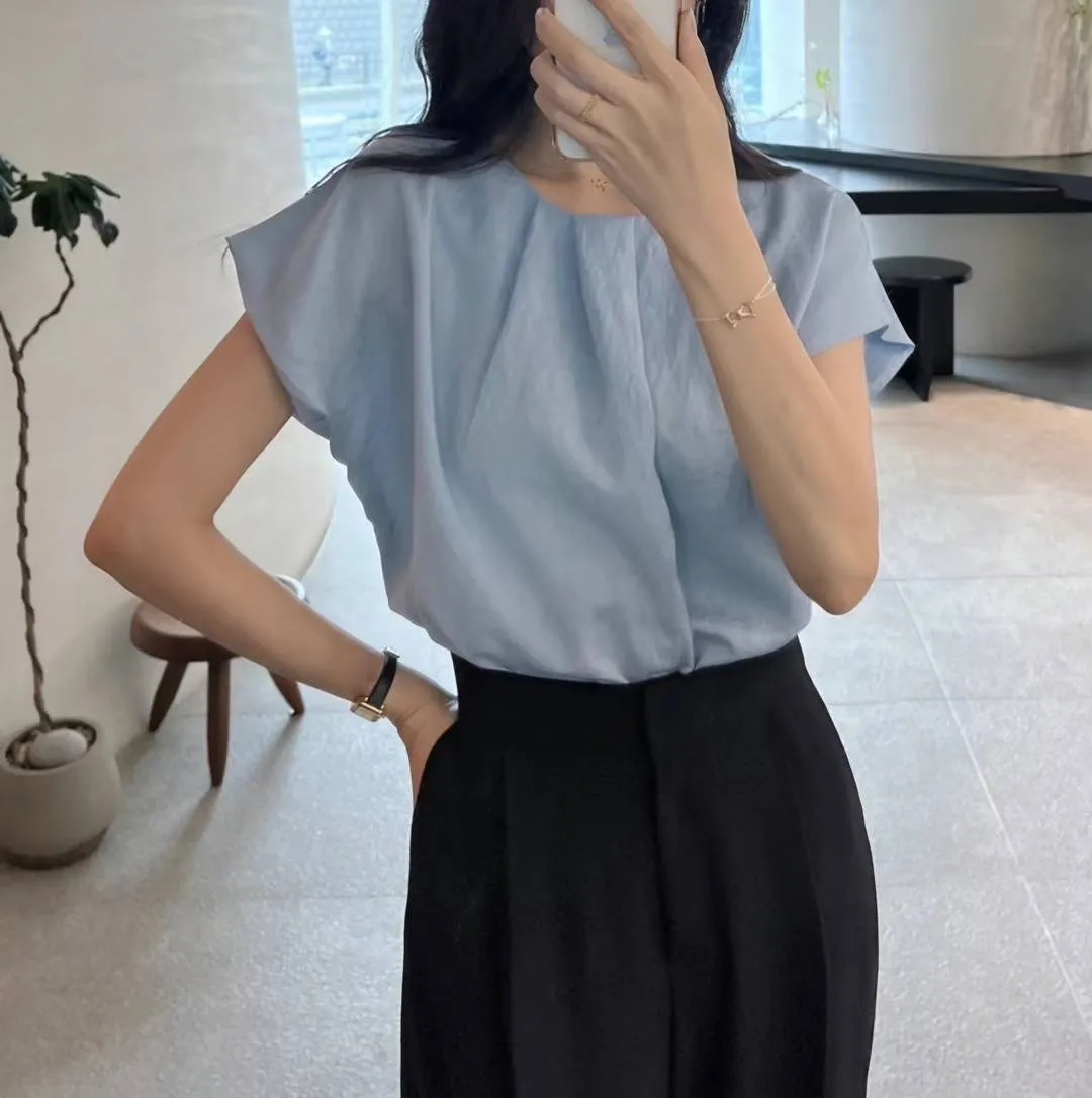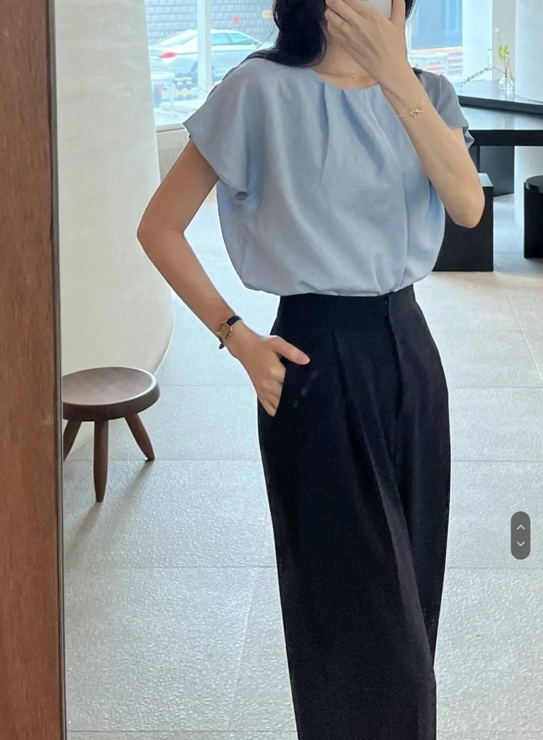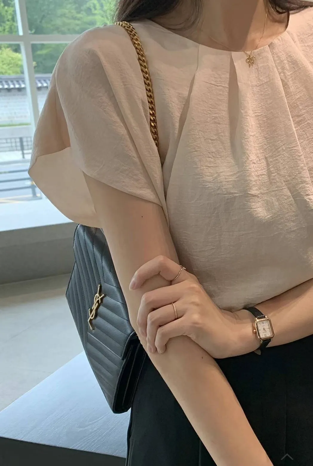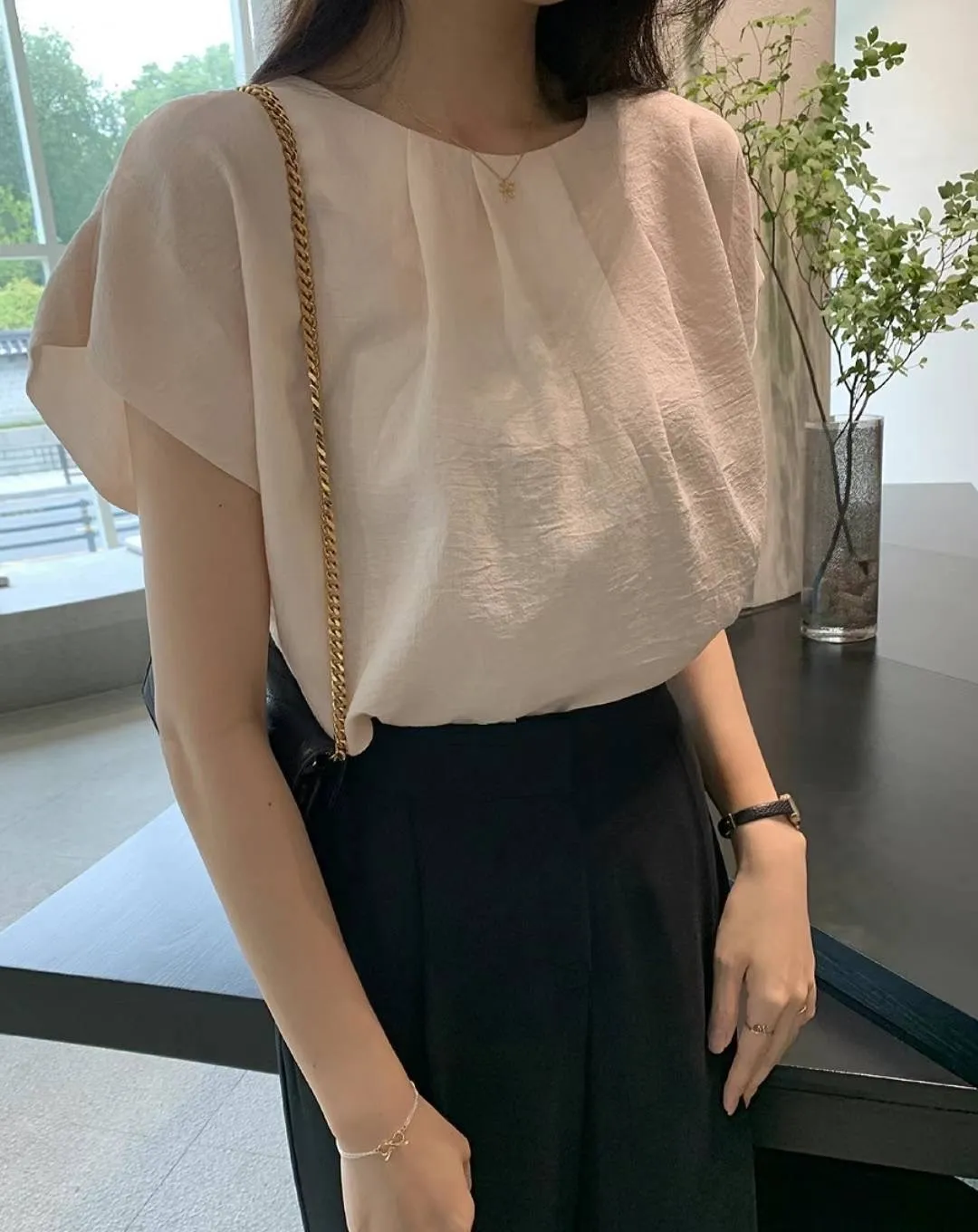 夏季雪紡 薄款透光 觸感柔軟 冰涼高級 微皺紋理 後頸單釦