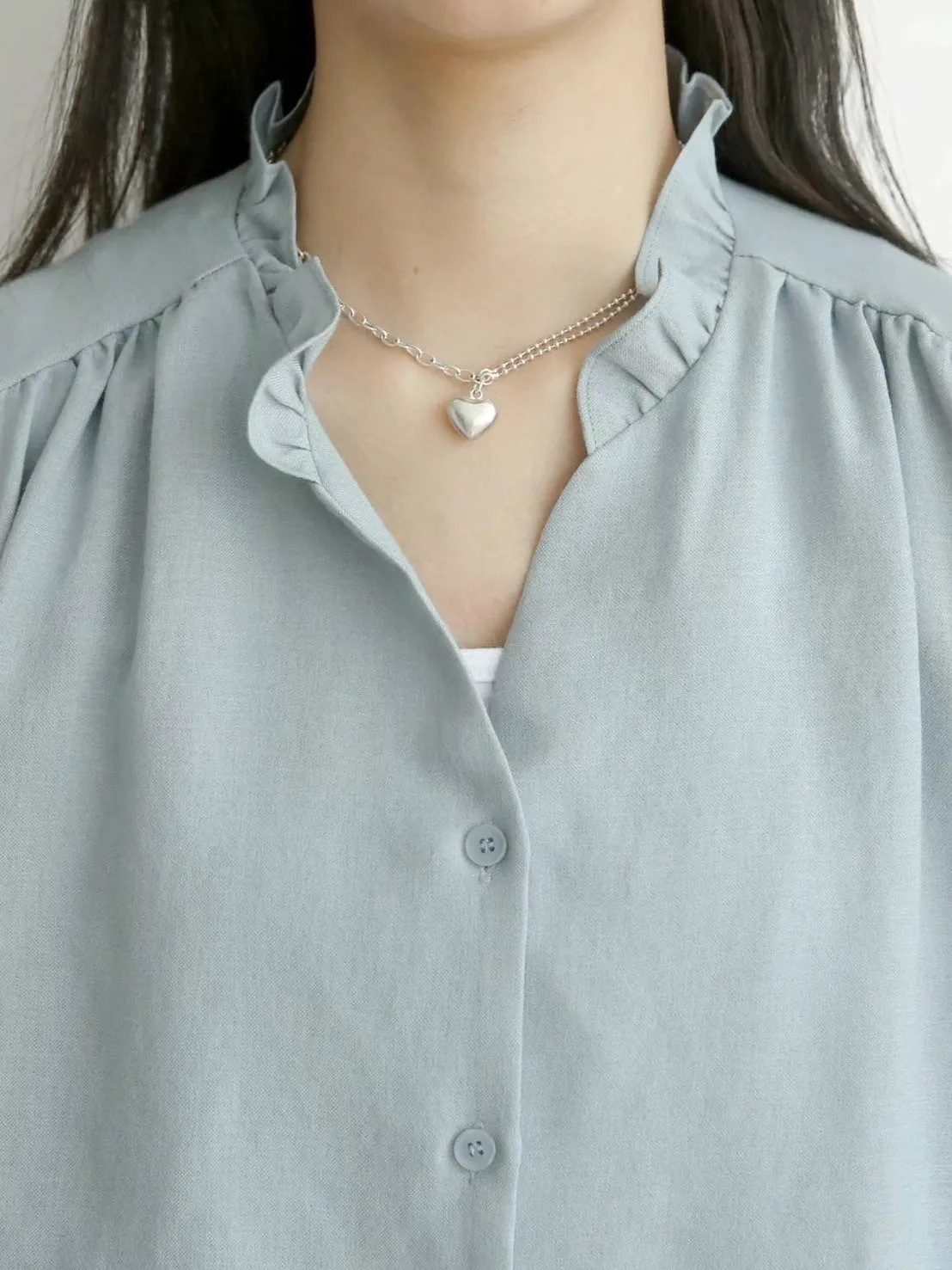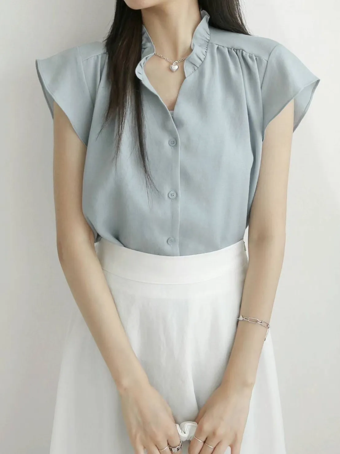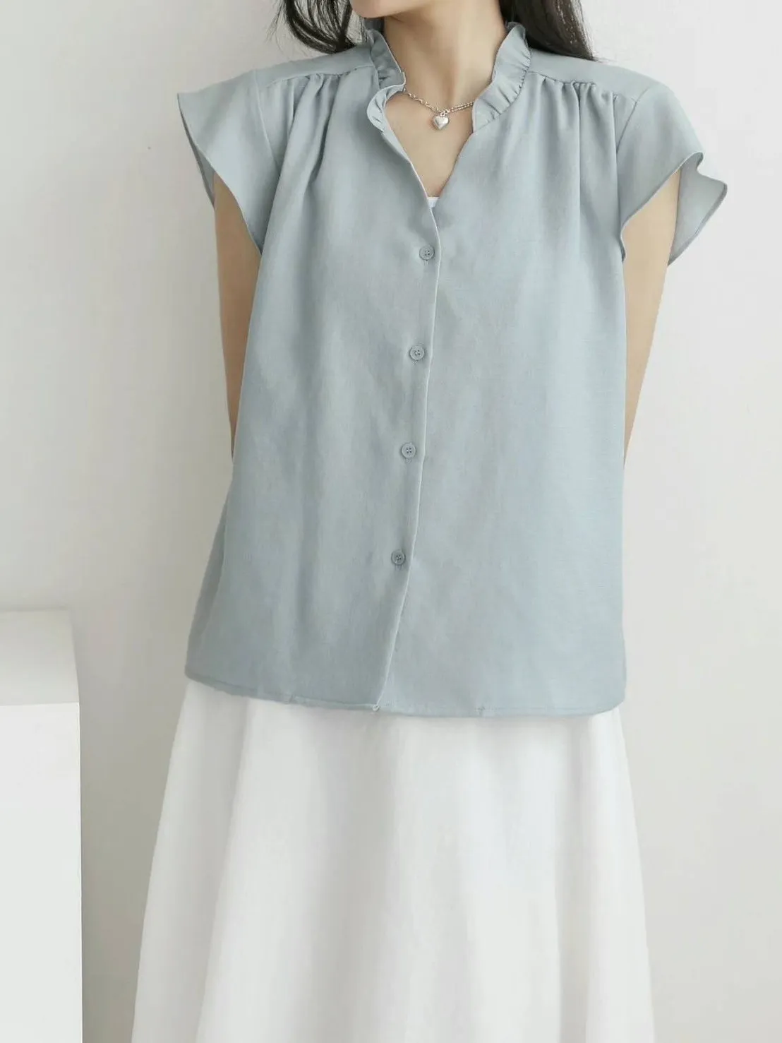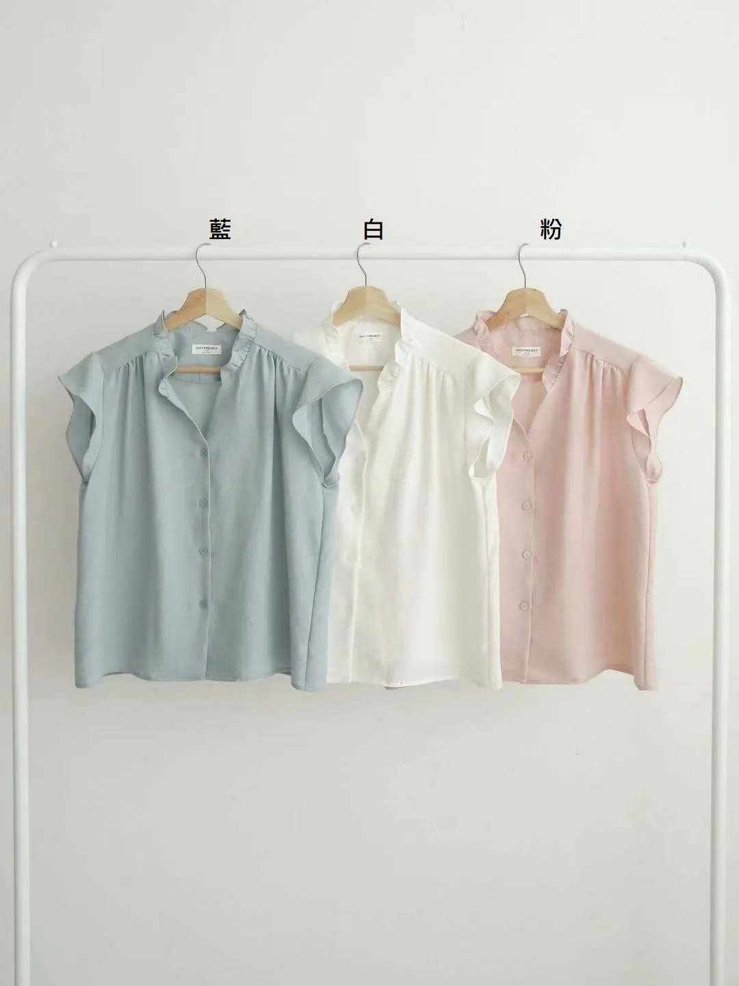 雪紡+縲縈 薄款 波浪顯瘦肩袖 排釦穿脫 V領顯瘦