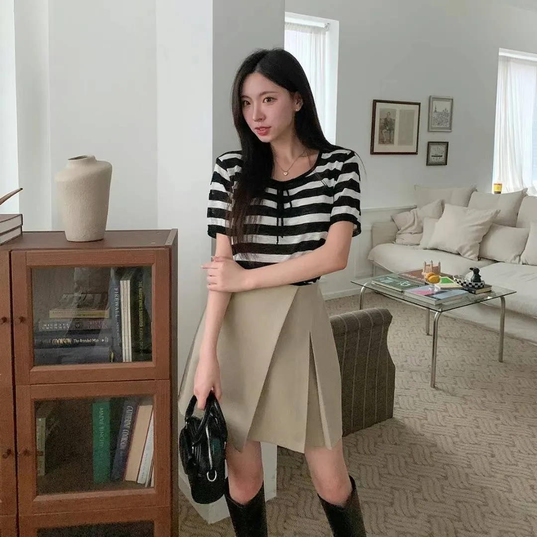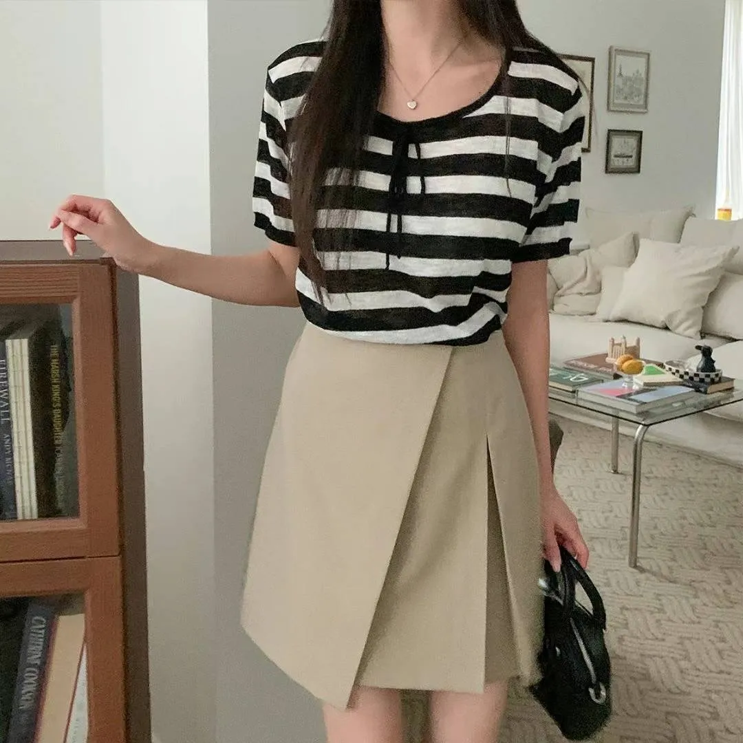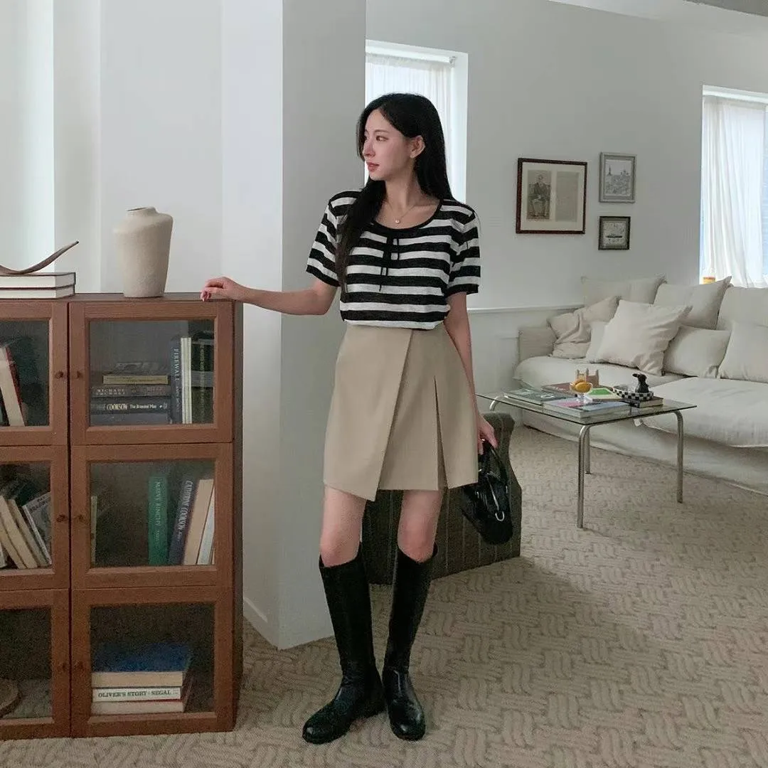 西裝面料 拉鍊穿脫 後腰鬆緊 L號友善 是褲裙唷