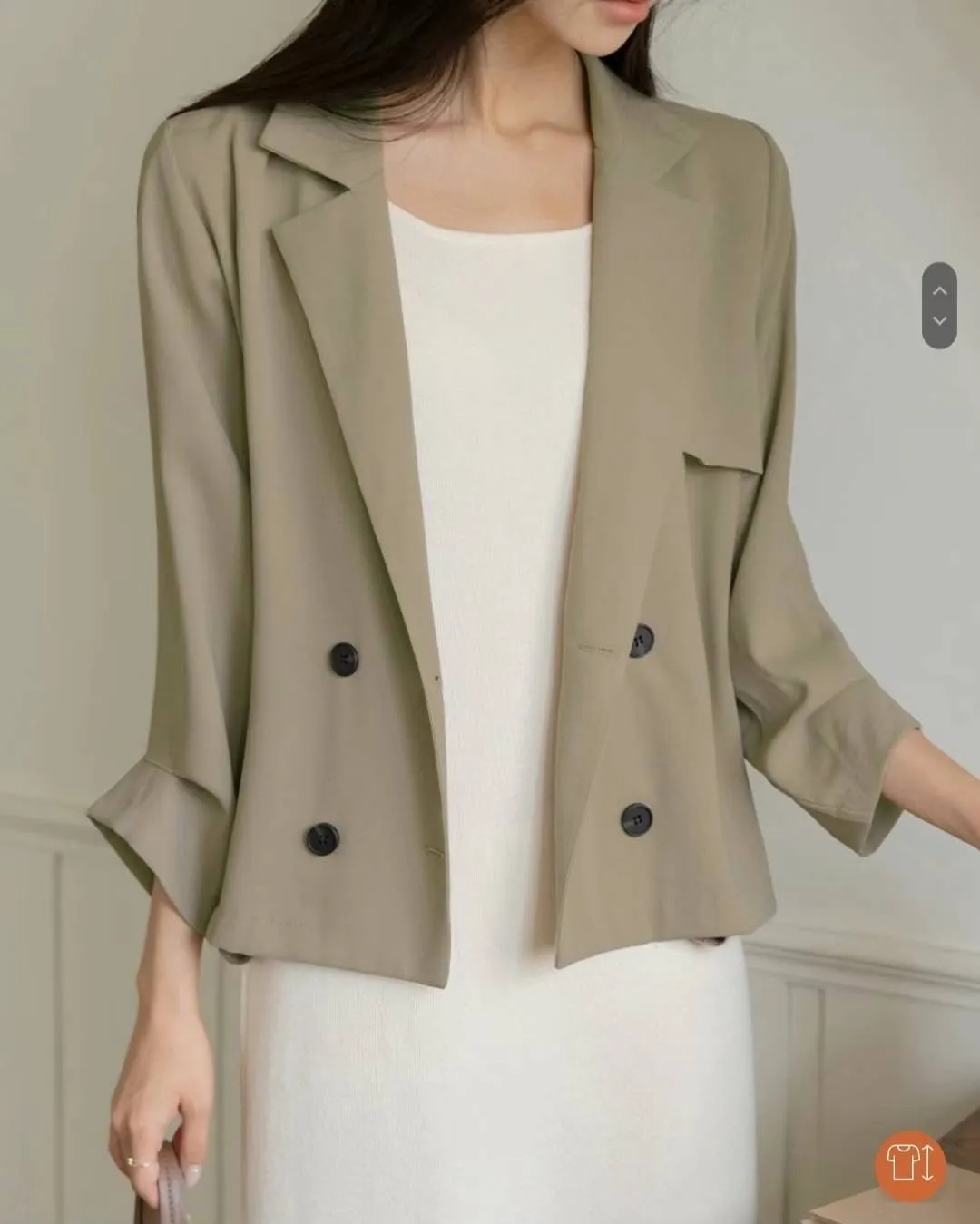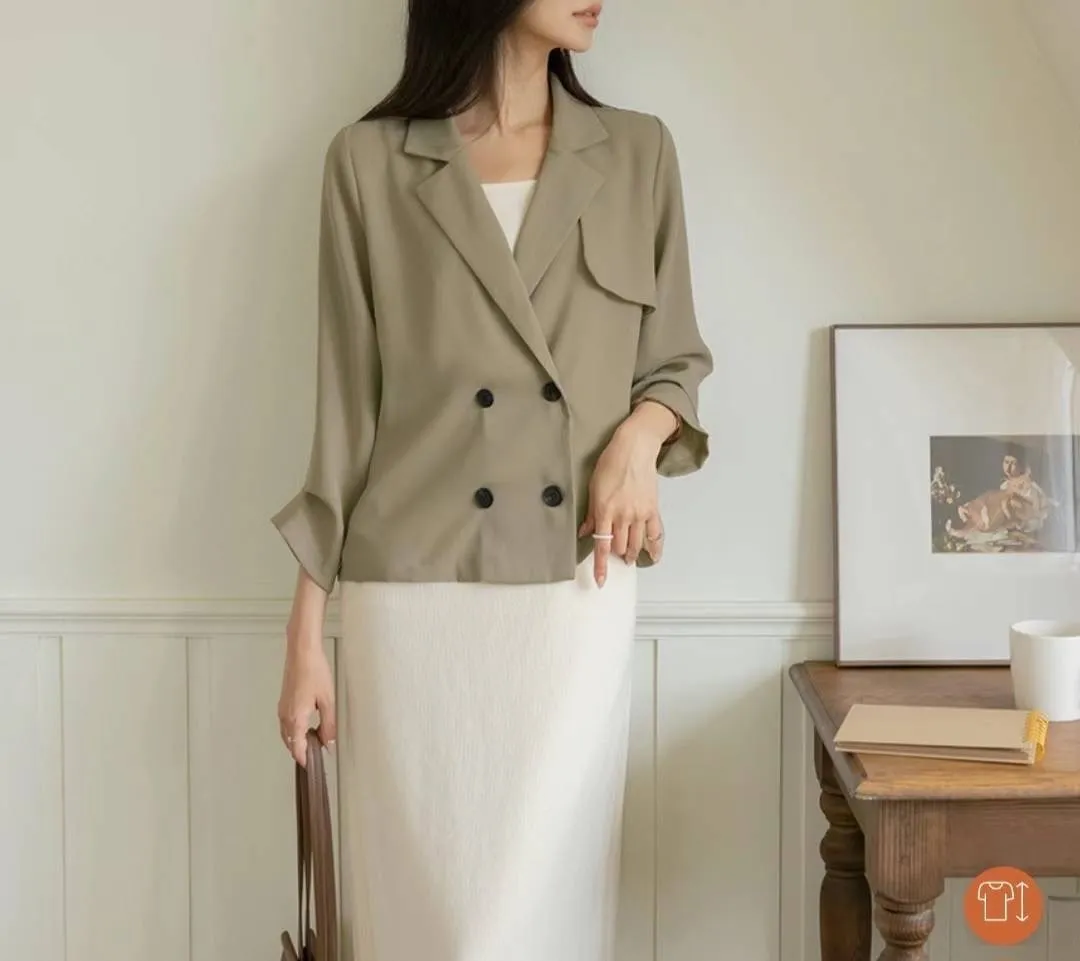 聚酯 前胸覆片 有暗釦 順身垂墜 有口袋 七分袖 簡單好看 秋天款