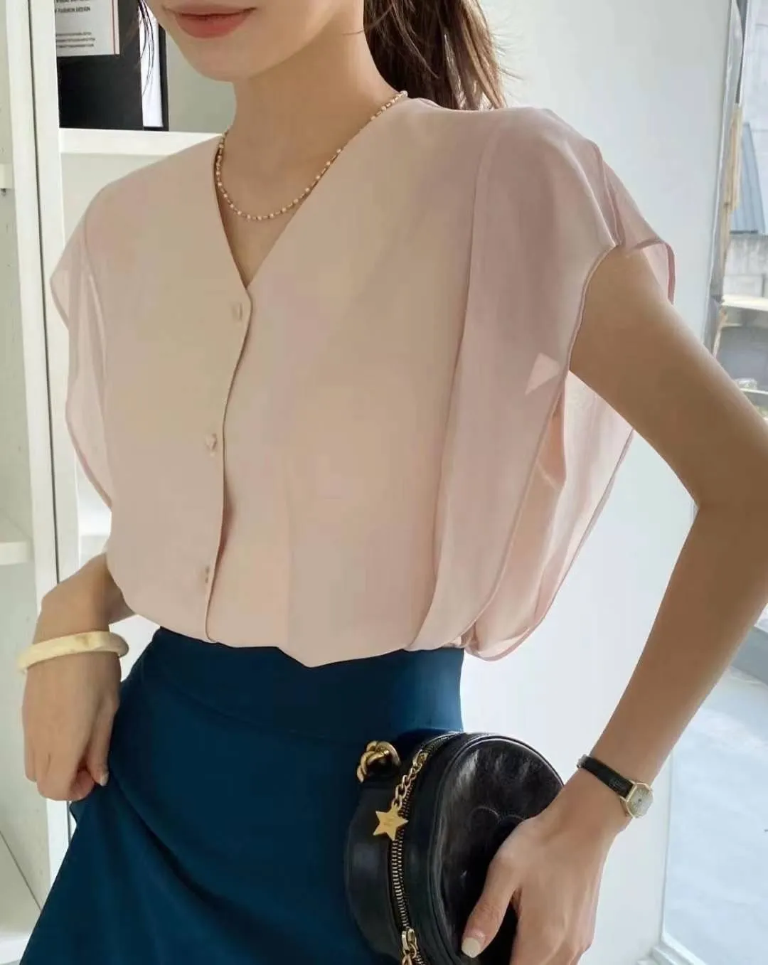 夏季雪紡 推薦款 薄款輕盈 V領顯瘦 空間寬鬆 版型優秀