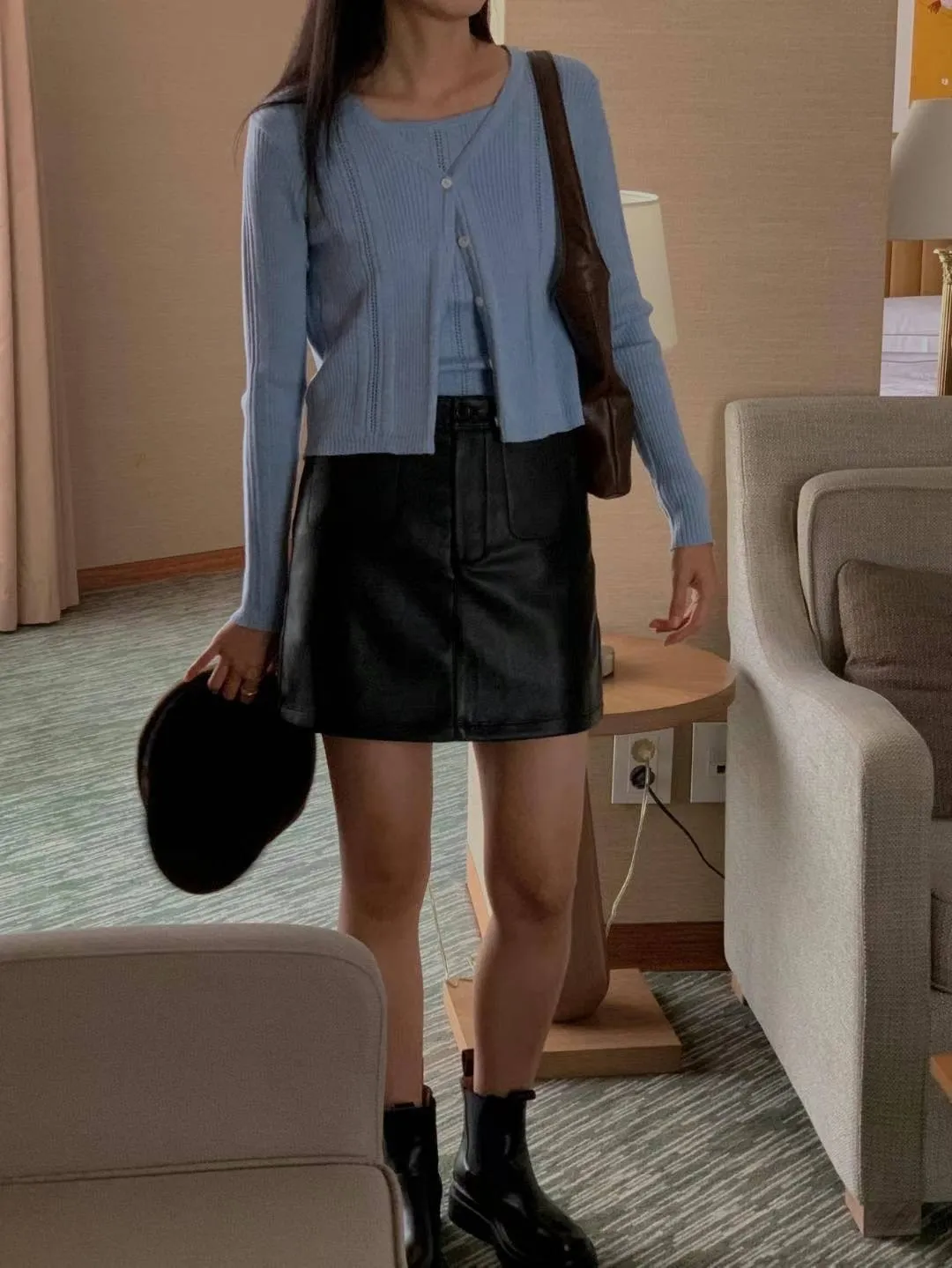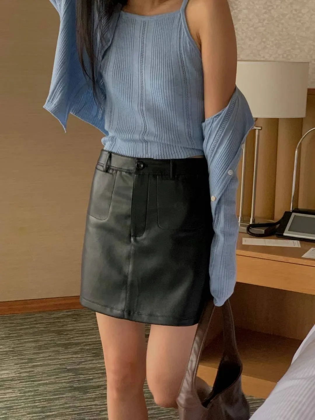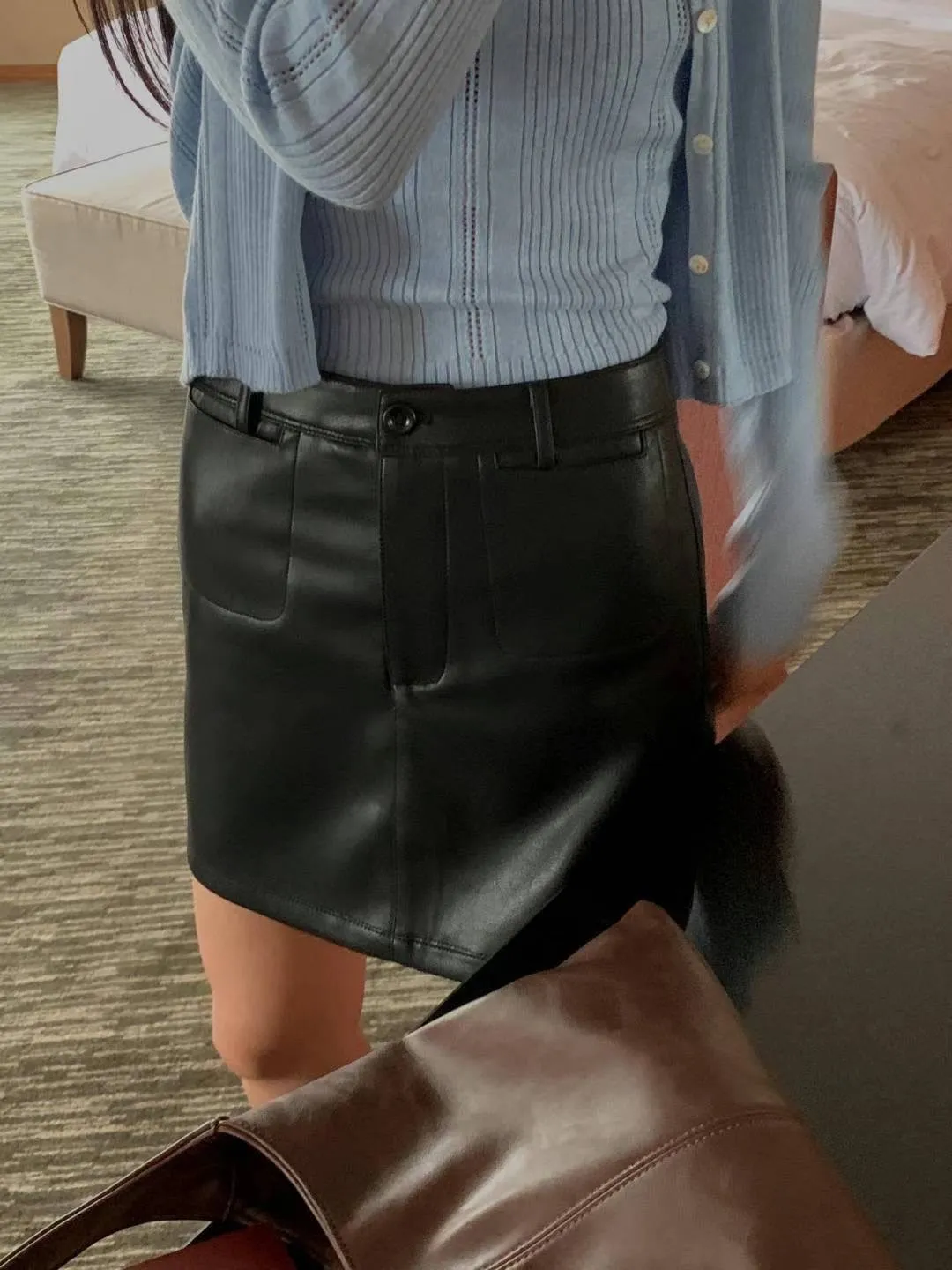 FA036難得一遇好看皮裙 咖 黑 S M L 官網價$1020 線上價$990