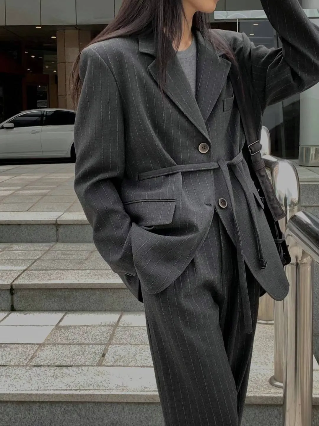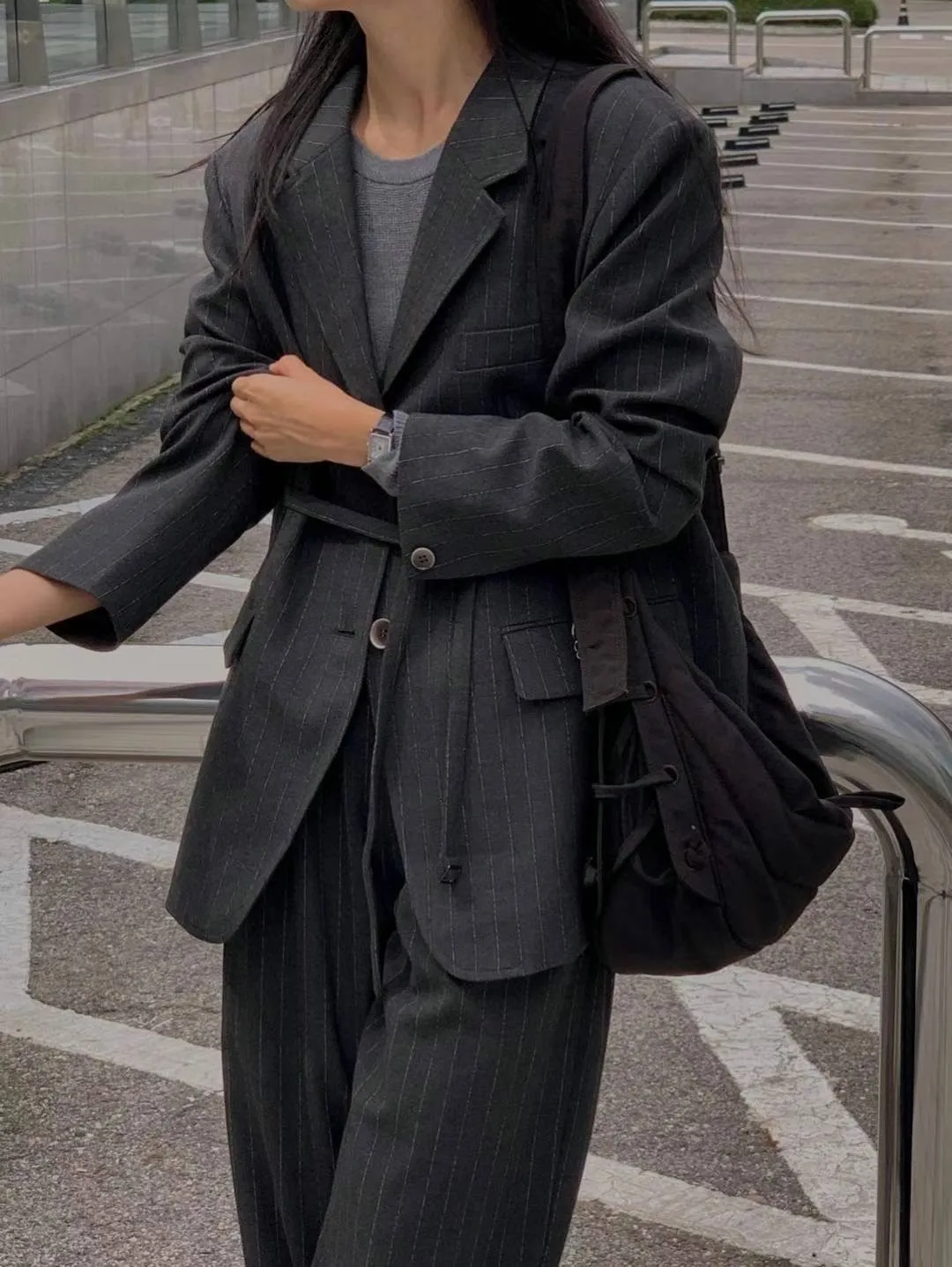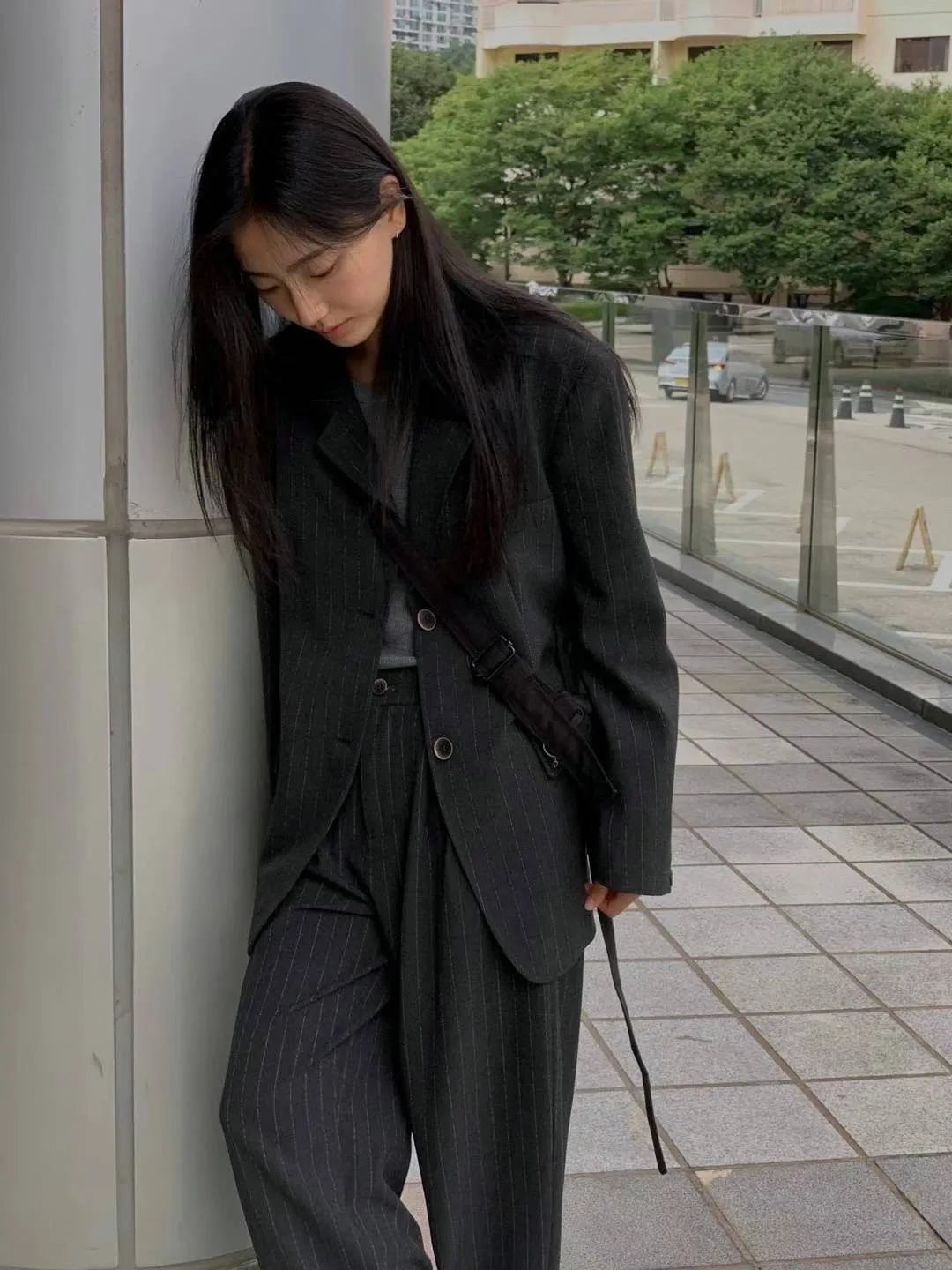 FA047套裝的直條紋西裝外套 S M 官網價$1850 線上價$1820