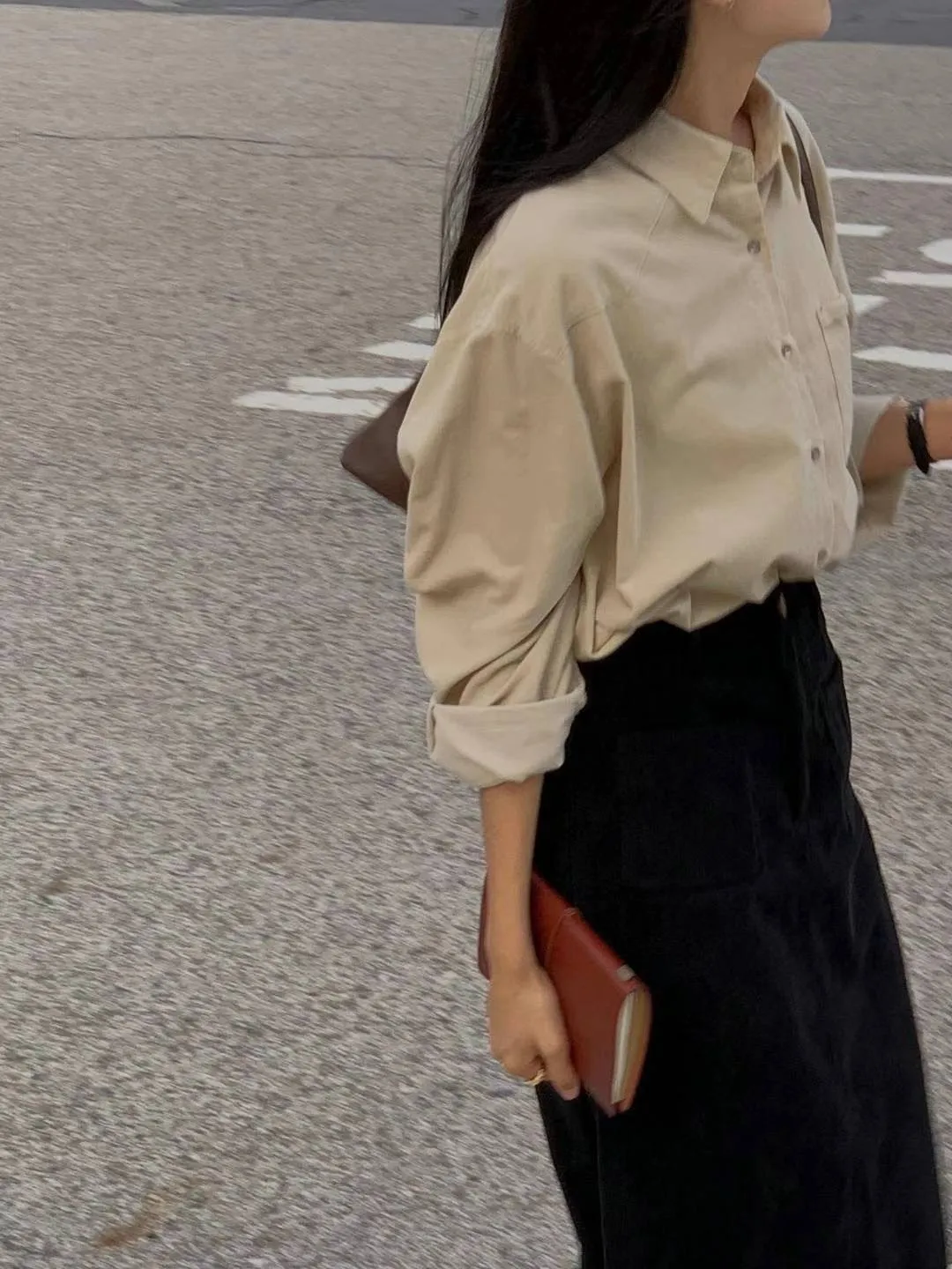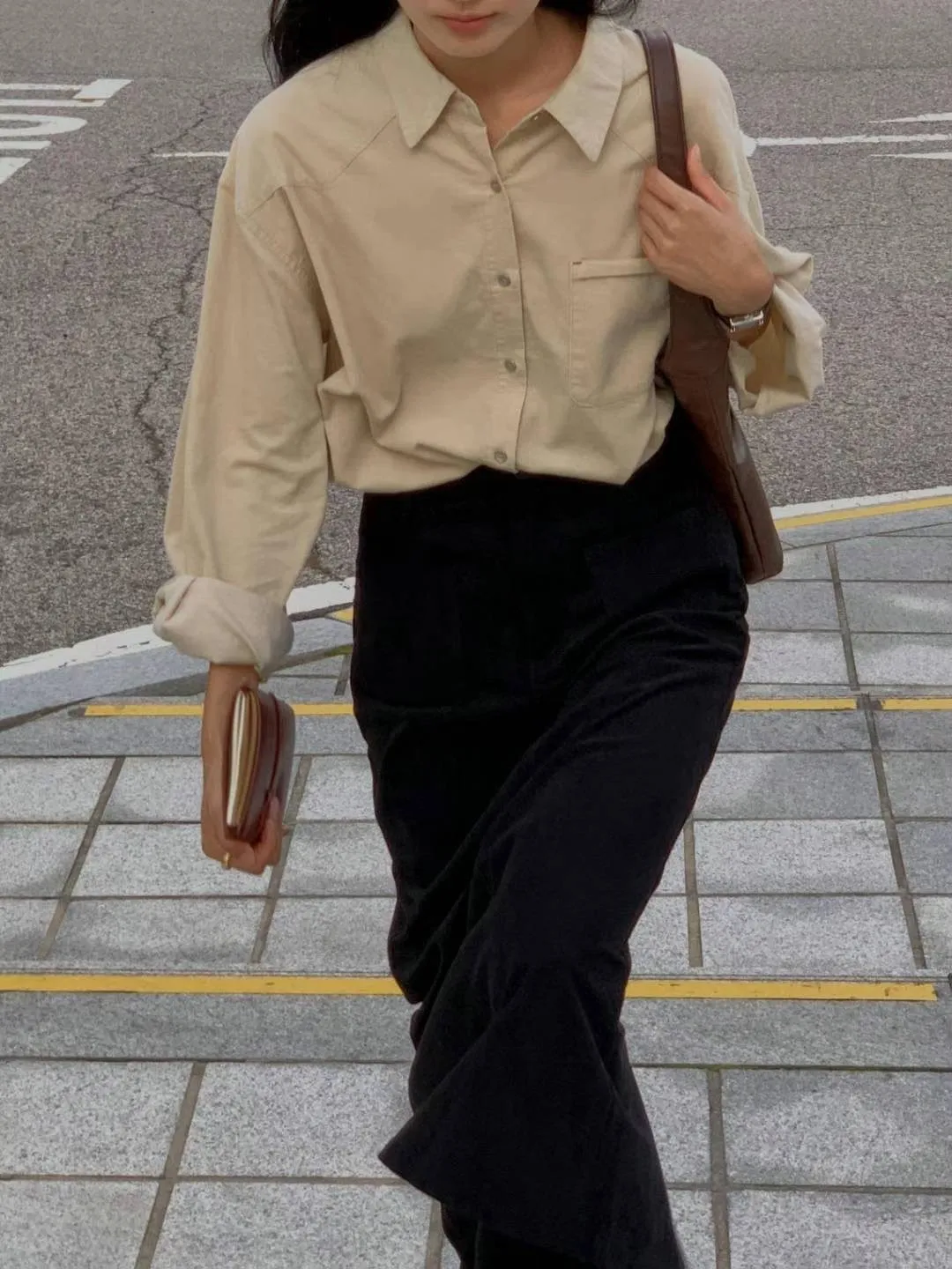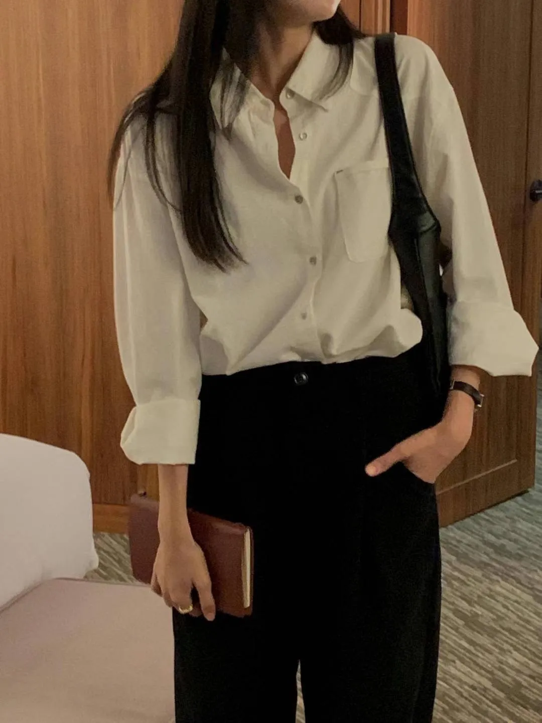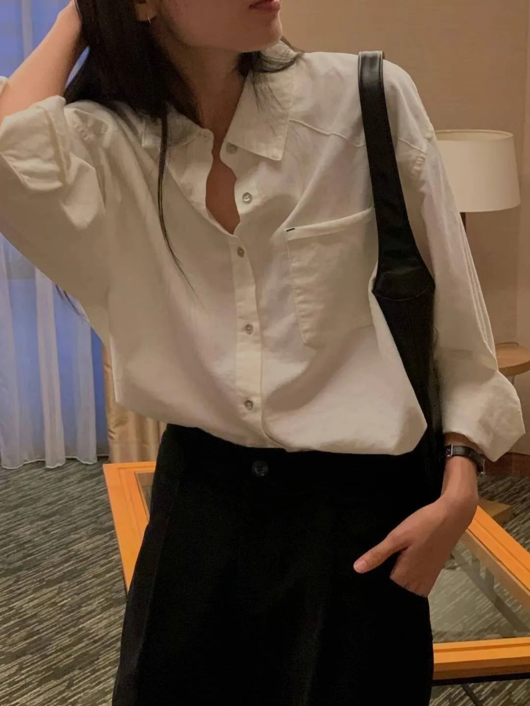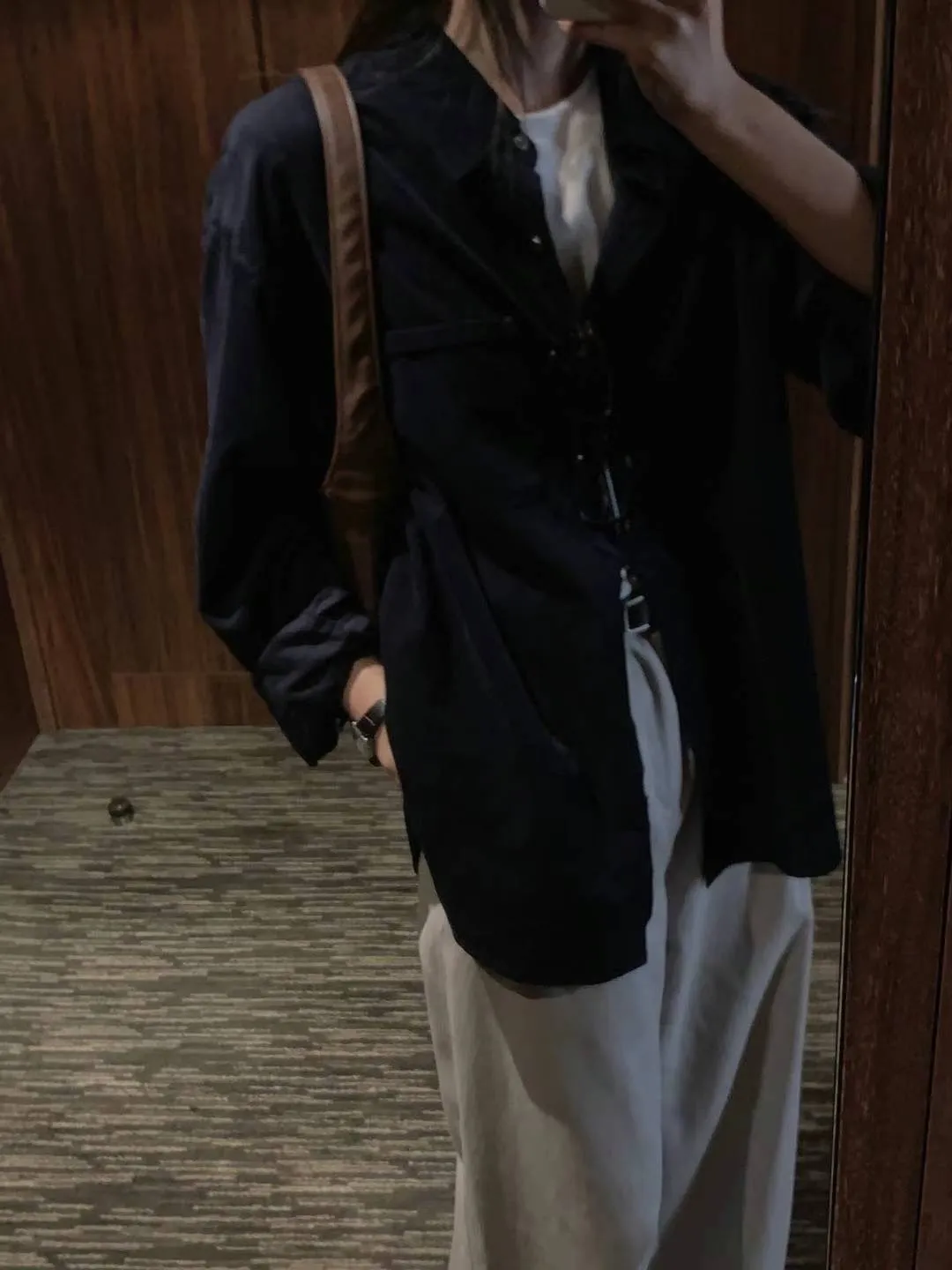 FA049隨性細節單口袋襯衫 白 米 深藍 官網價$1020 線上價$990