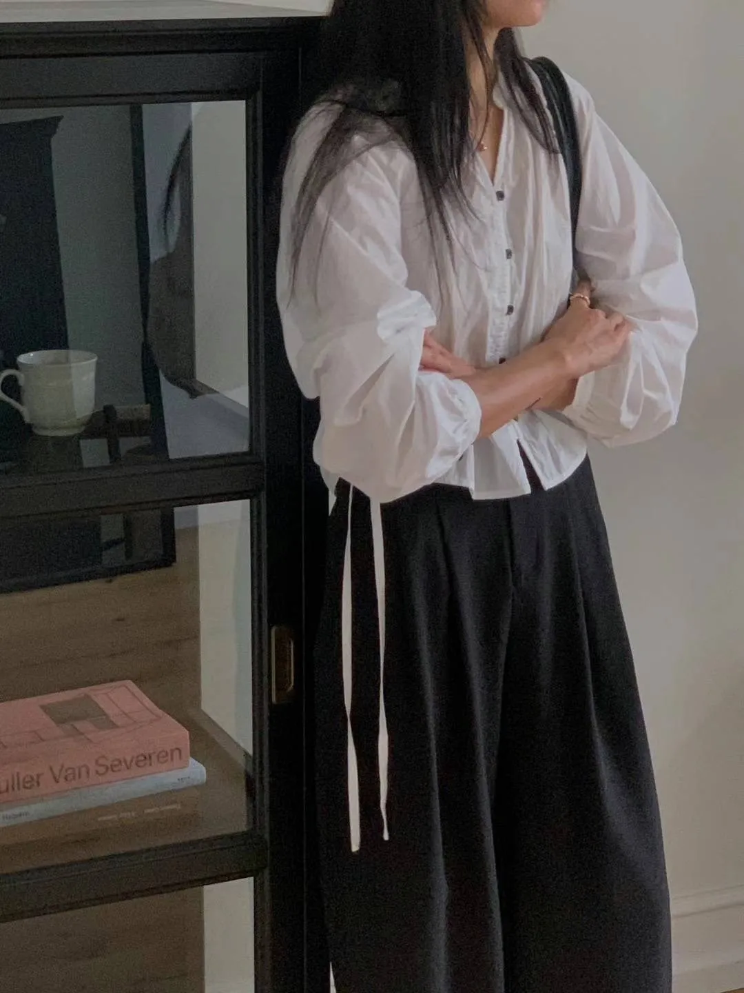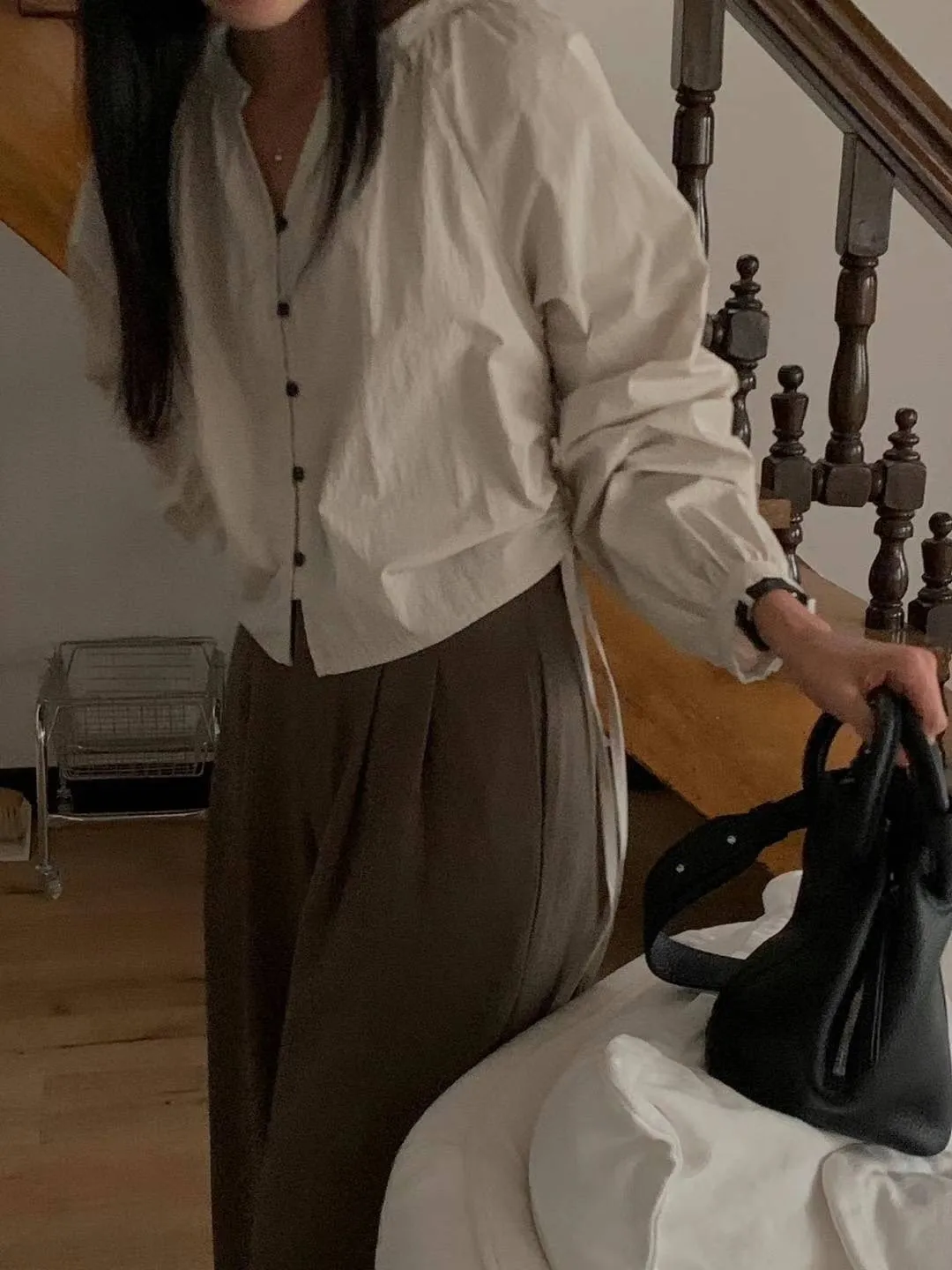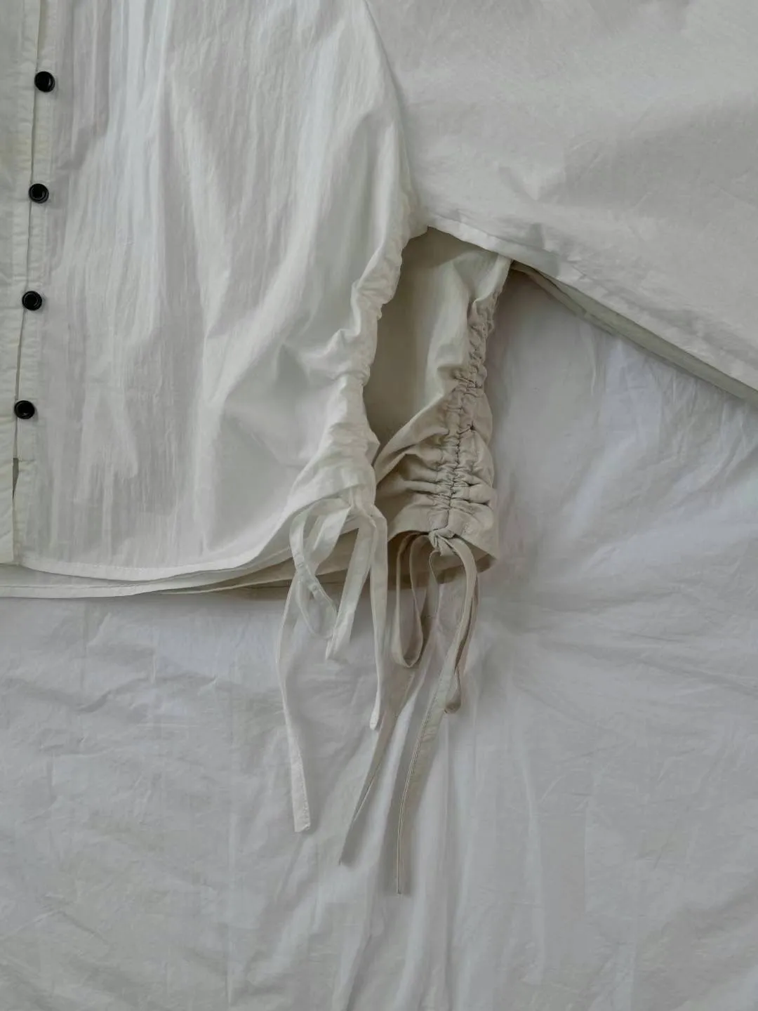 FA055設計感側腰綁帶抽繩上衣 白 奶茶 官網價$920 線上價$890