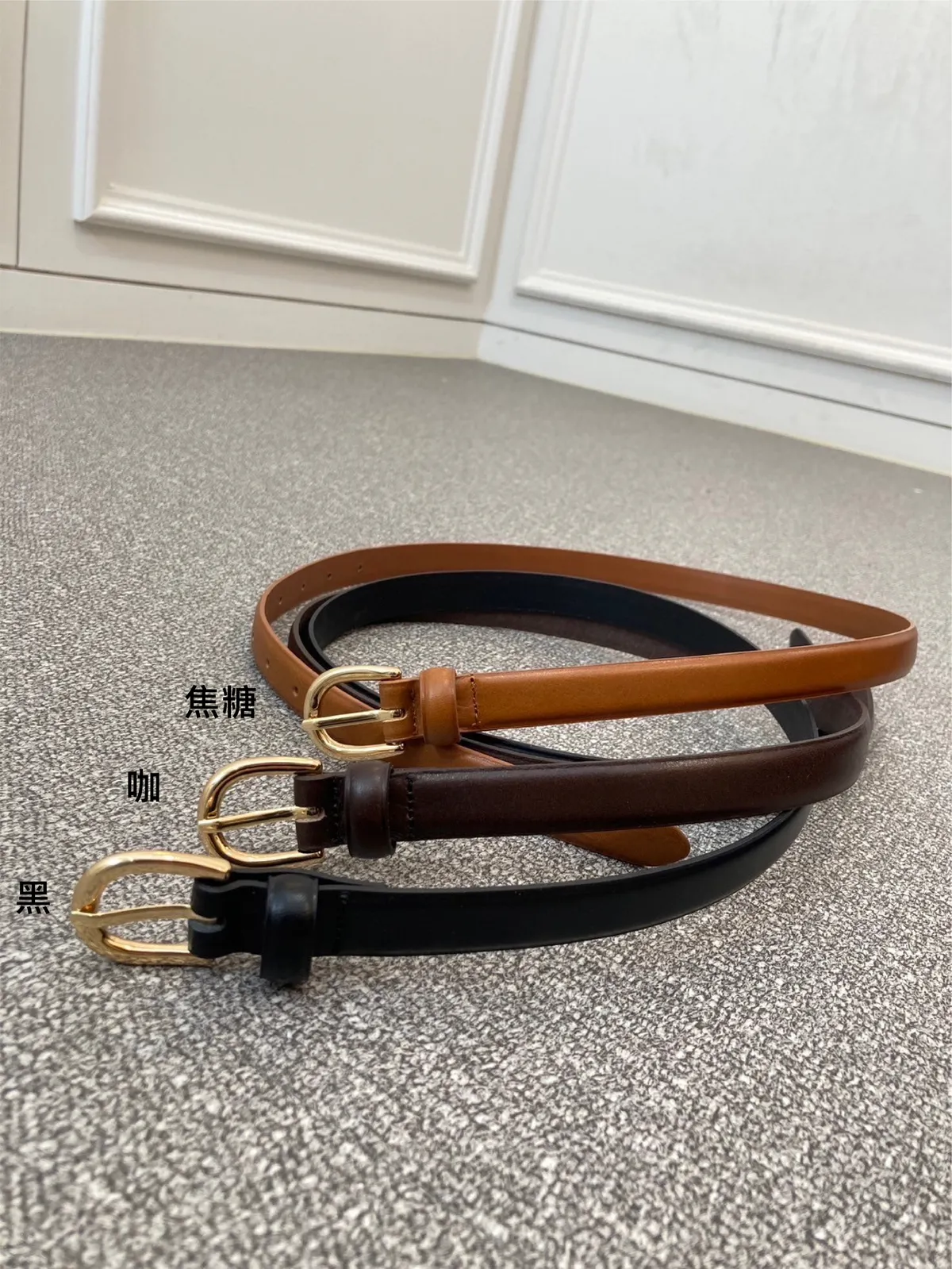 FA056 回購款金釦牛皮皮帶細款(原KM148) 黑 咖 焦糖 官網價$480 線上價$450