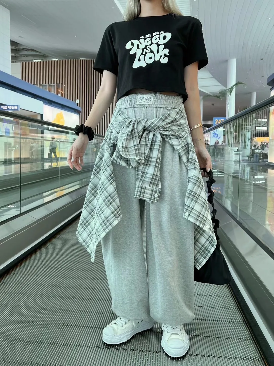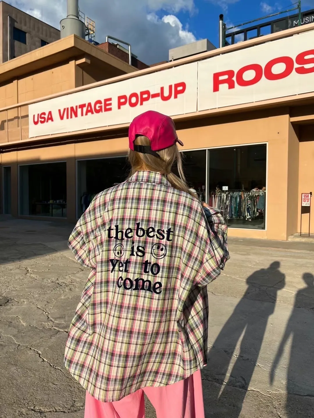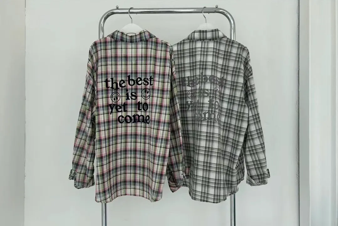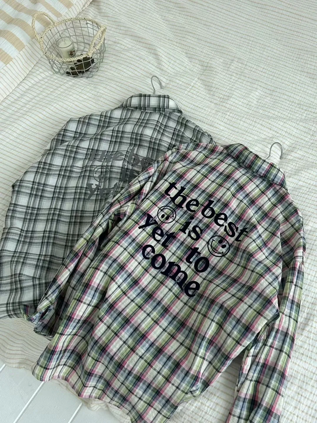 棉 釦子穿脫 可上衣可罩衫可綁腰 背後英文和笑臉