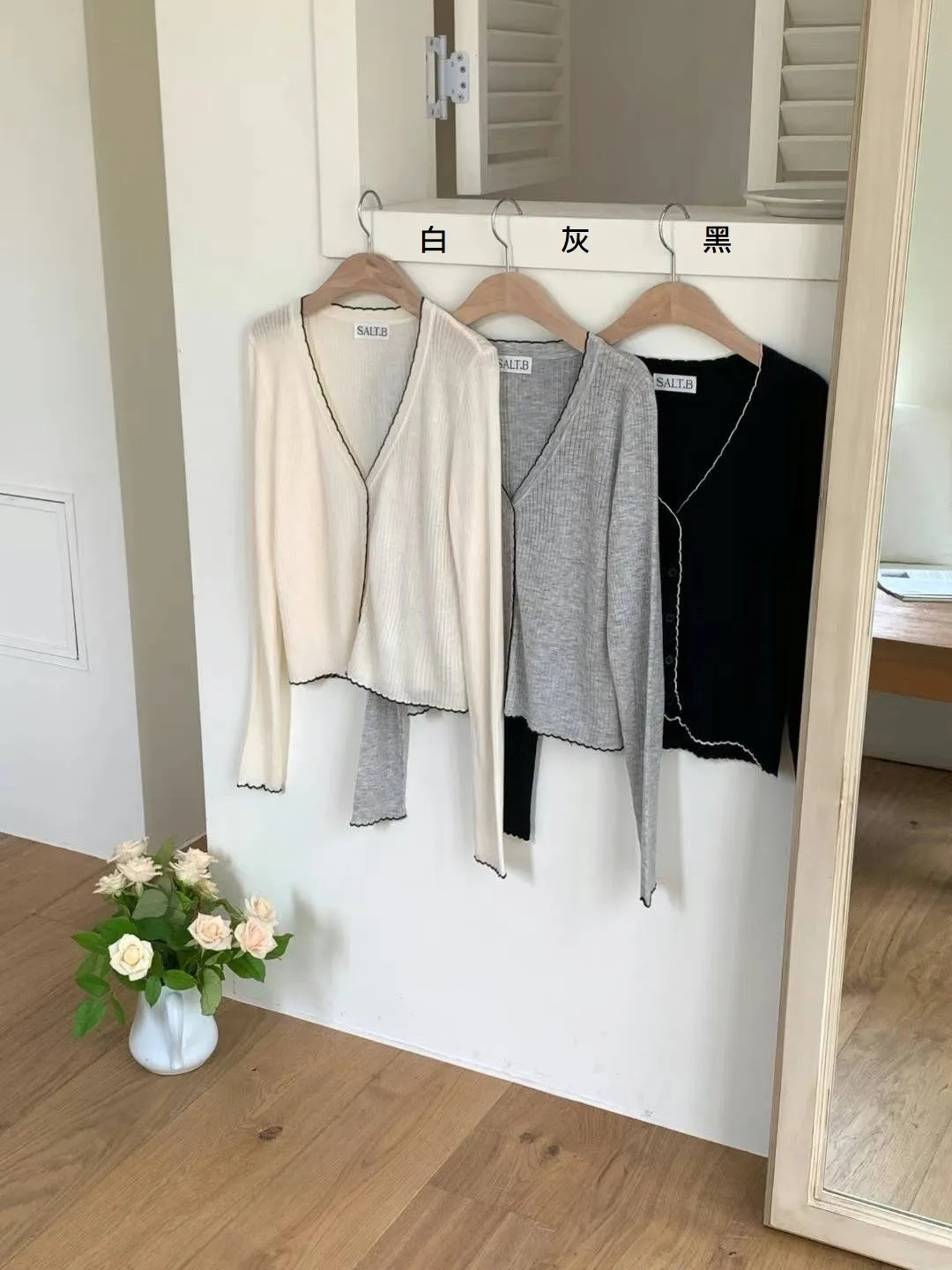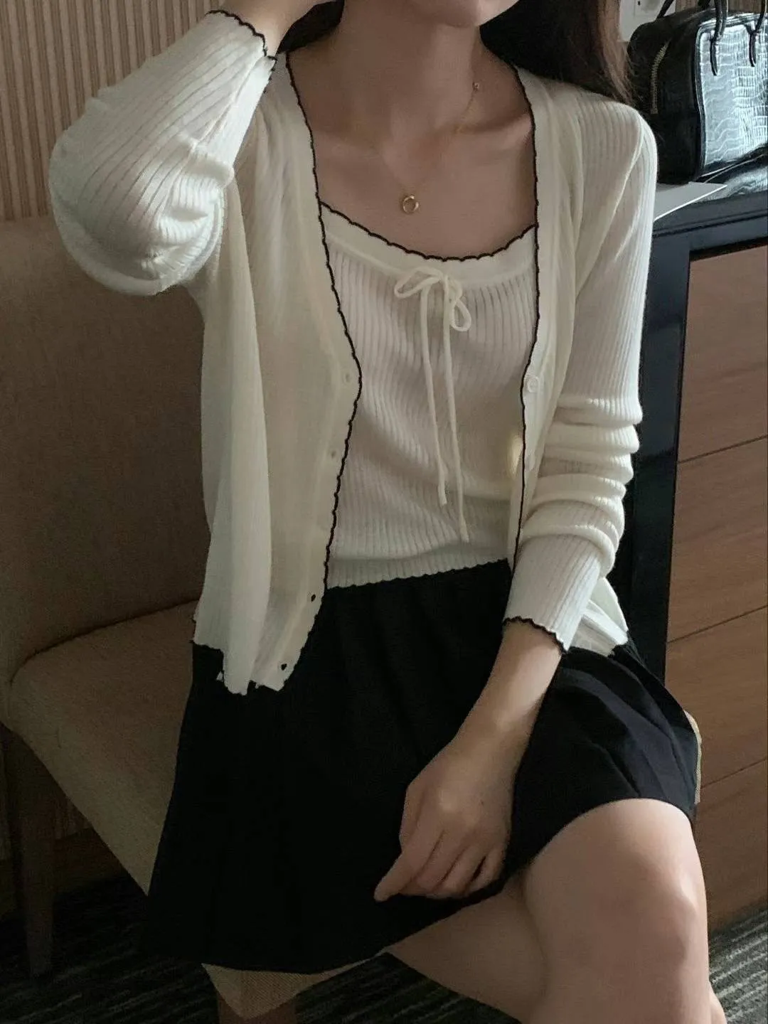 FA097推薦款質感描邊套裝(背心+罩衫) 白 灰 黑 官網價$710 線上價$680