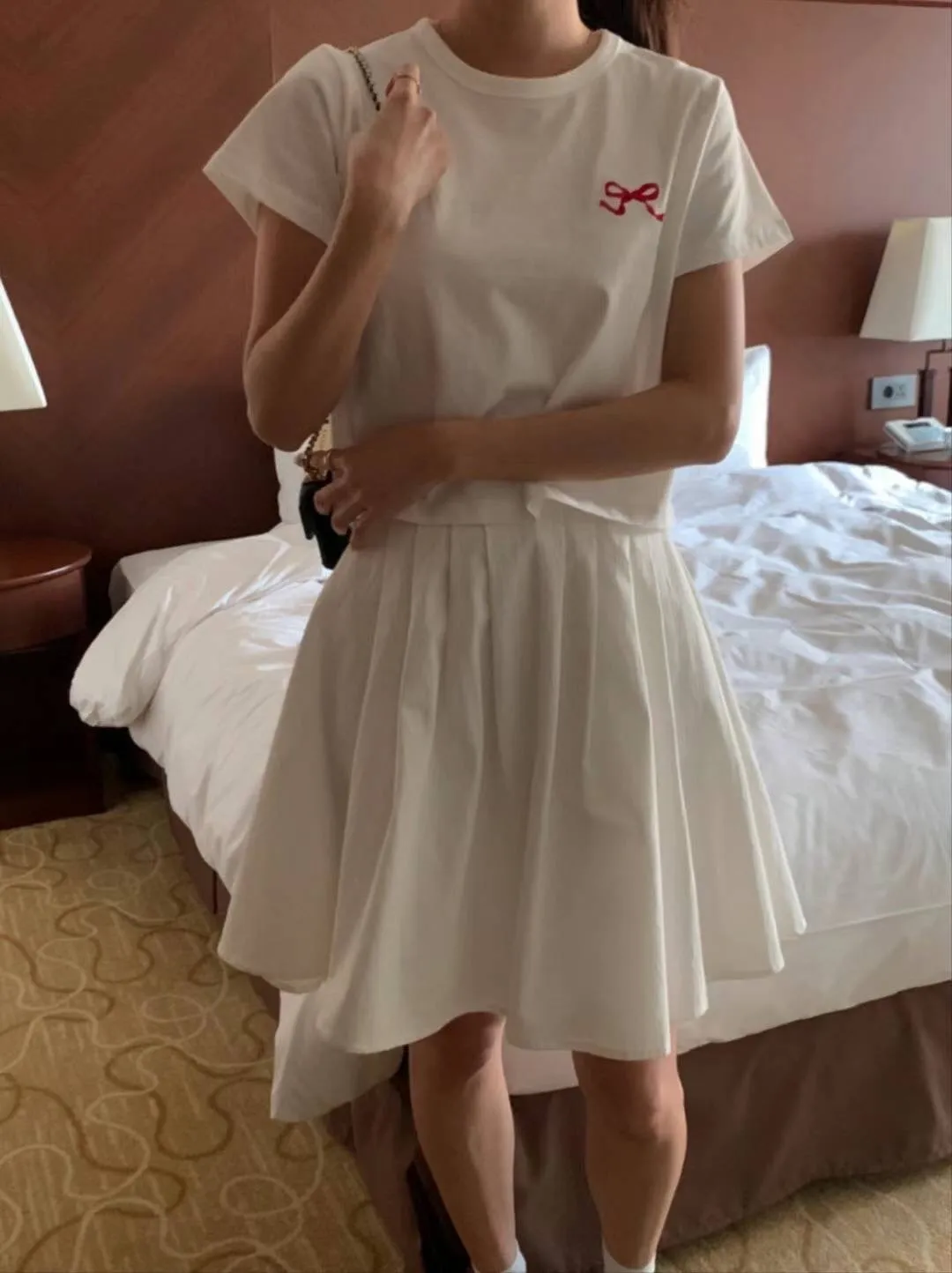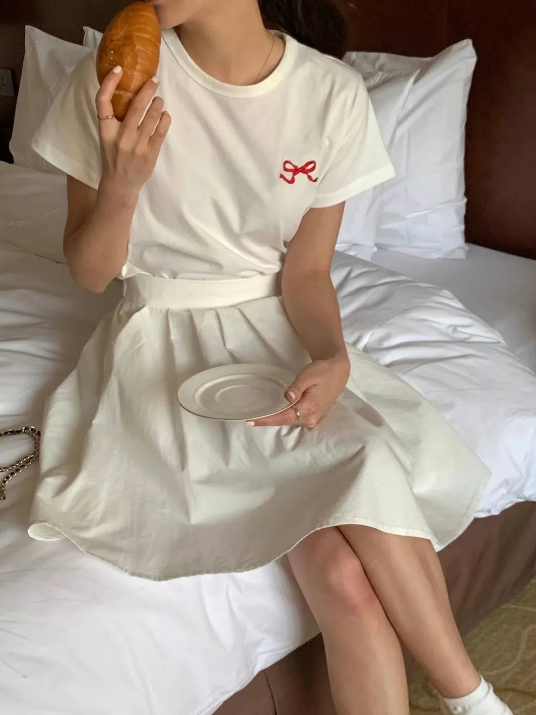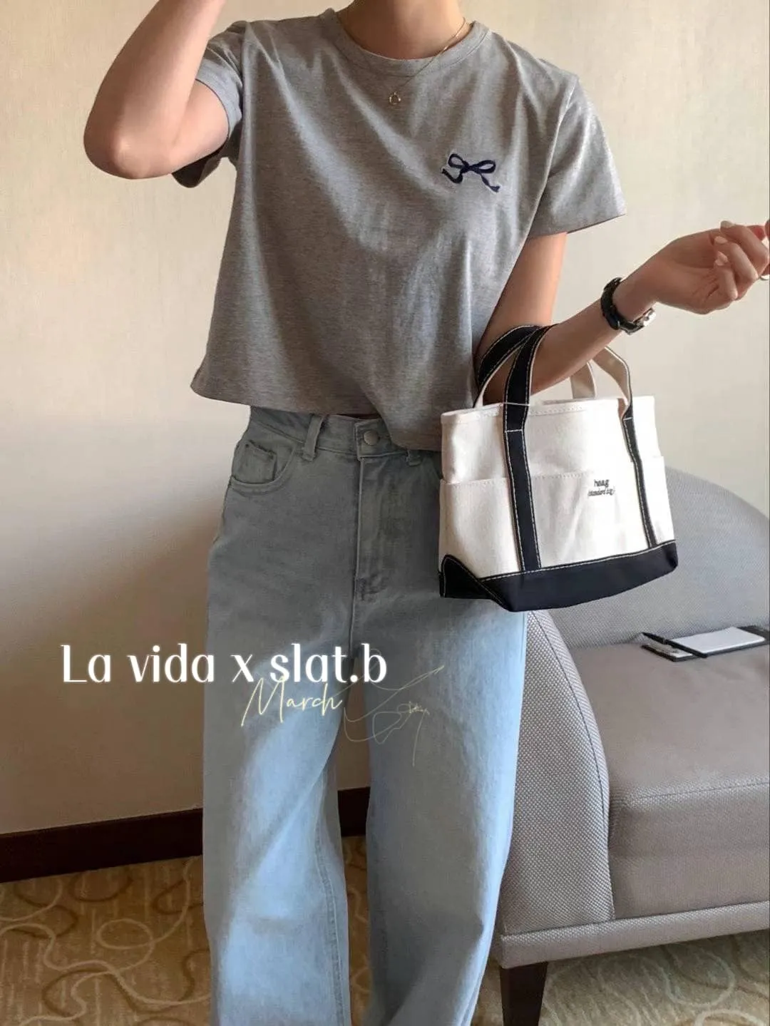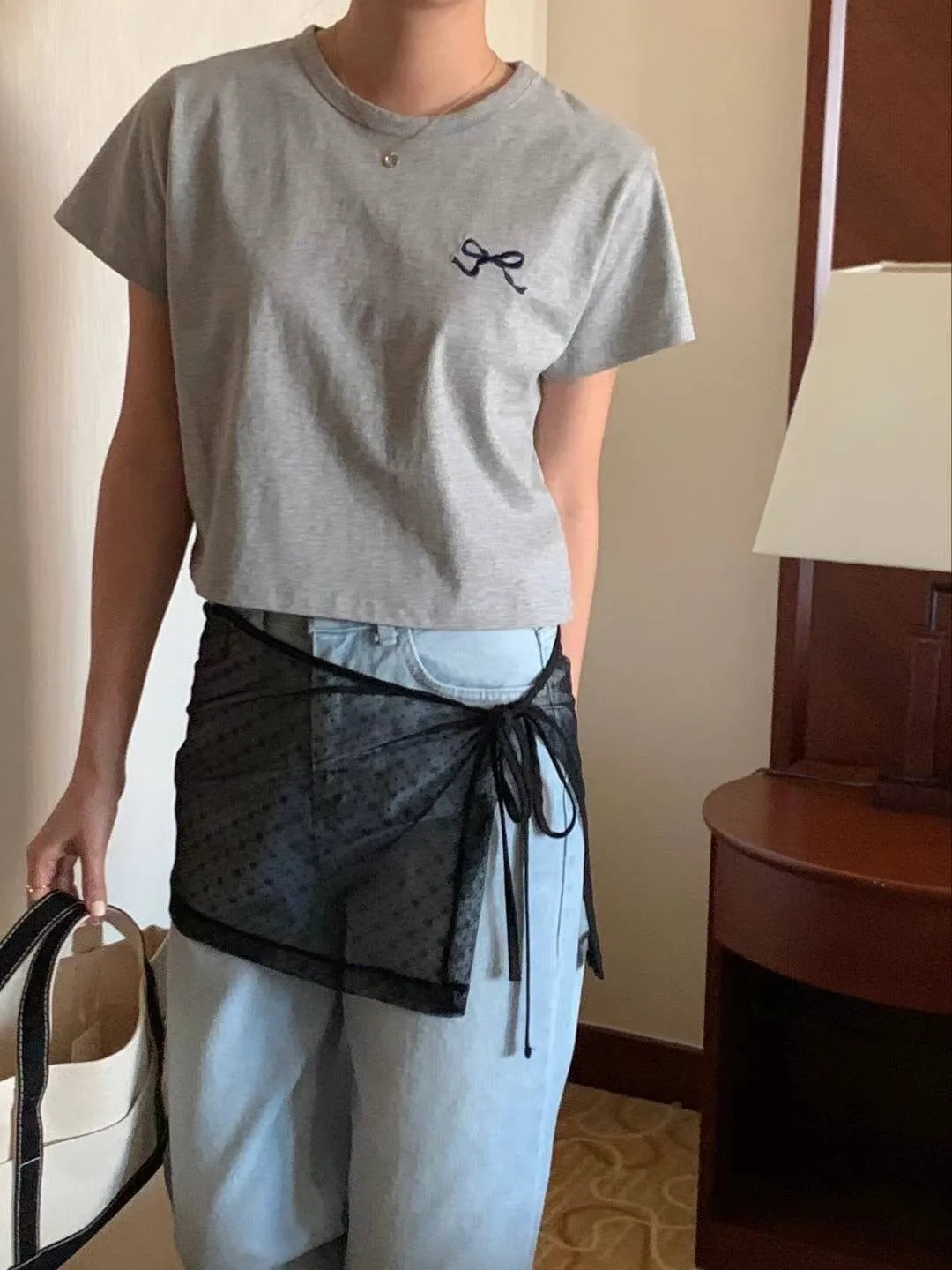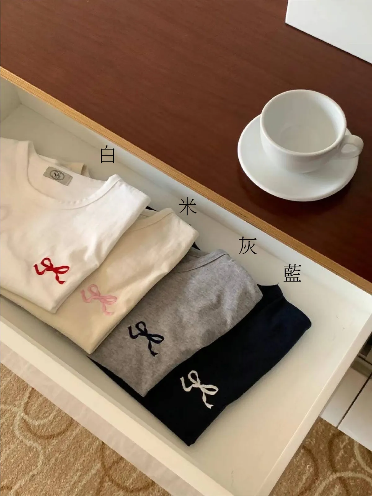 FA099回購款許願款刺繡蝴蝶結短版Tshirt(原KM556) 白 灰 米 藍 官網價$480 線上價$450