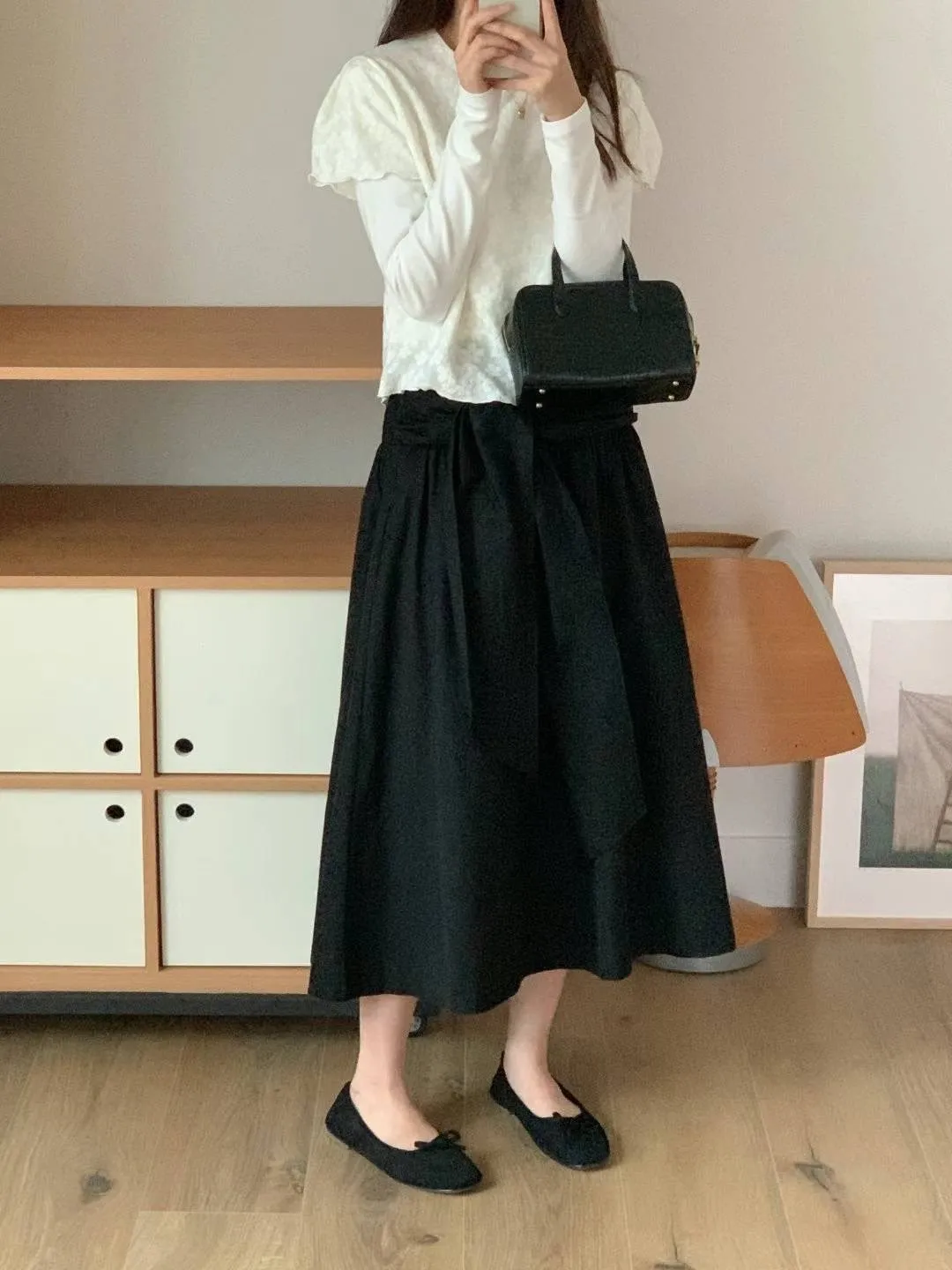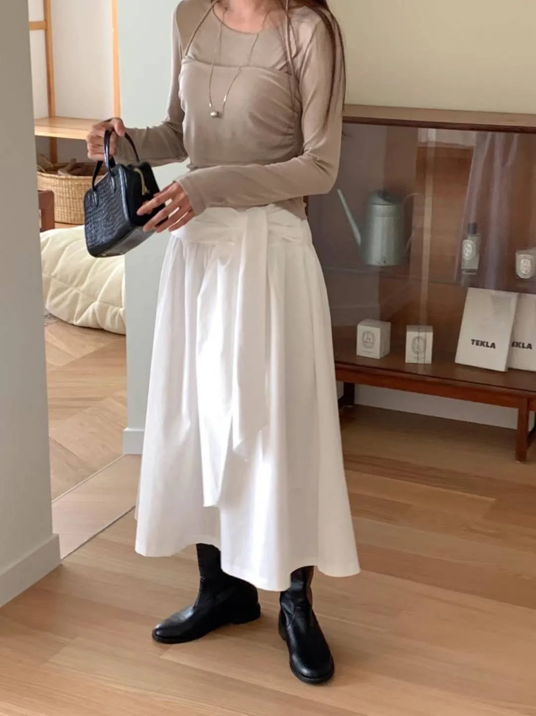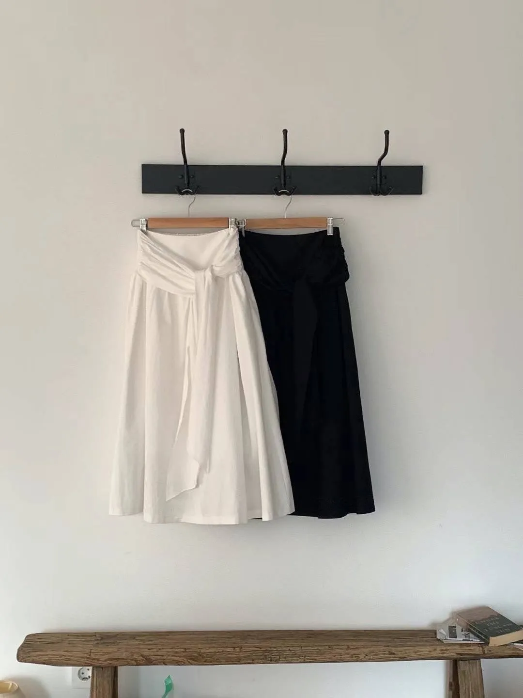 FA101設計藝術寬綁帶Aline裙 白 黑 官網價$890線上價$860