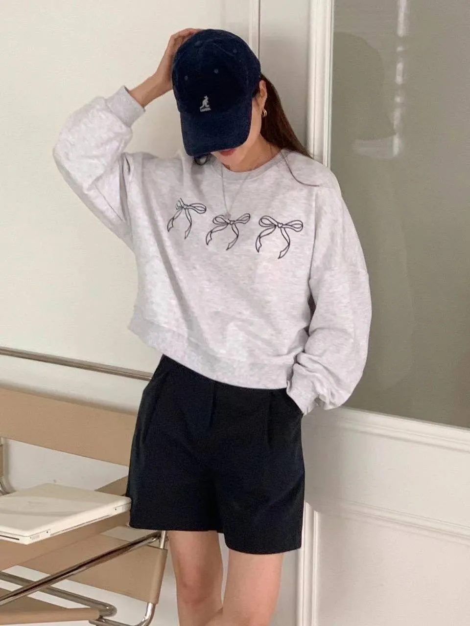 FA108刺繡蝴蝶結大學T 白 灰 粉 官網價$680 線上價$650