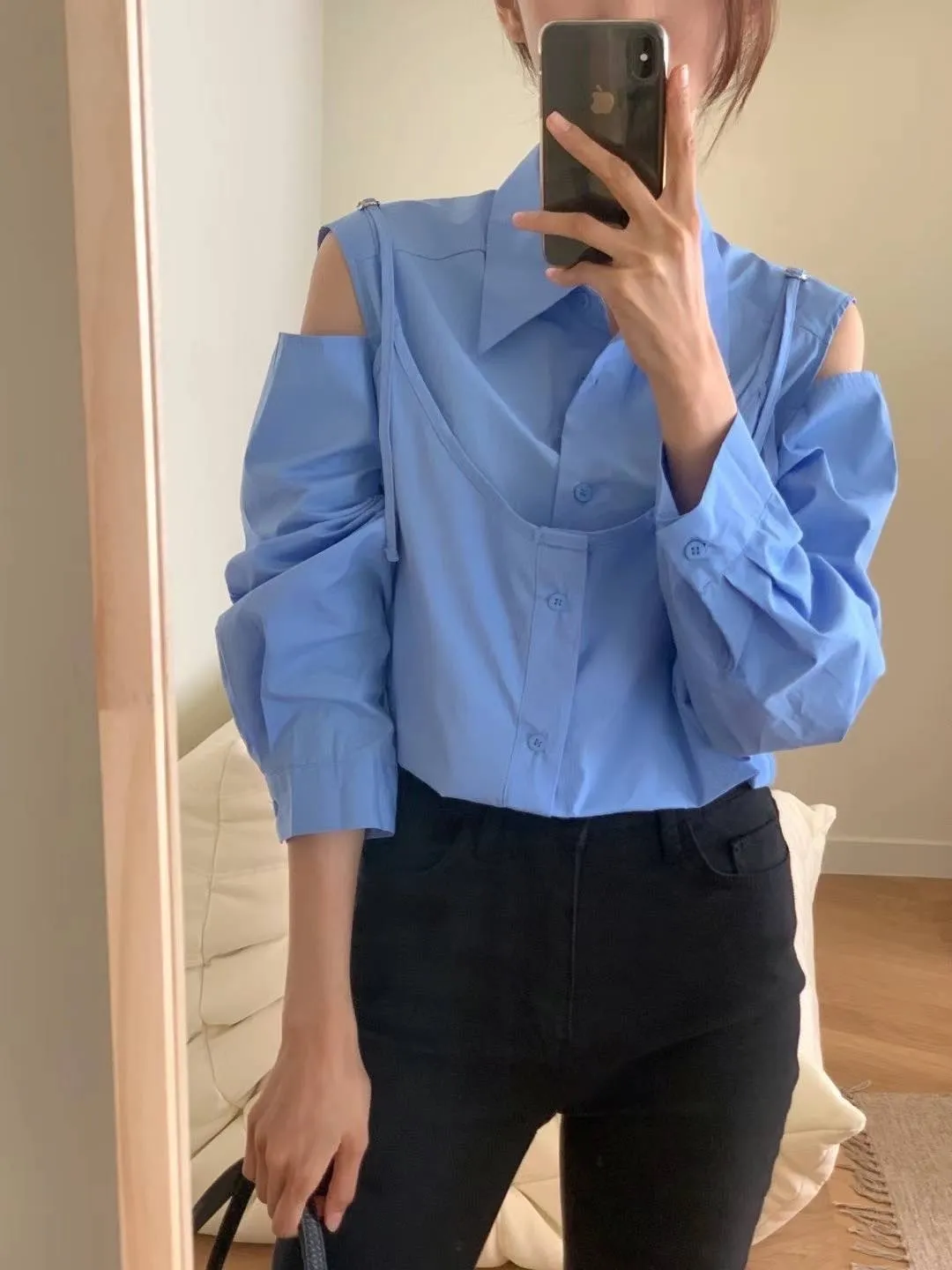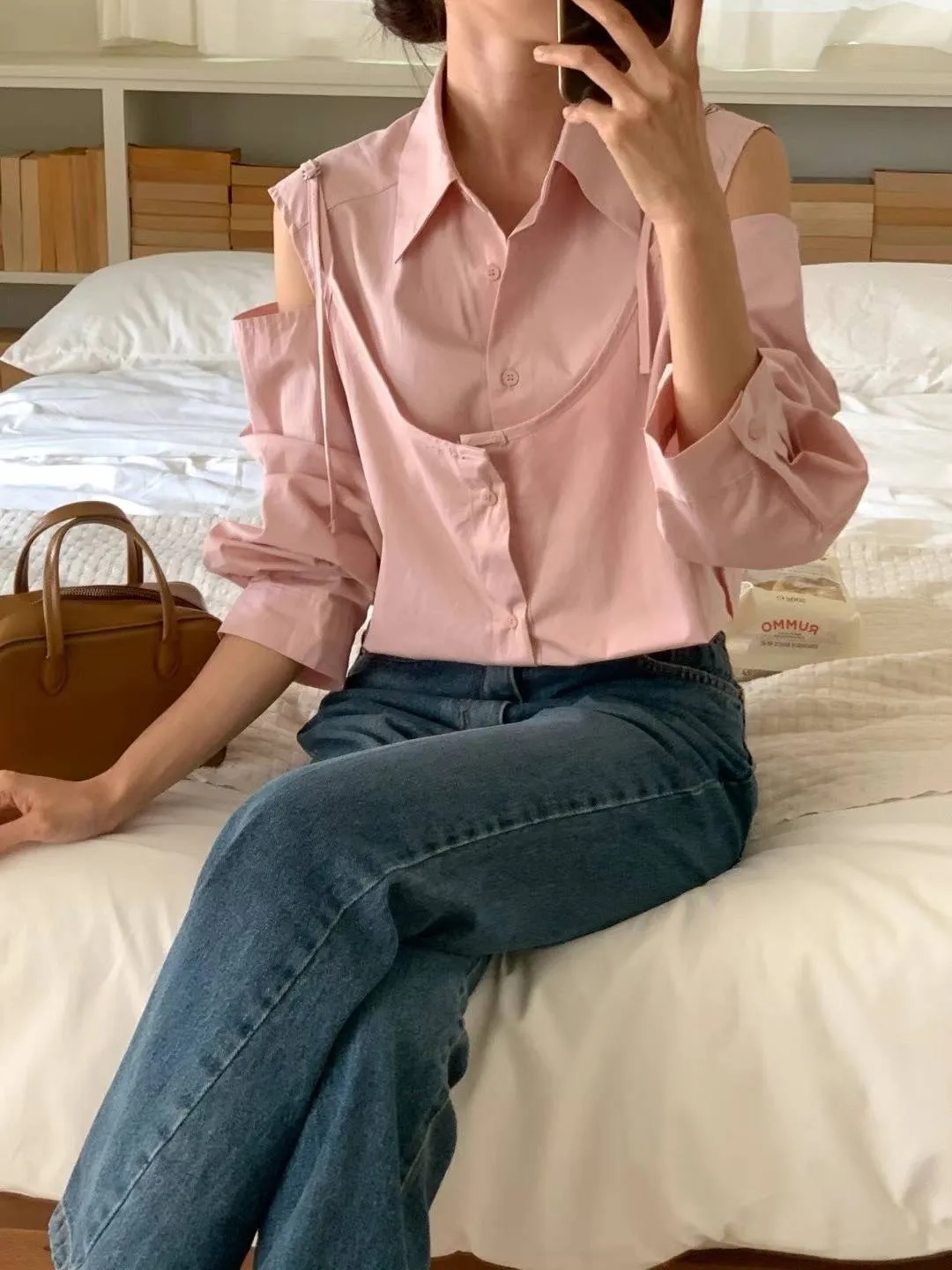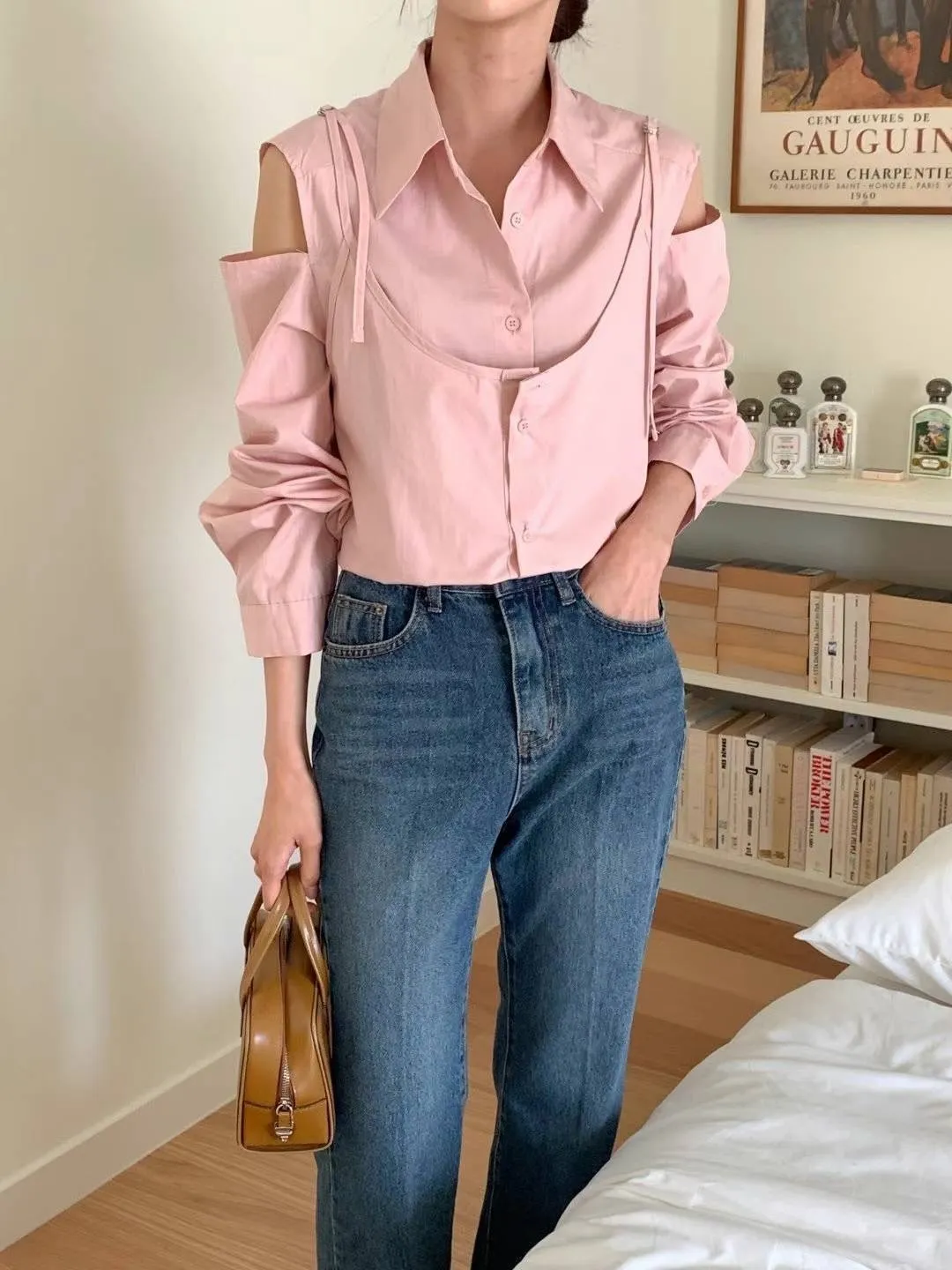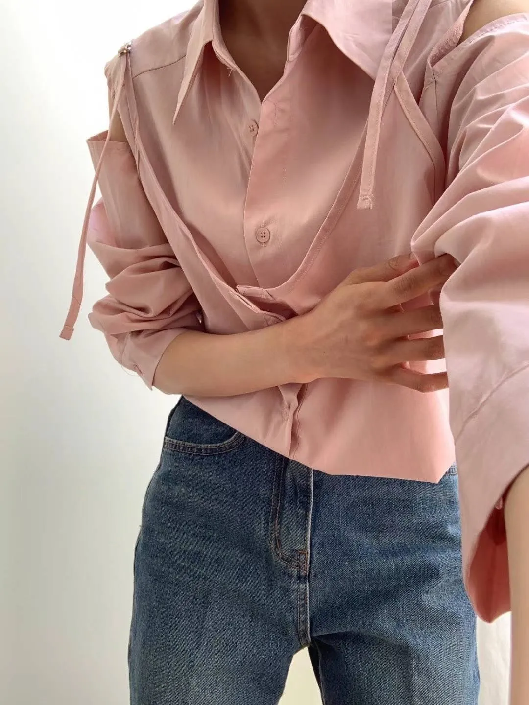 FA113前衛設計兩穿式襯衫 白 粉 藍 官網價$760 線上價$730