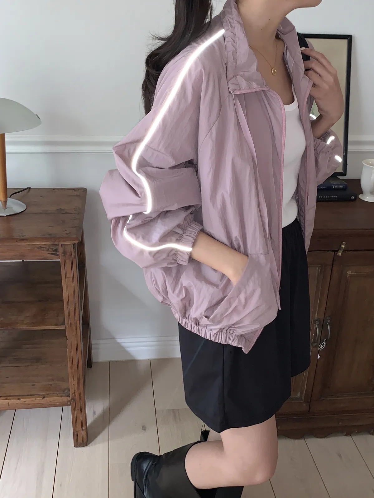 尼龍 滑順觸感 輕盈薄款 拉鍊穿脫 手袖鬆緊 有內裡 防風防潑水