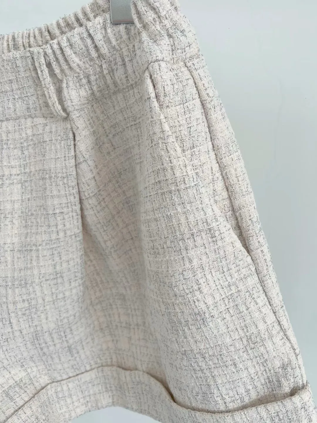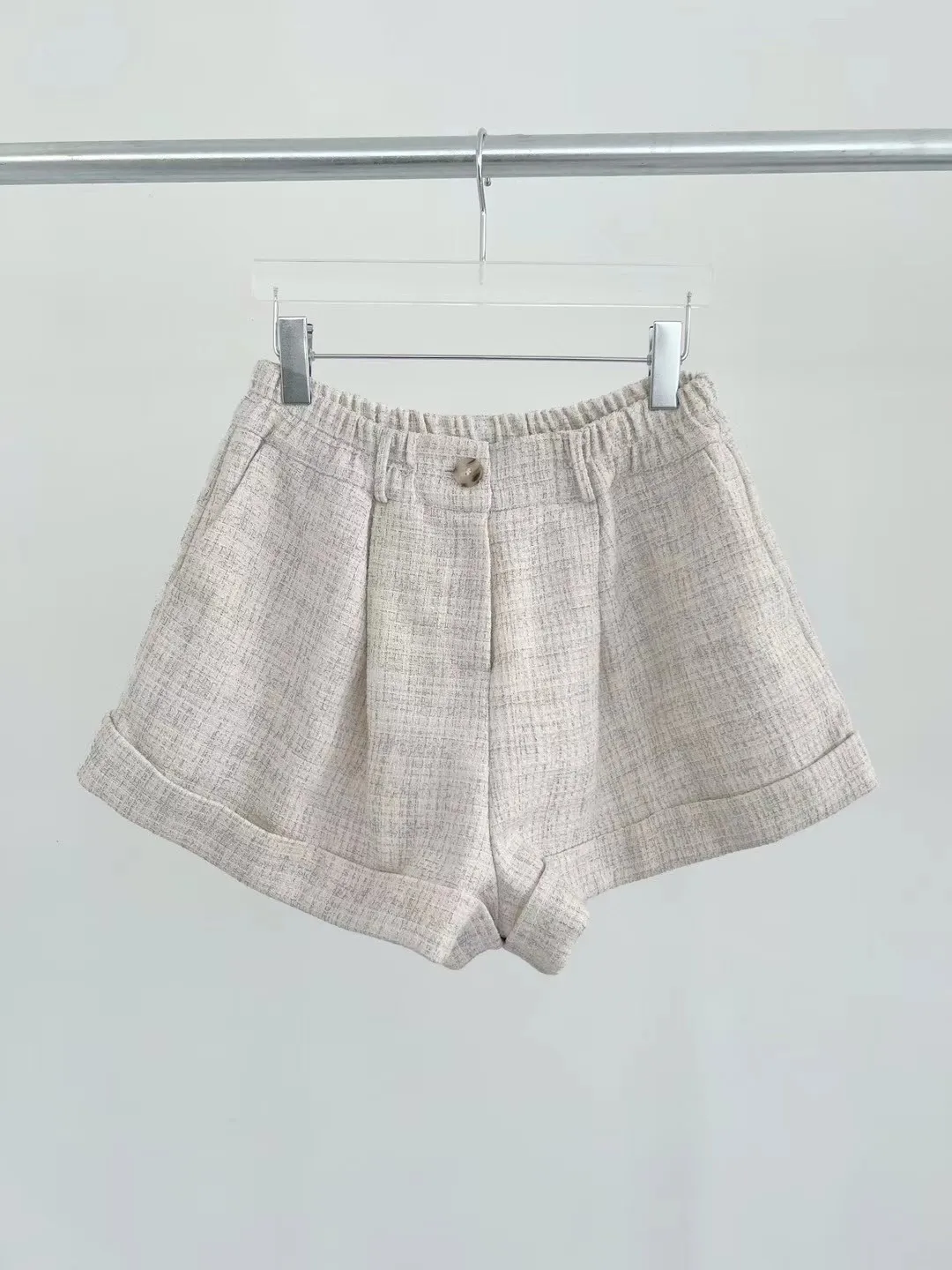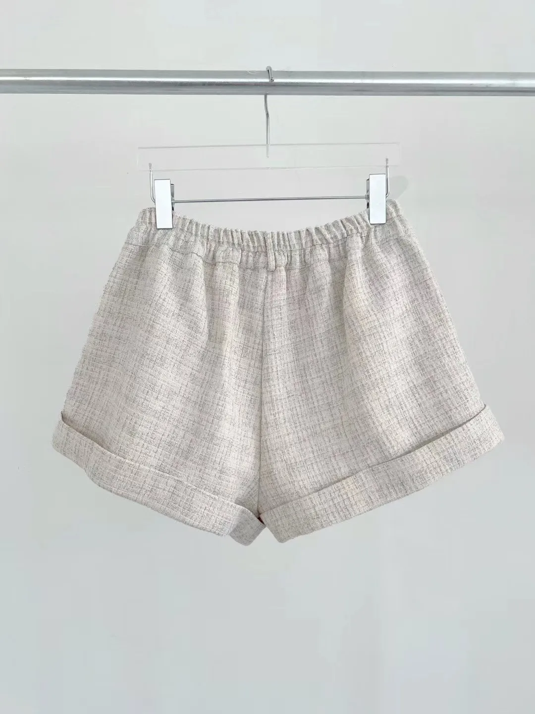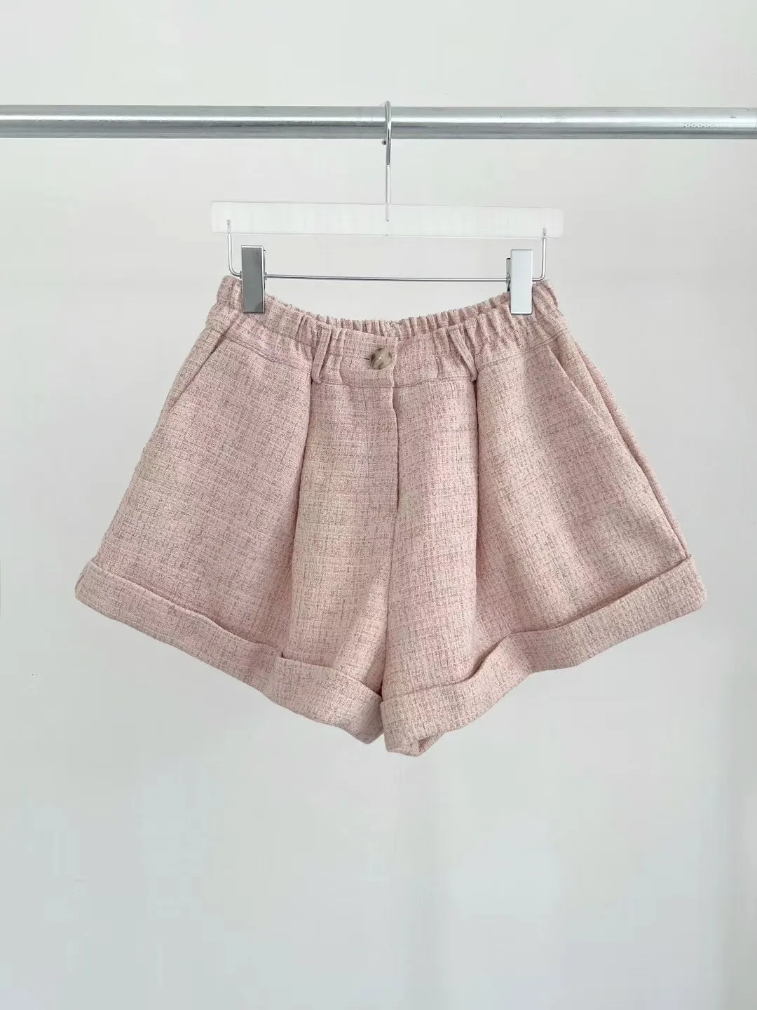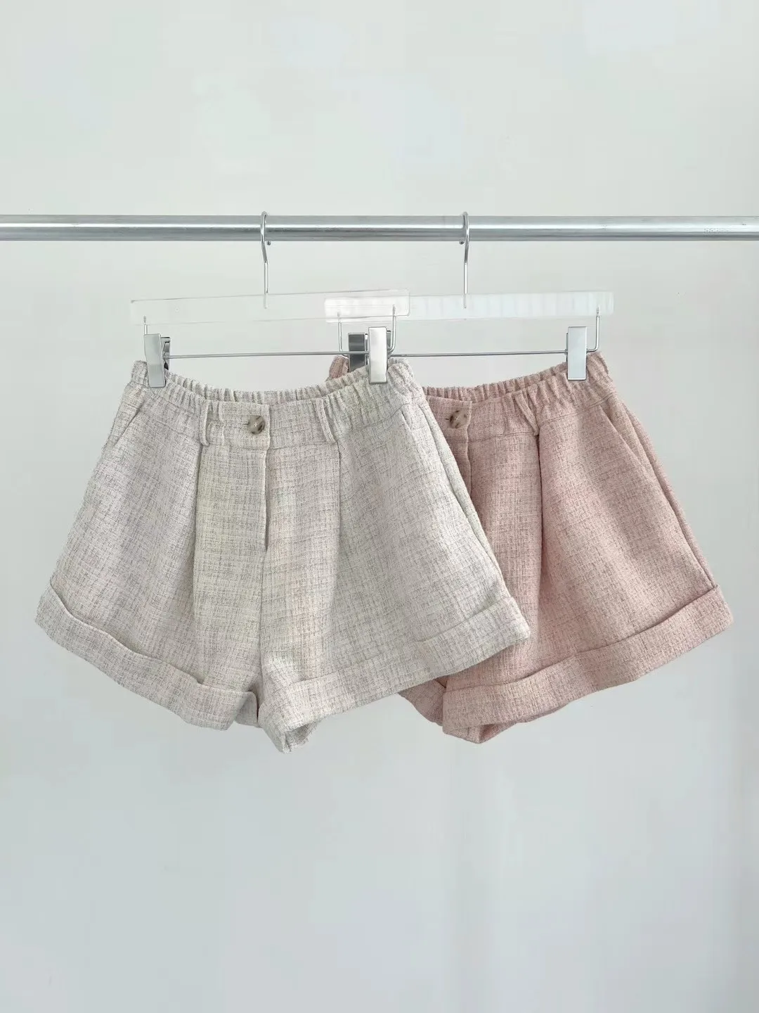 FA126高級織線小香風反摺短褲 米 粉 官網價$1190 線上價$1160