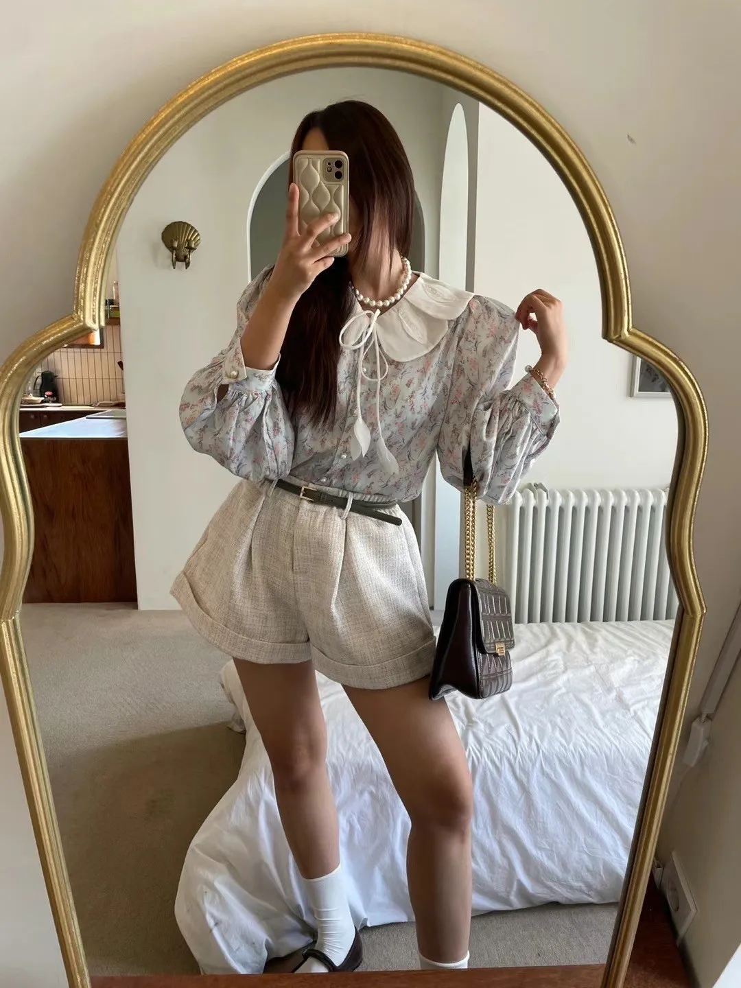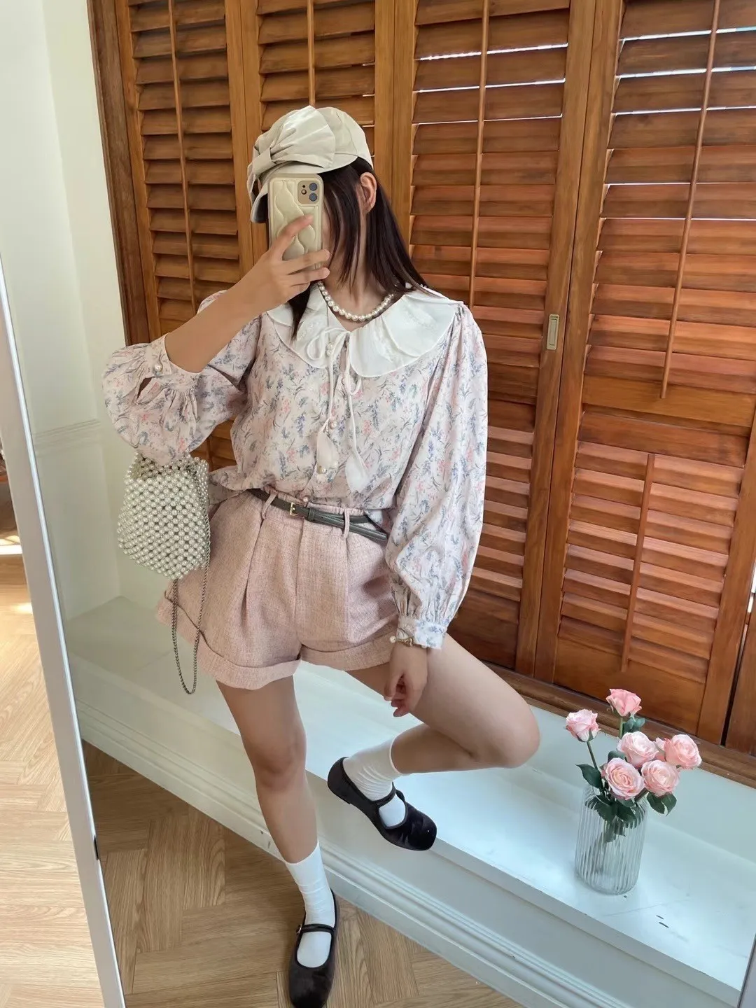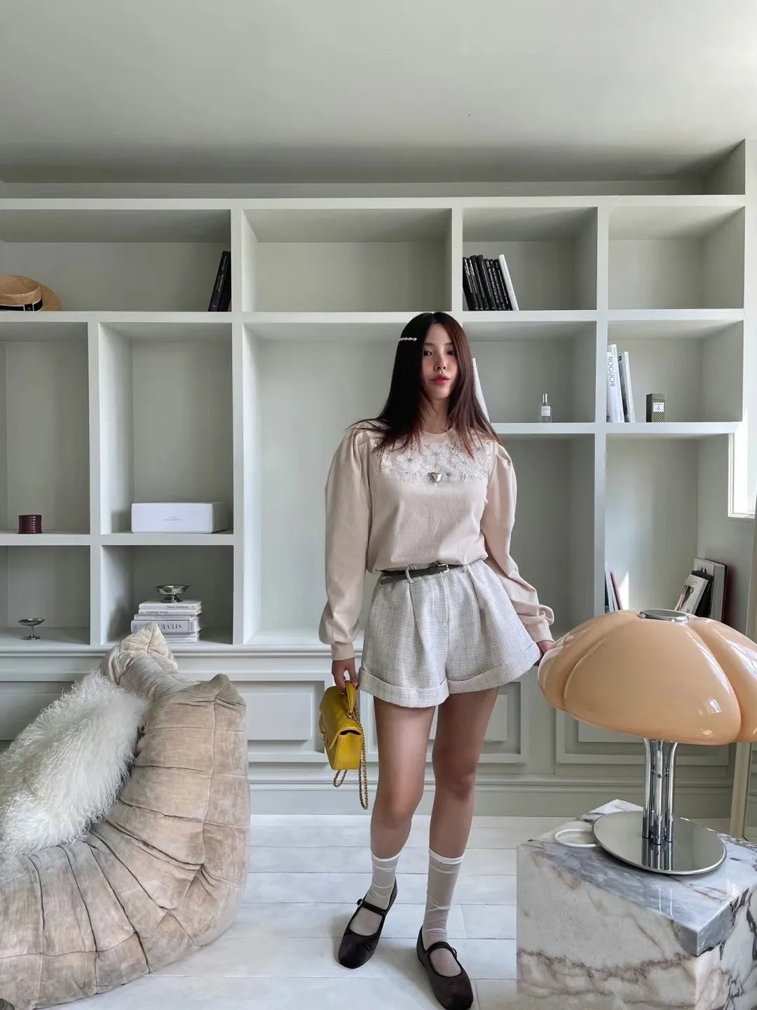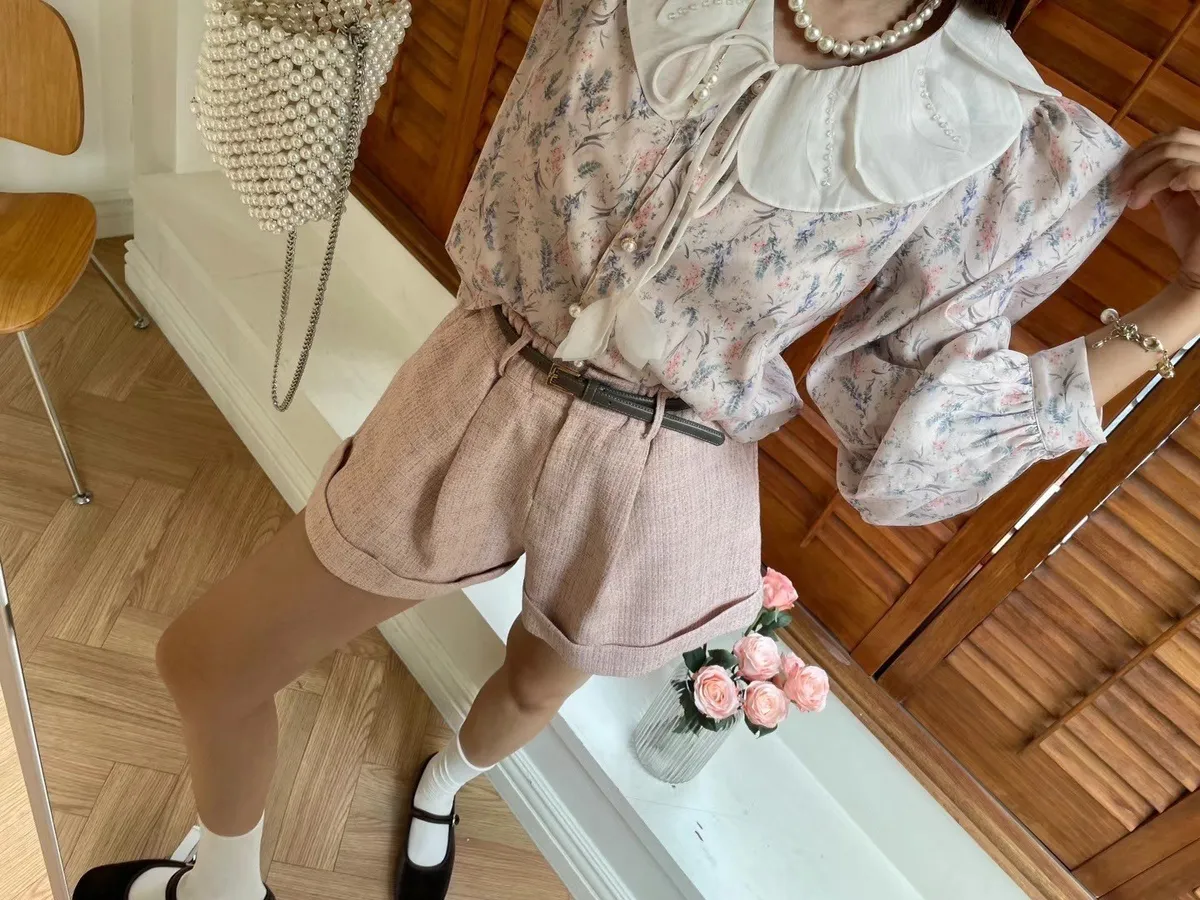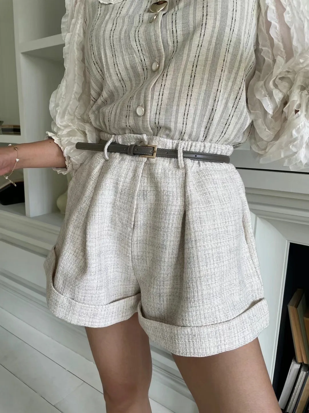 FA126高級織線小香風反摺短褲 米 粉 官網價$1190 線上價$1160