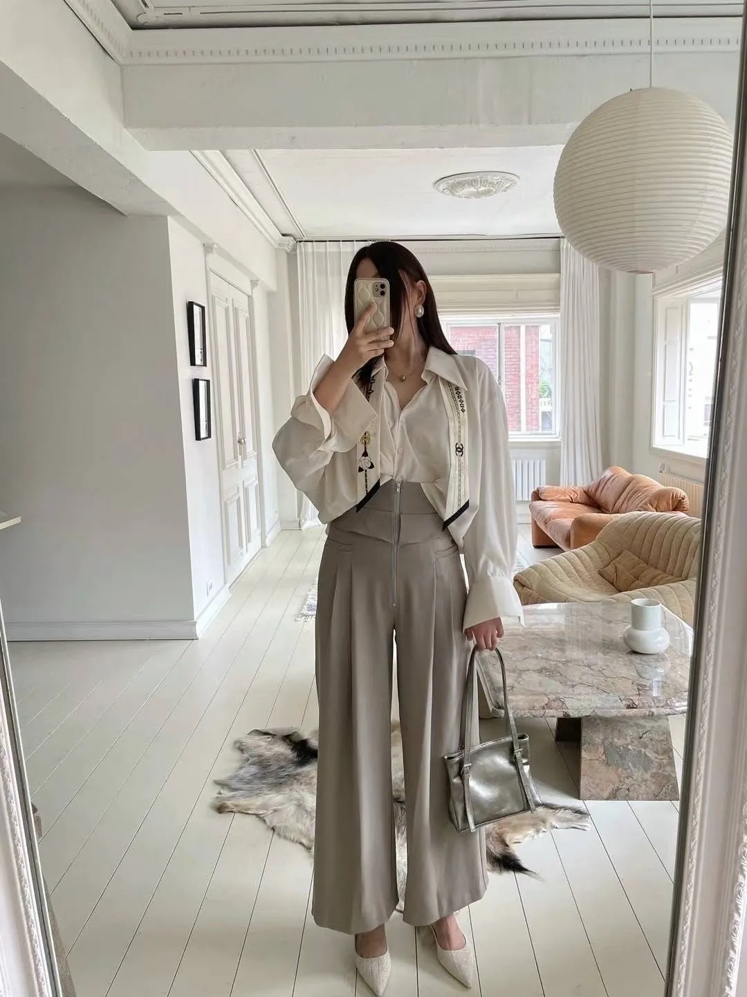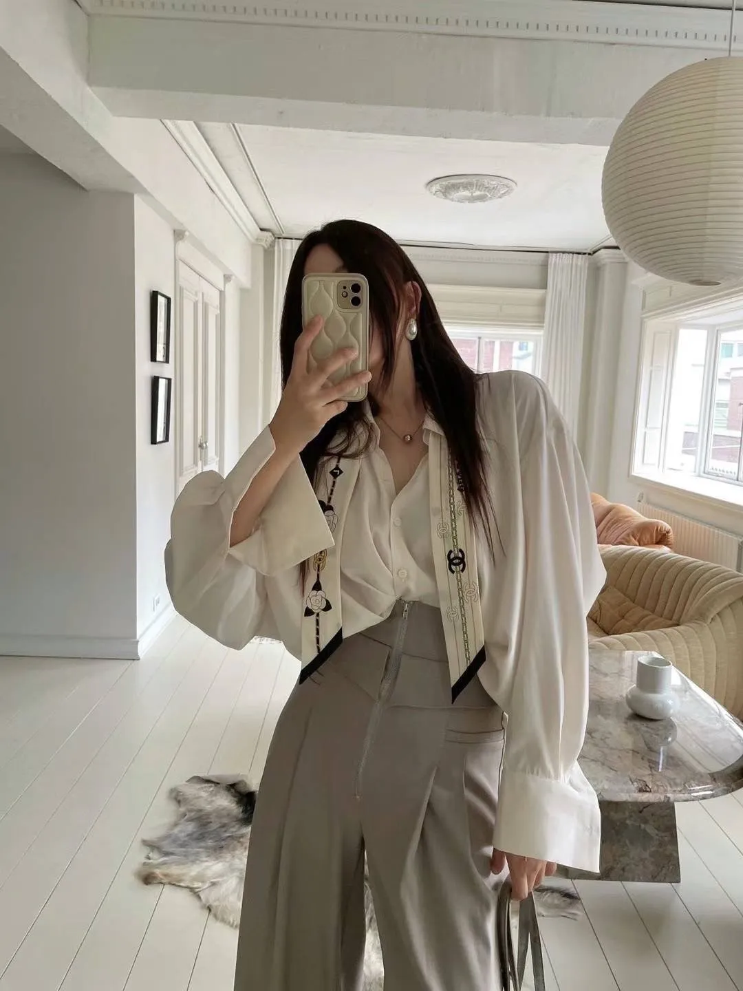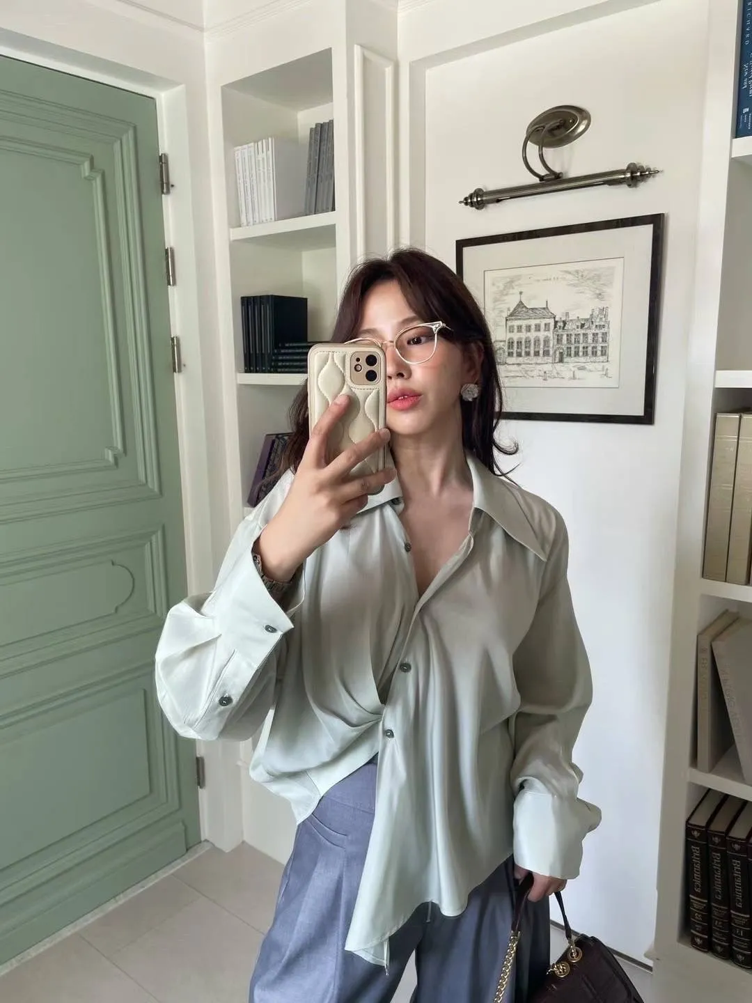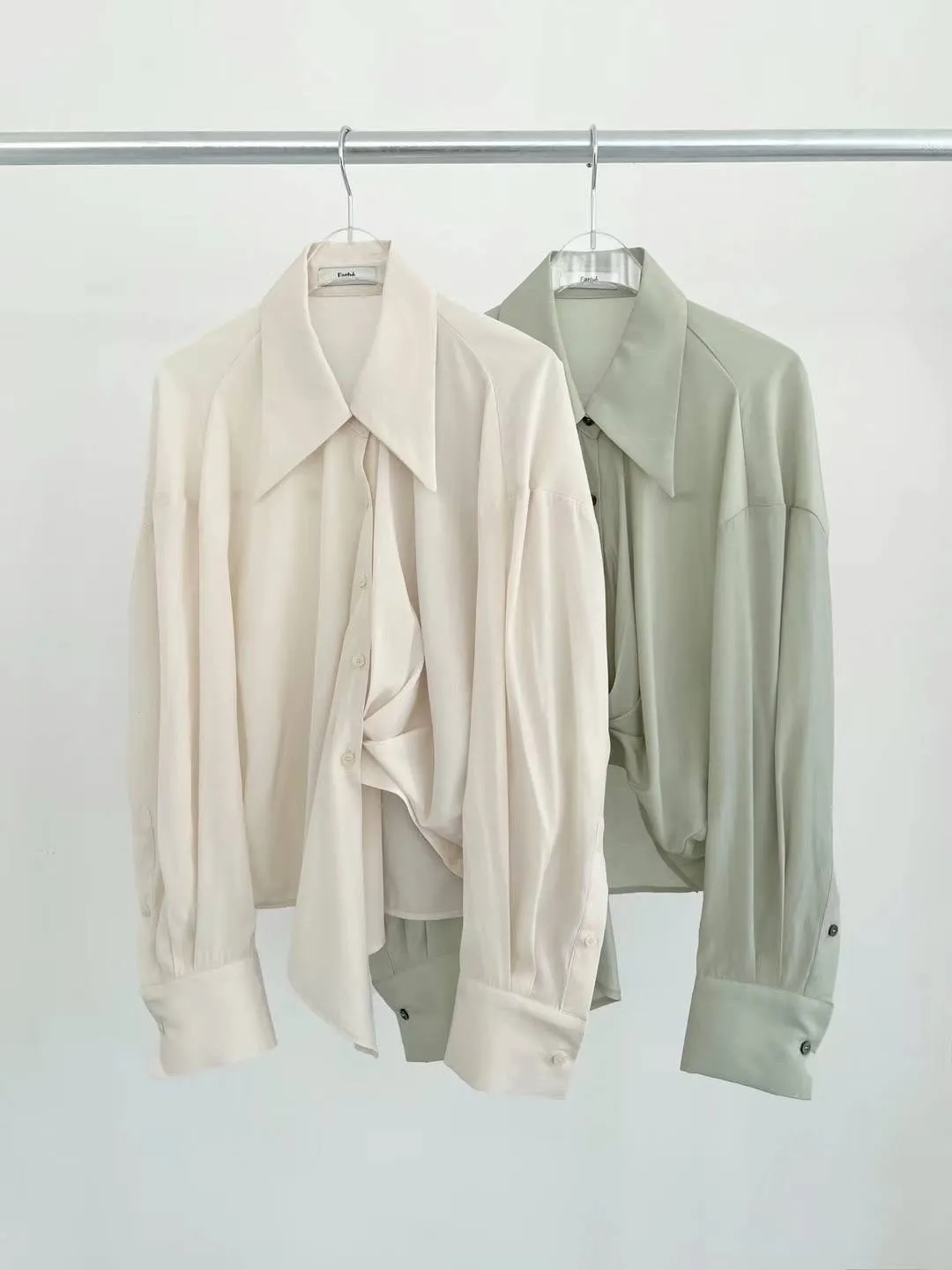FA132藝術不對稱設計襯衫 米 綠 官網價$1199 線上價$1169