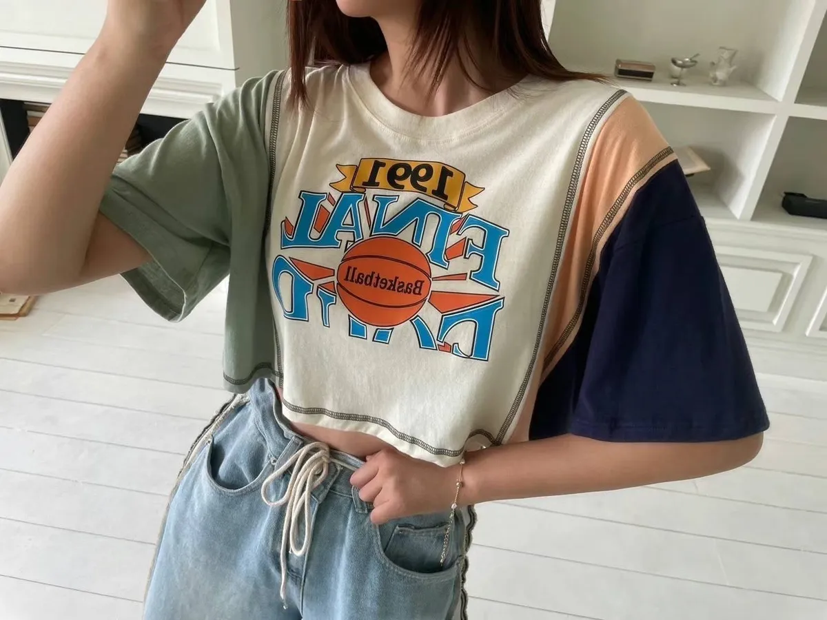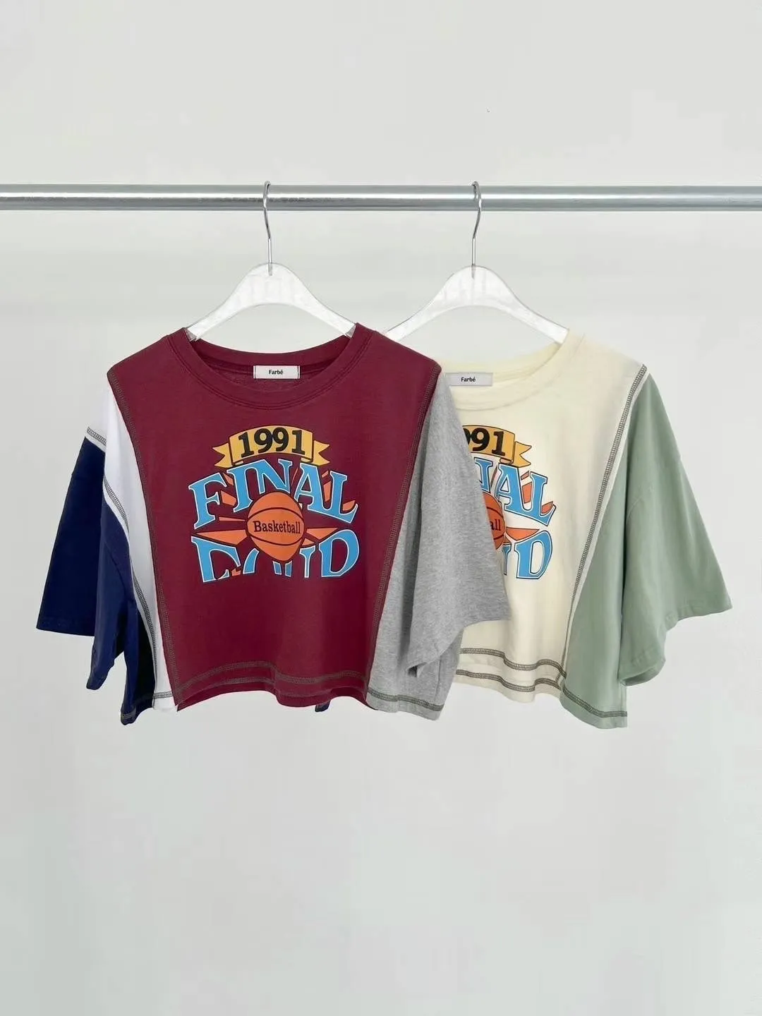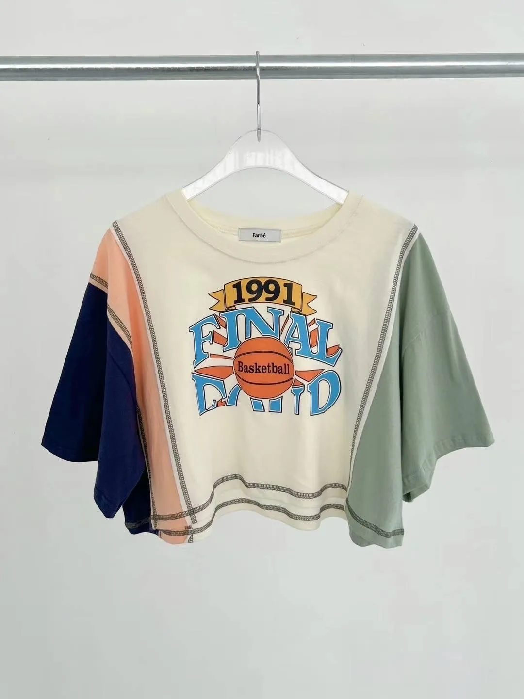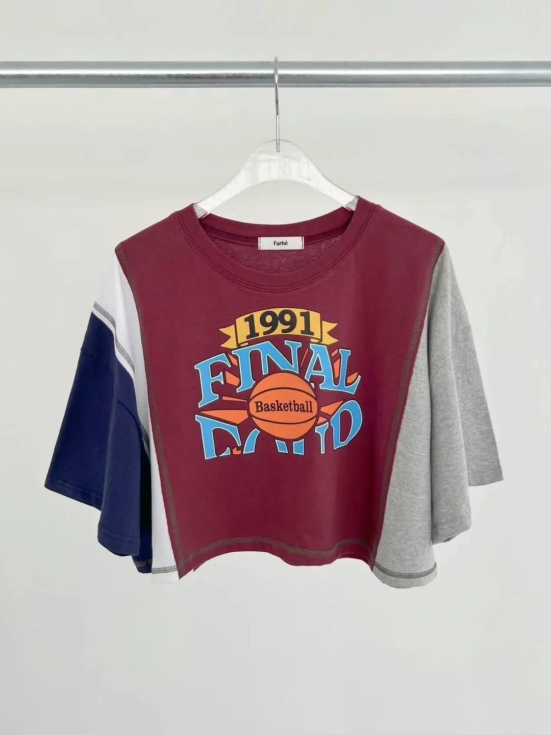 FA135可愛拚色籃球短版Tshirt 米 紅 官網價$710 線上價$680