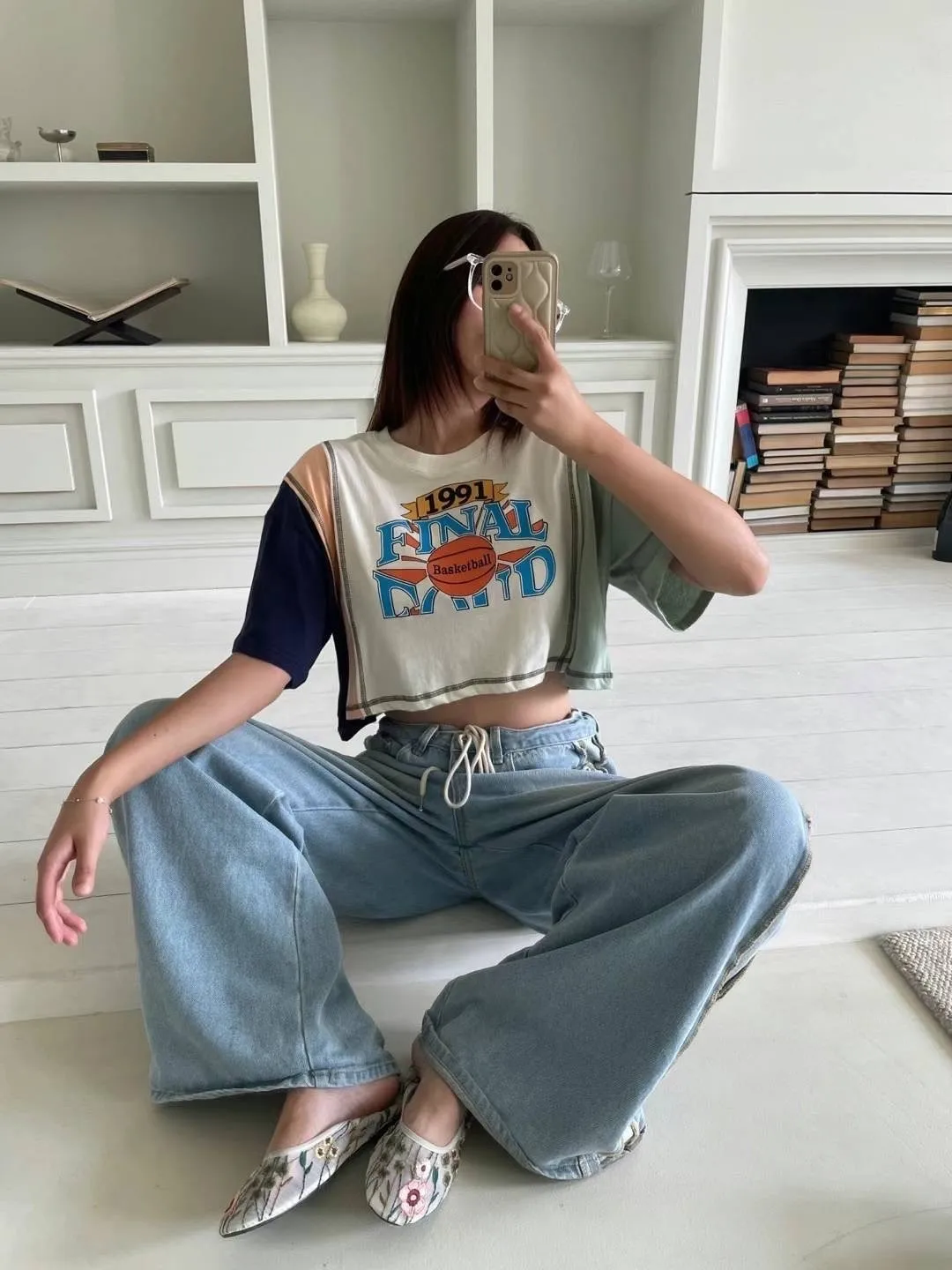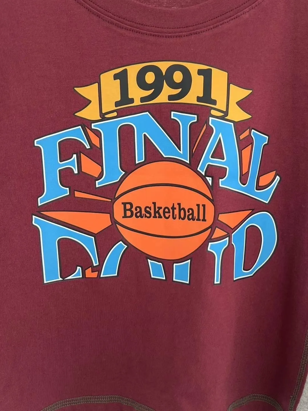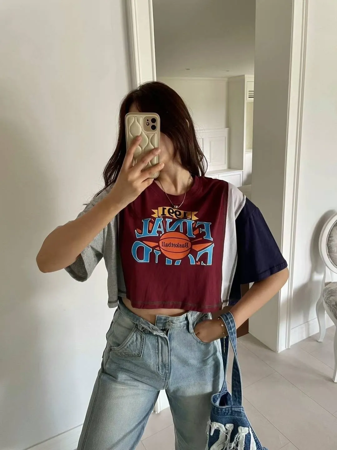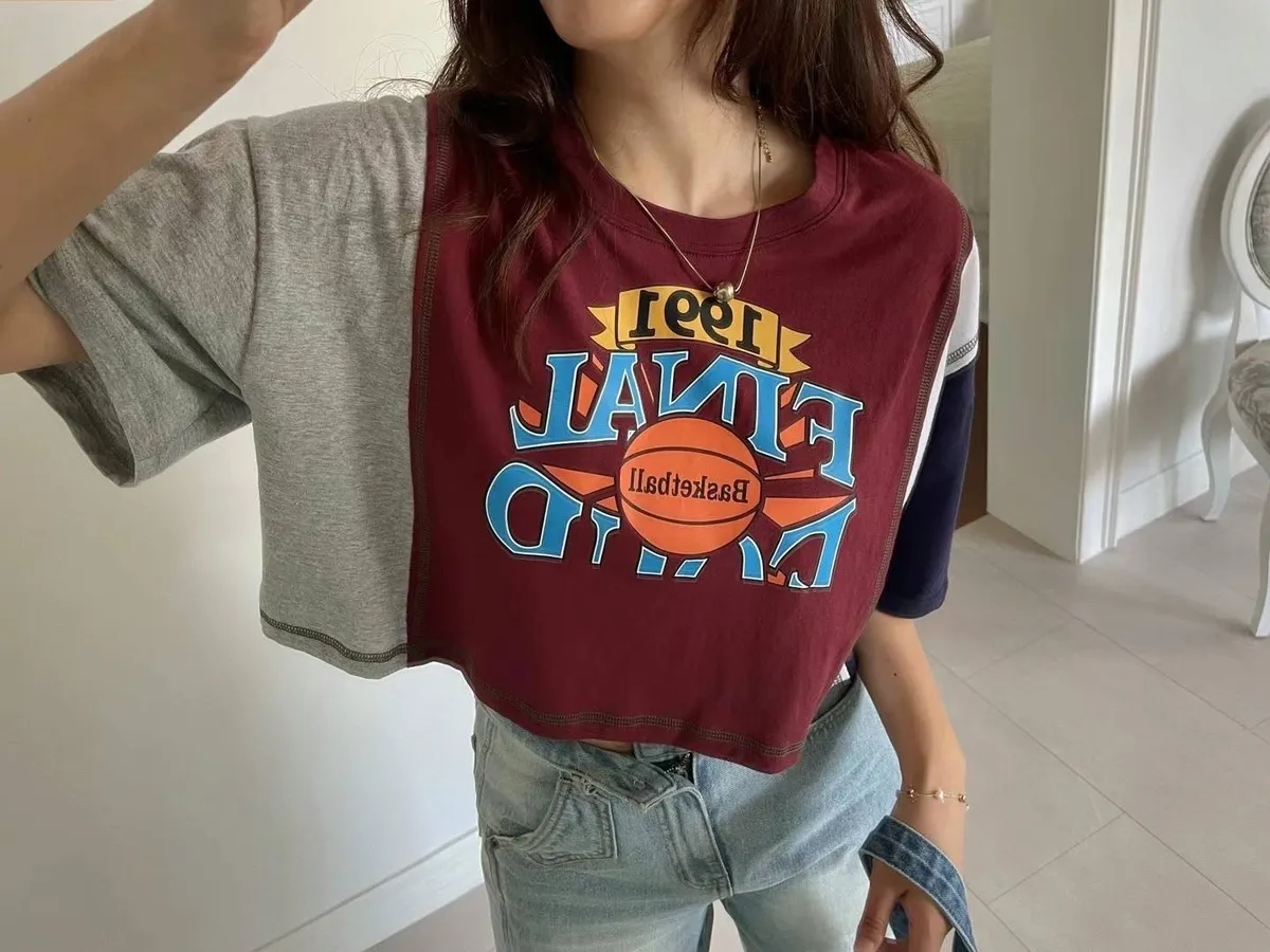 FA135可愛拚色籃球短版Tshirt 米 紅 官網價$710 線上價$680