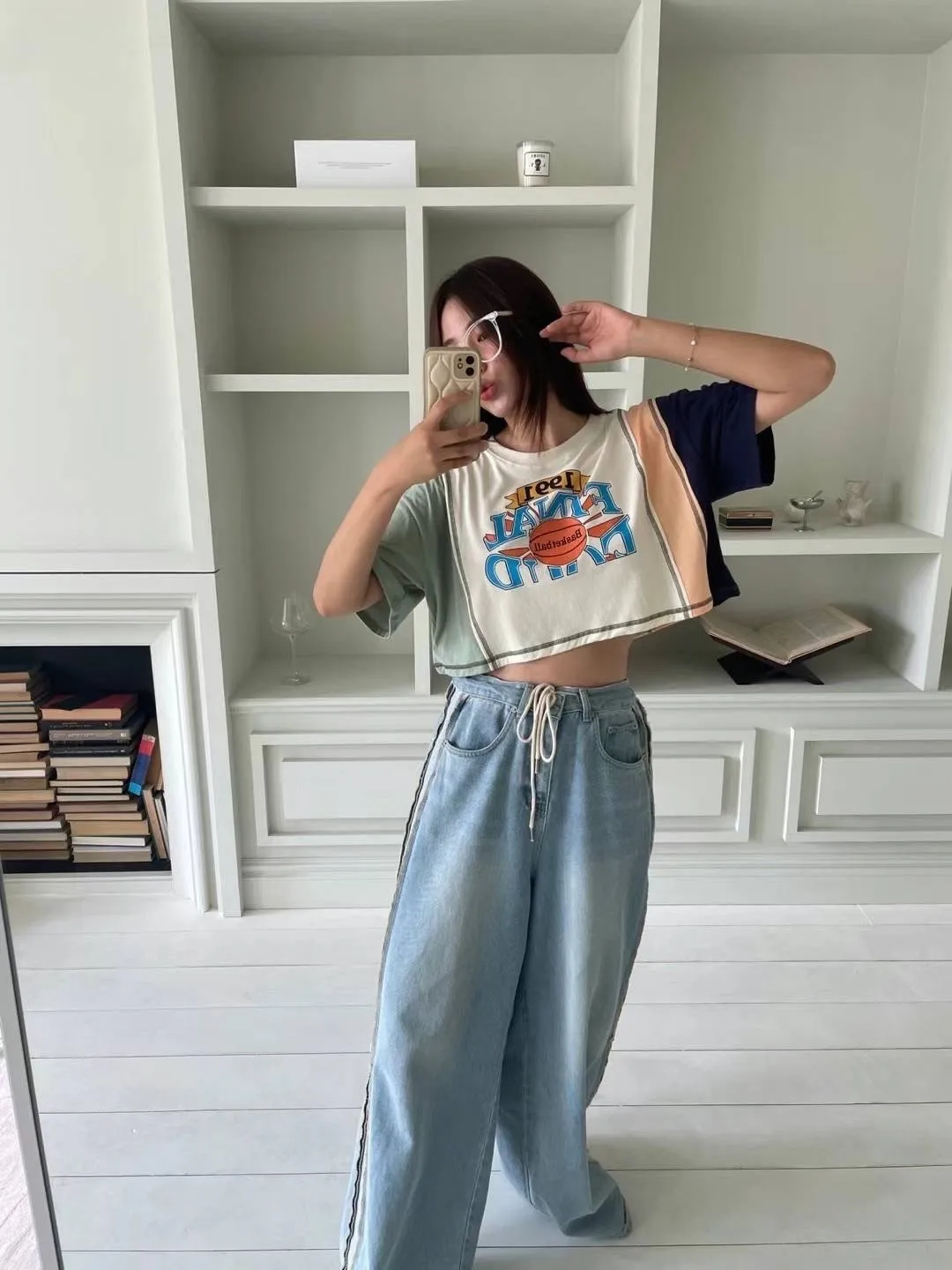 棉 舒適透氣 短版好比例 不撞款拚色 跳色車線